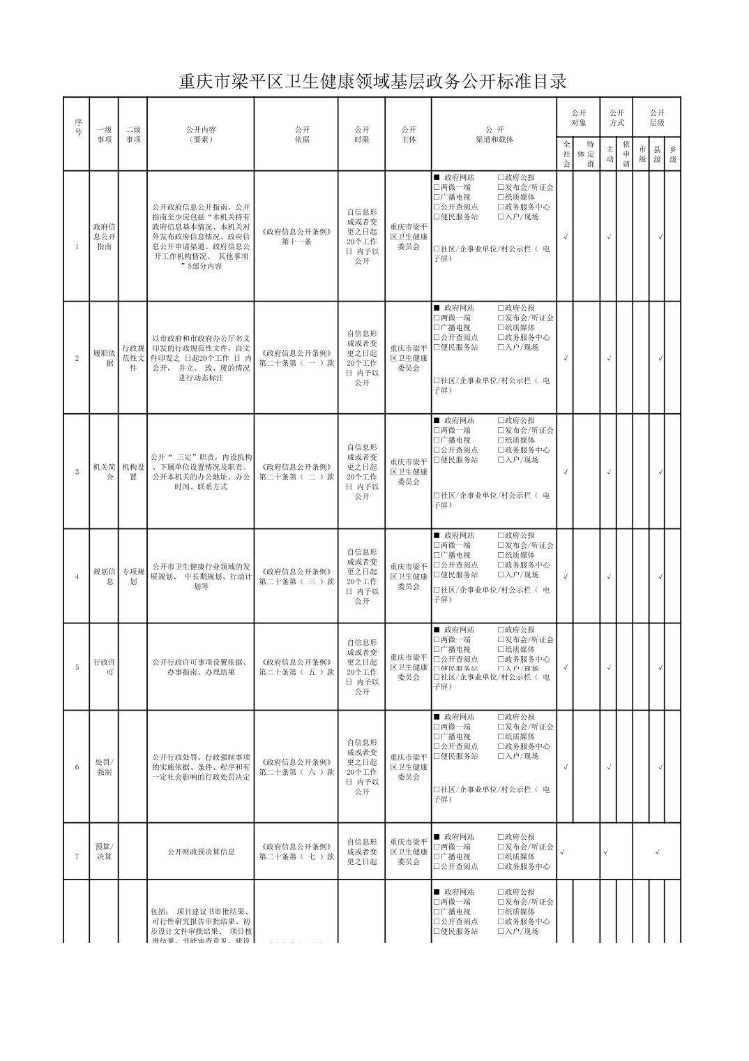 重慶市梁平區衛生健康領域基層政務公開標準目錄