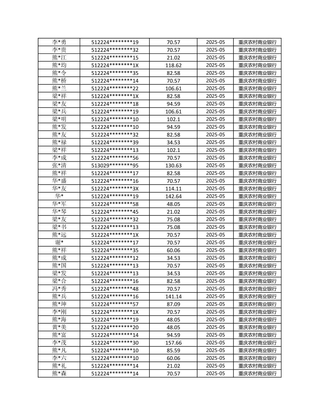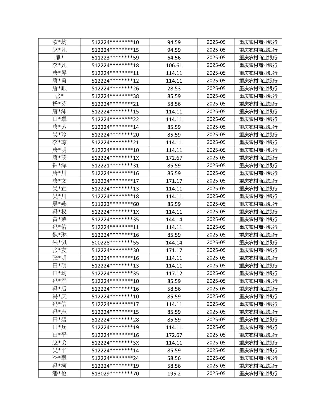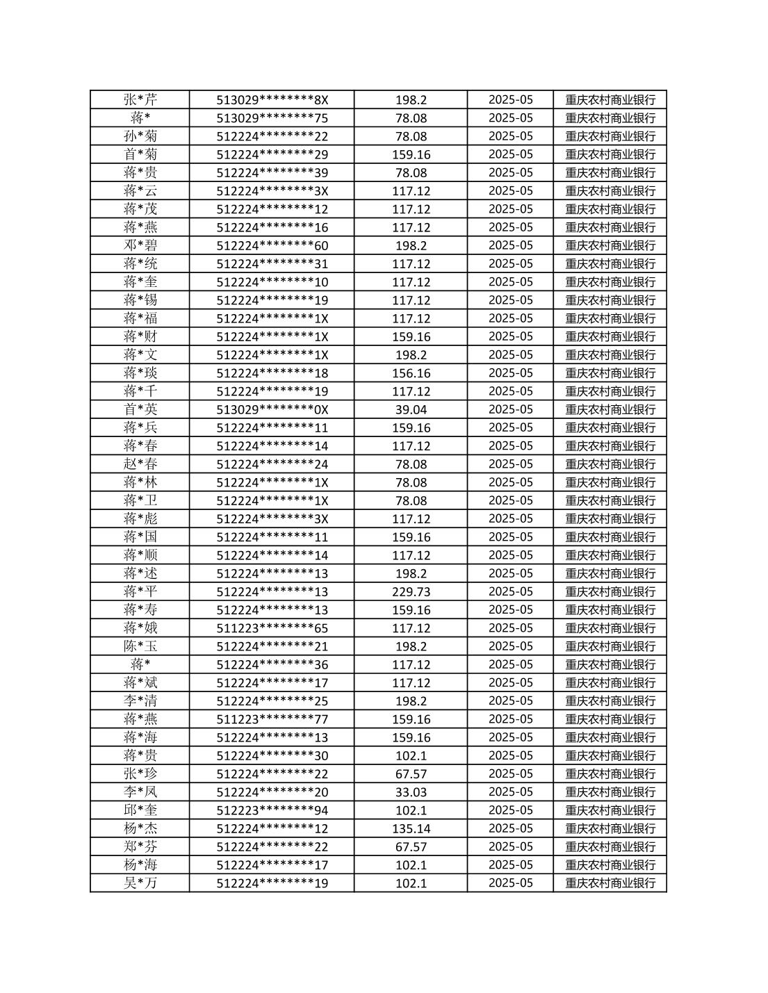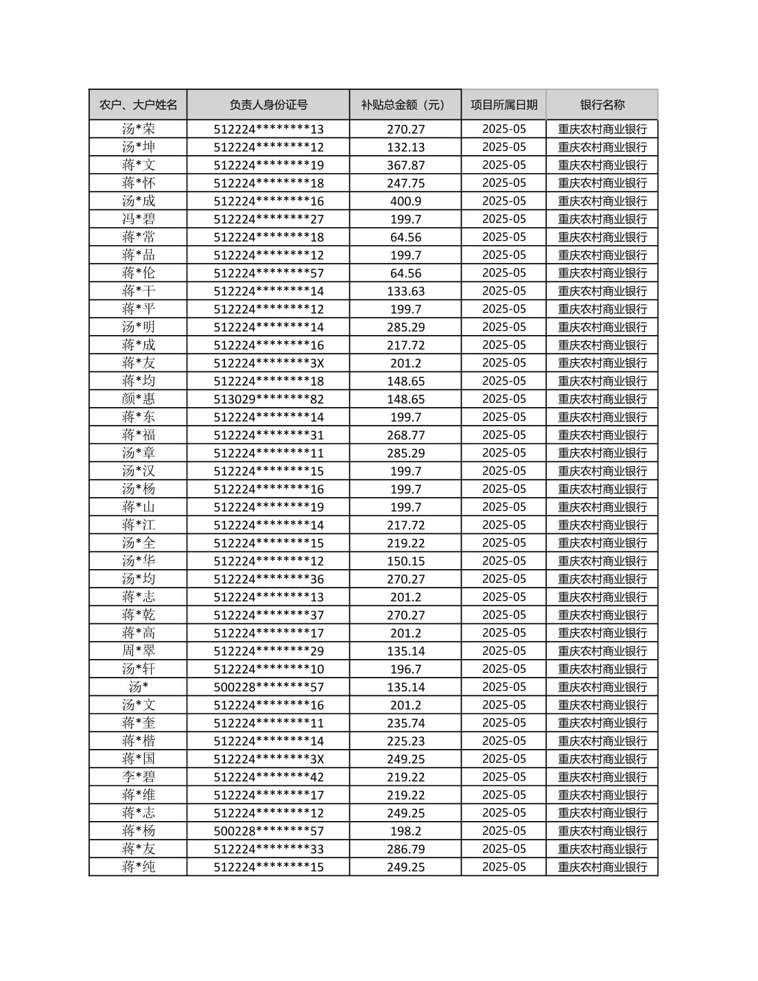 七星鎮2025年梁平區耕地地力保護補貼分戶明細公示表
