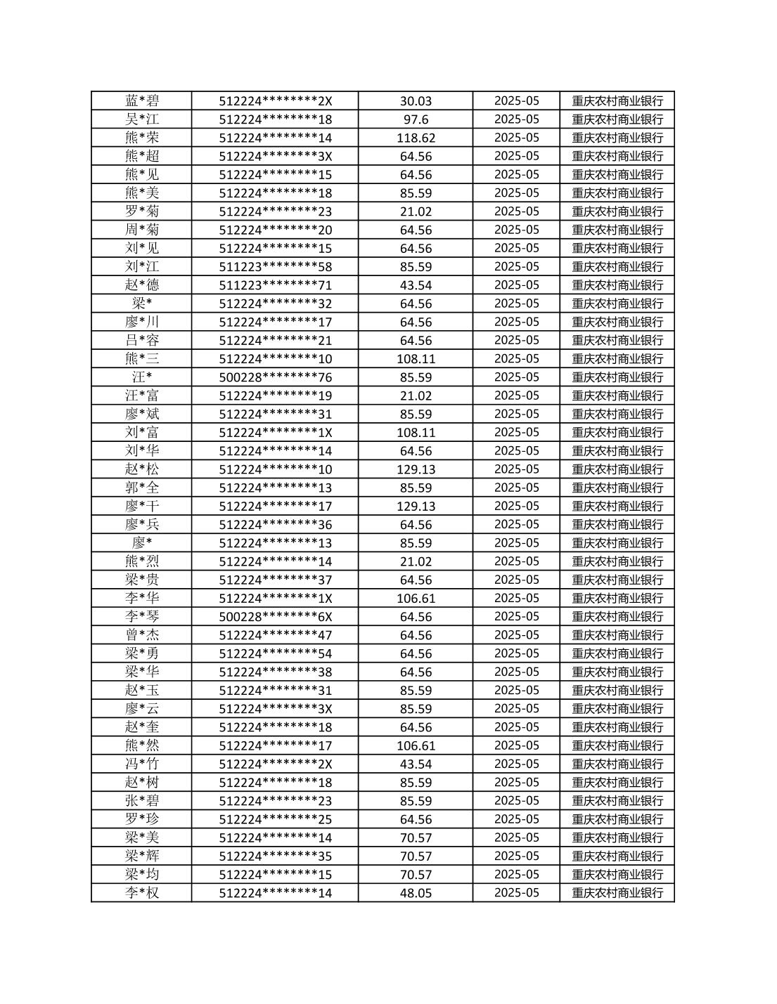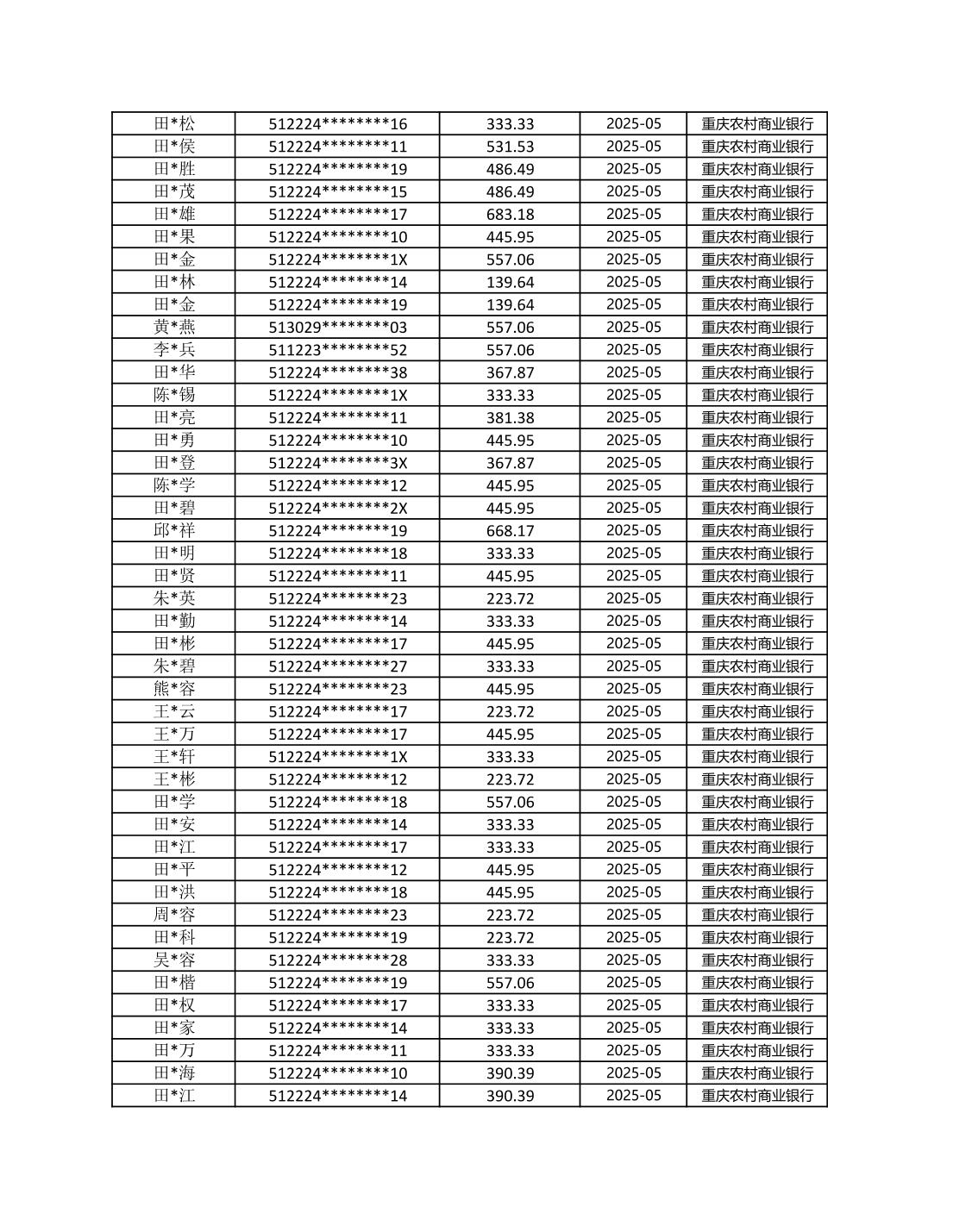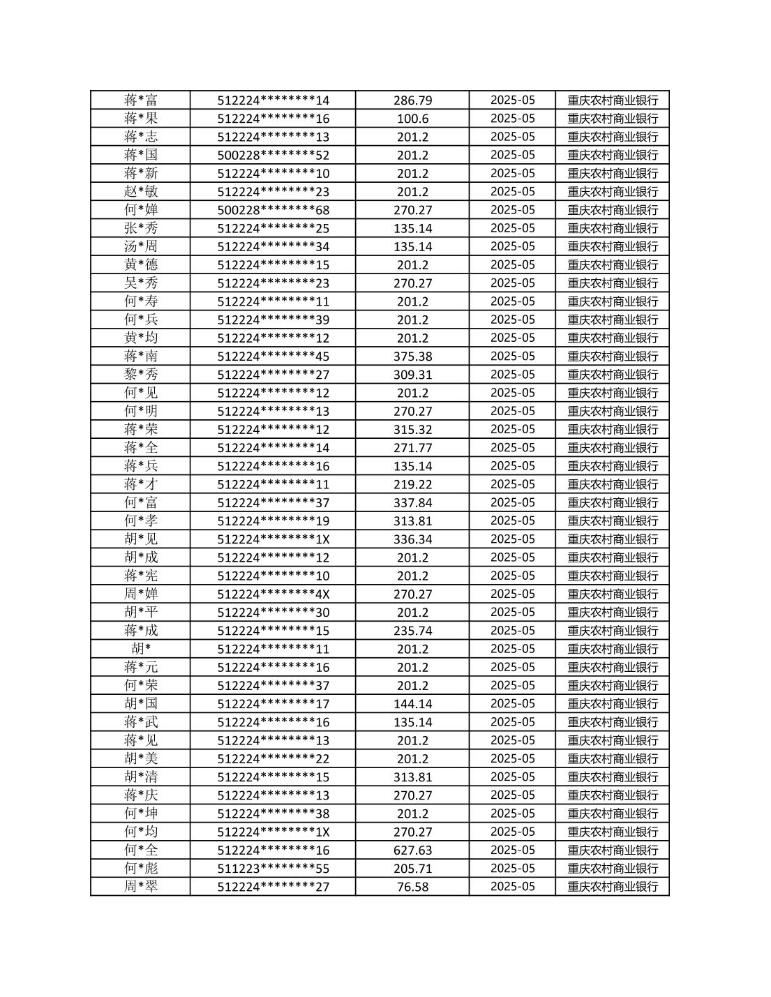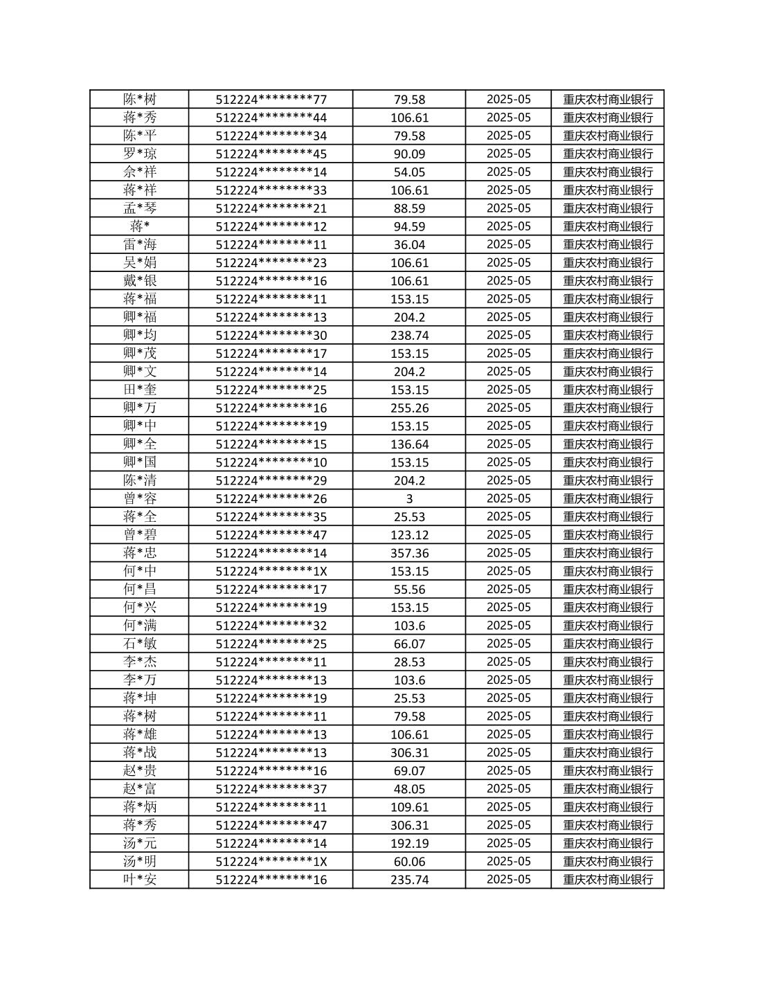 七星鎮2025年梁平區耕地地力保護補貼分戶明細公示表