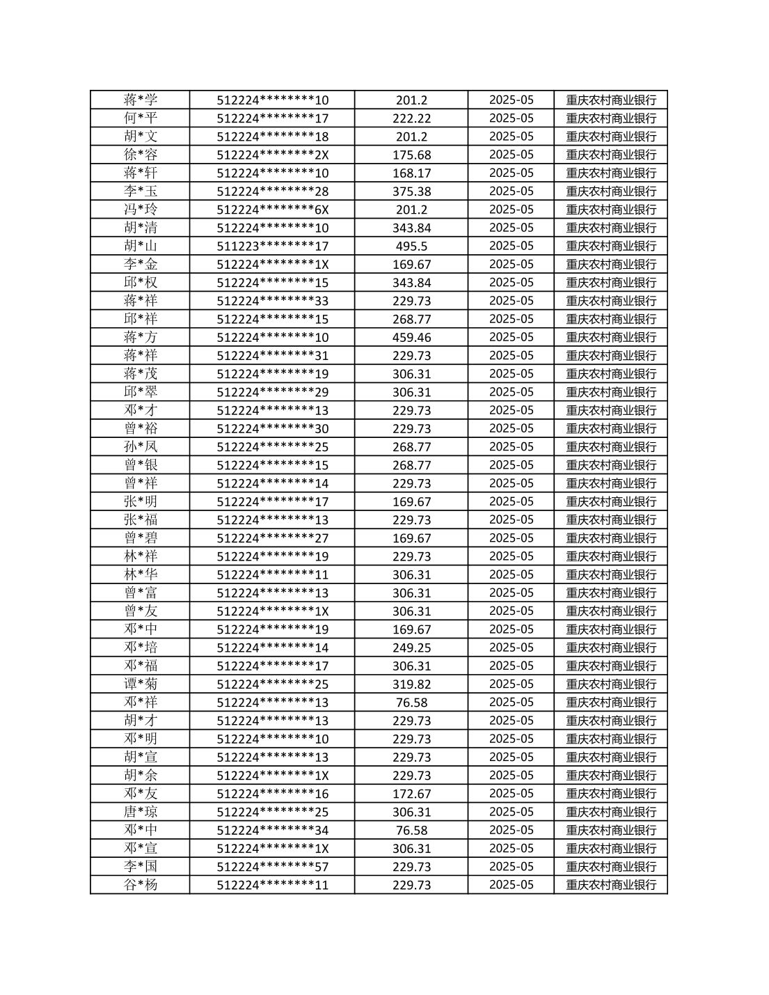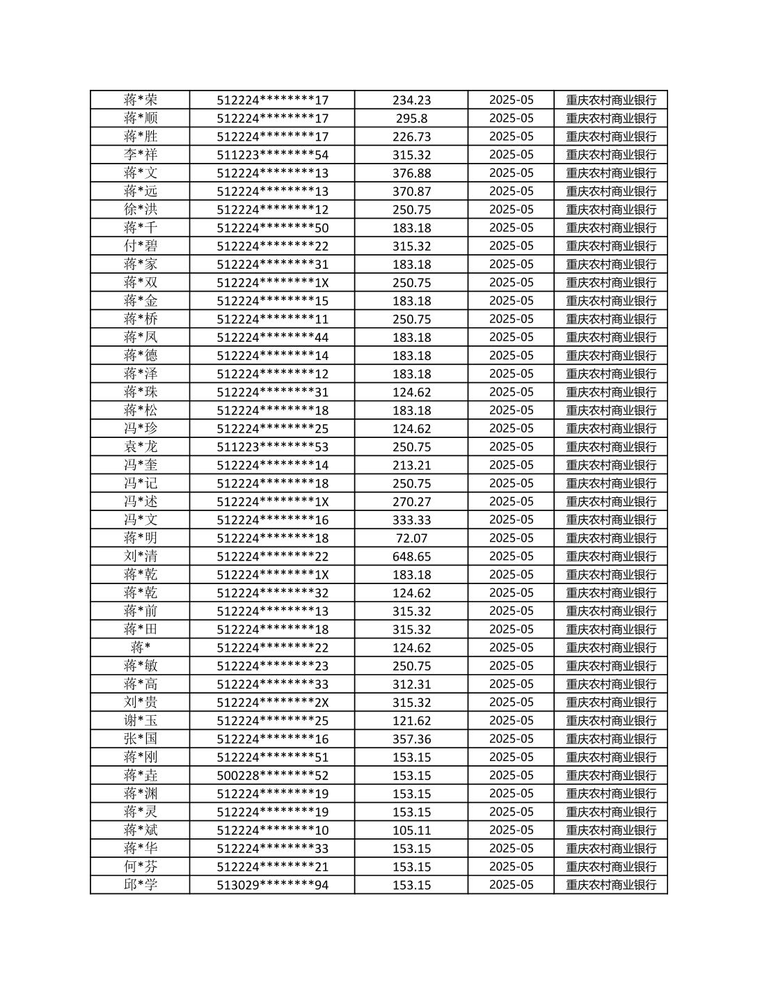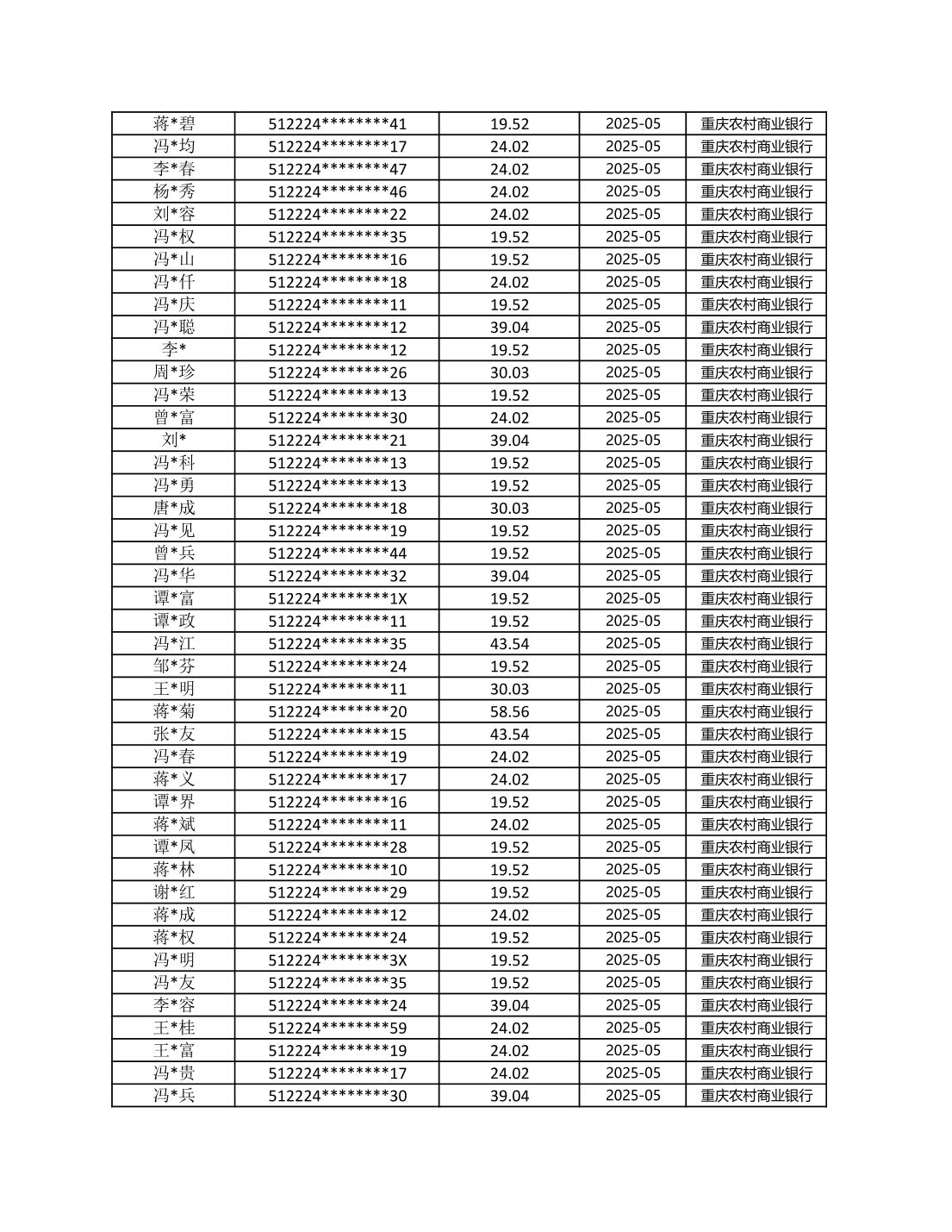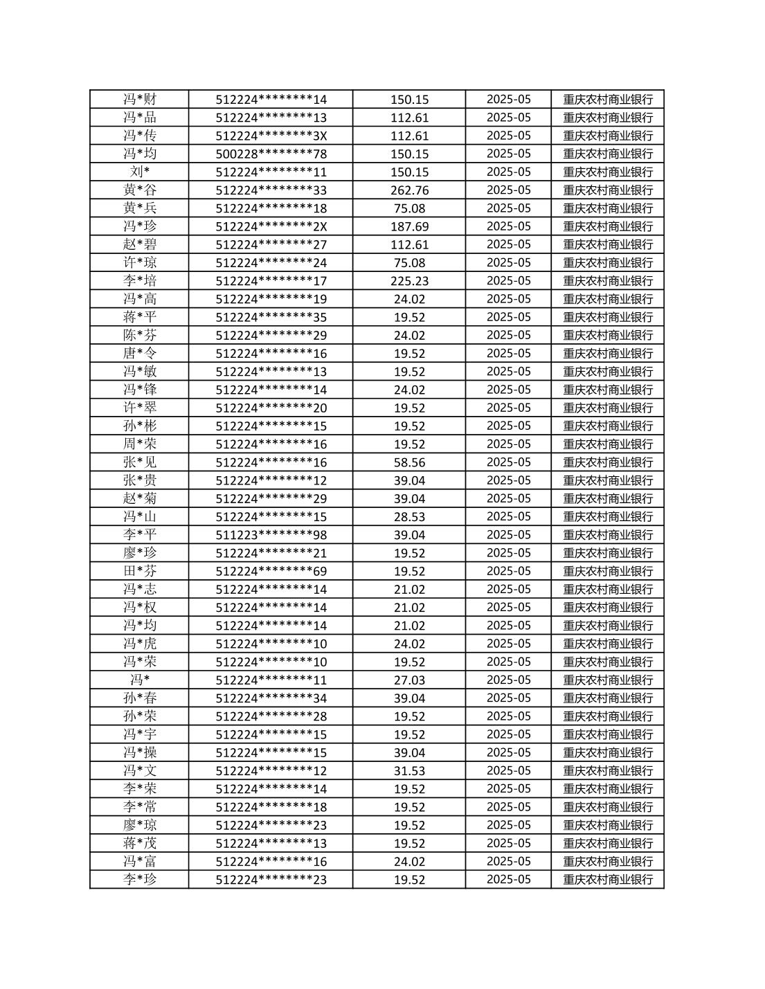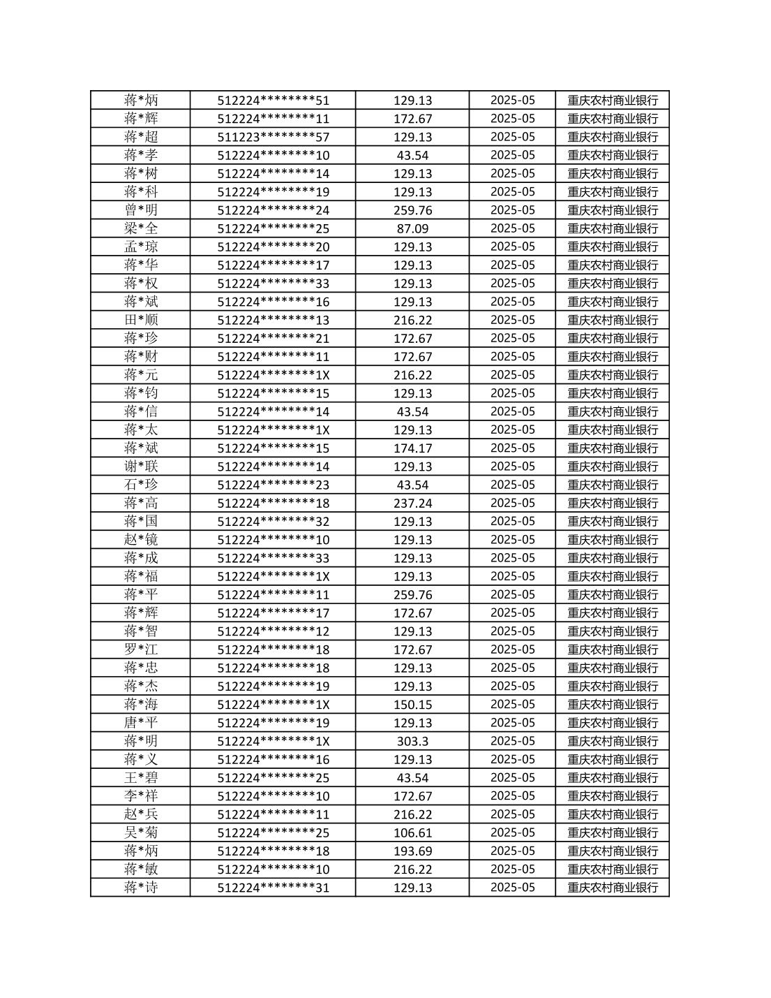 七星鎮2025年梁平區耕地地力保護補貼分戶明細公示表
