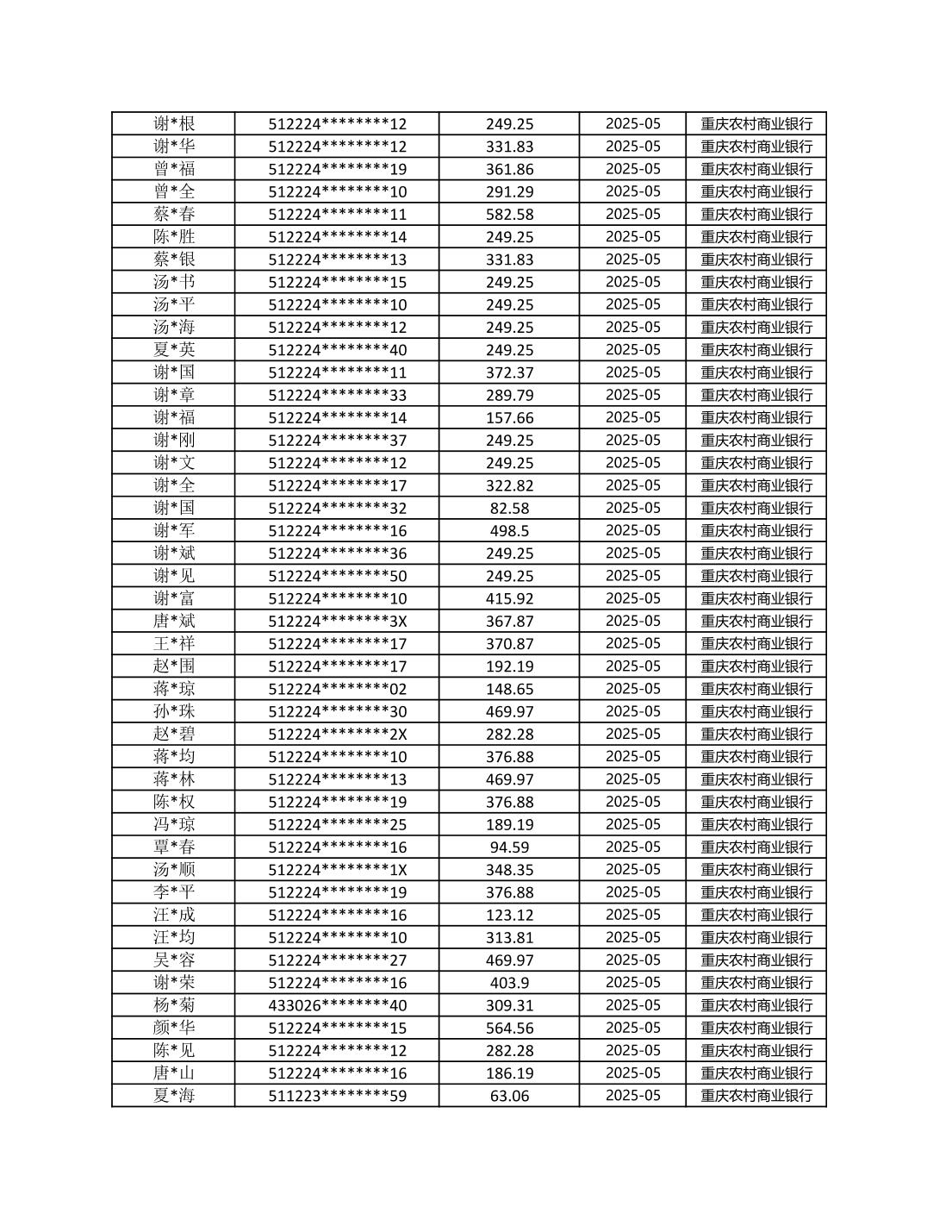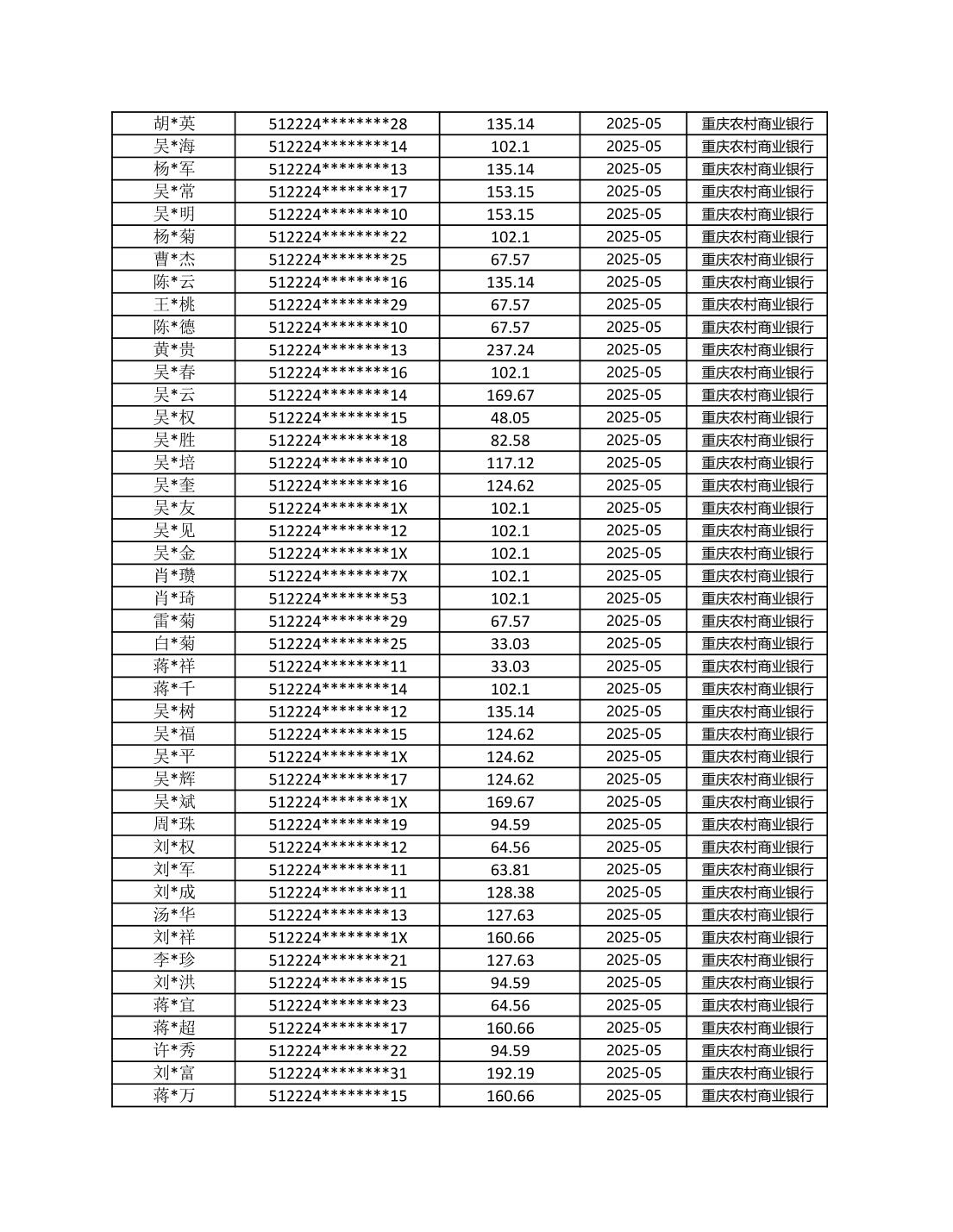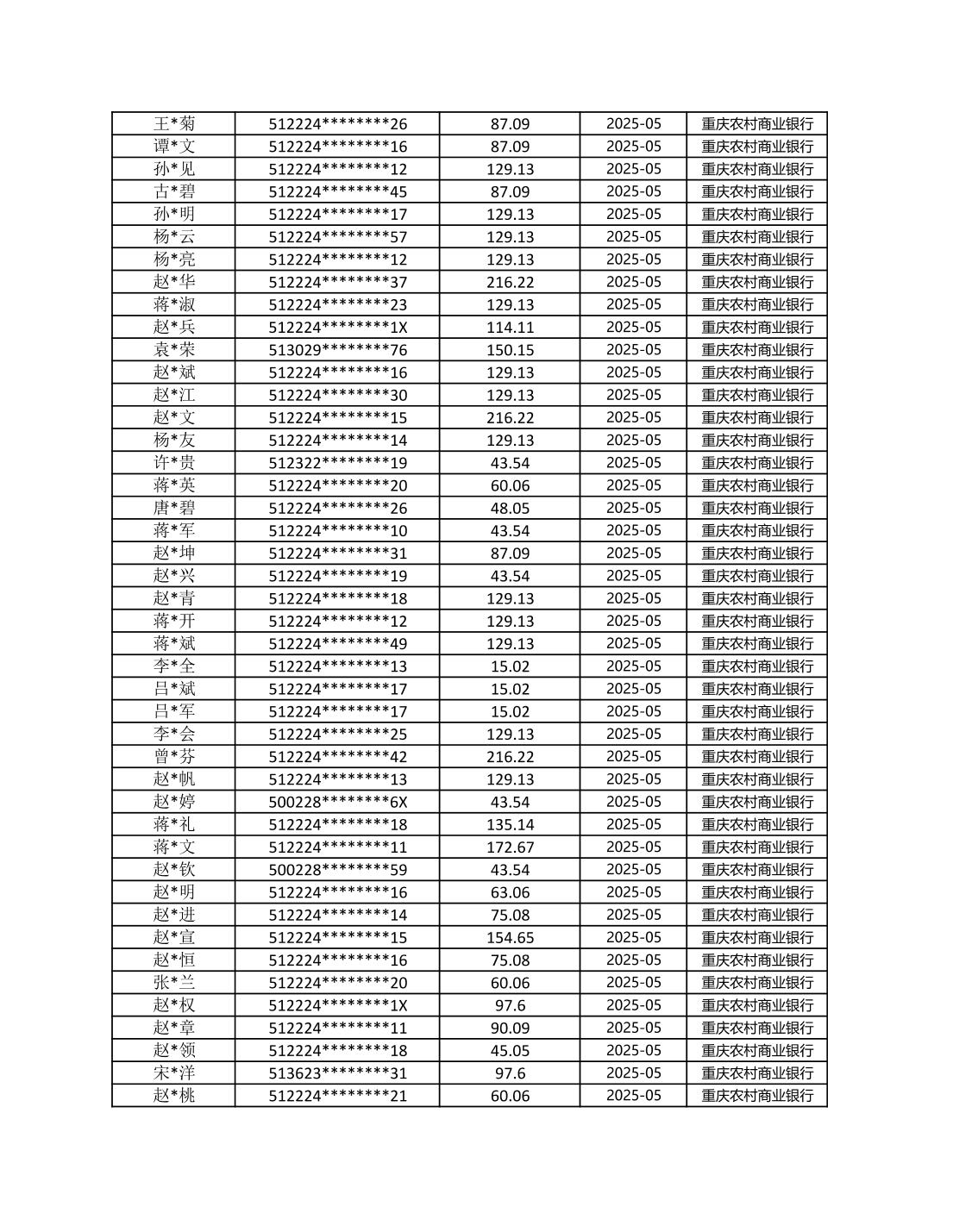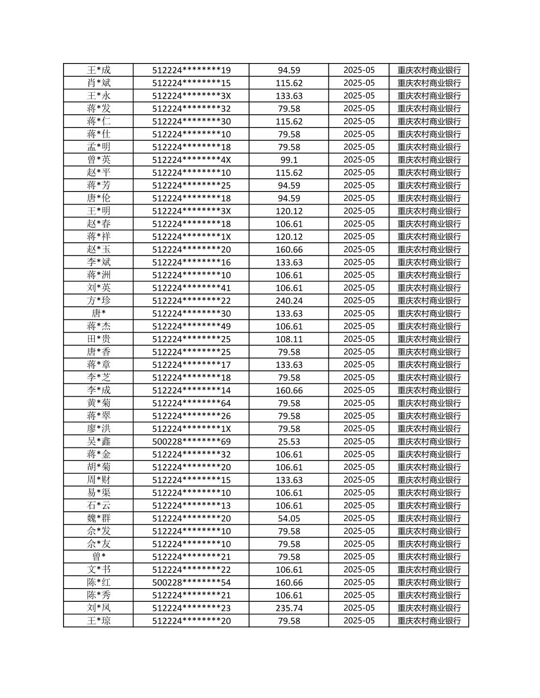 七星鎮2025年梁平區耕地地力保護補貼分戶明細公示表