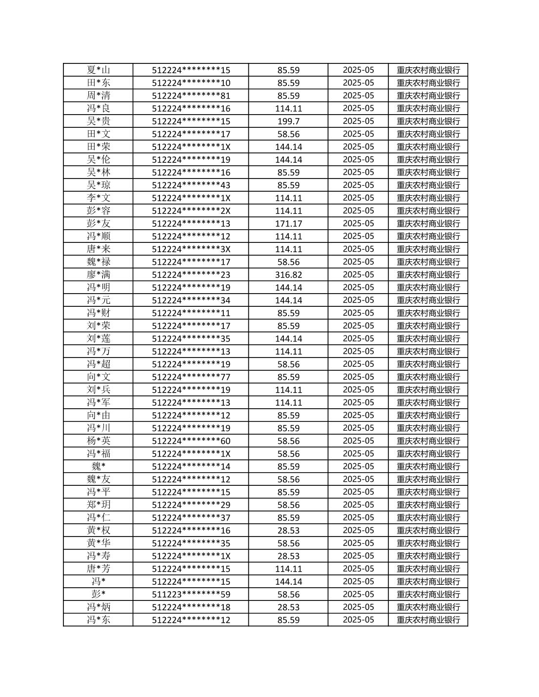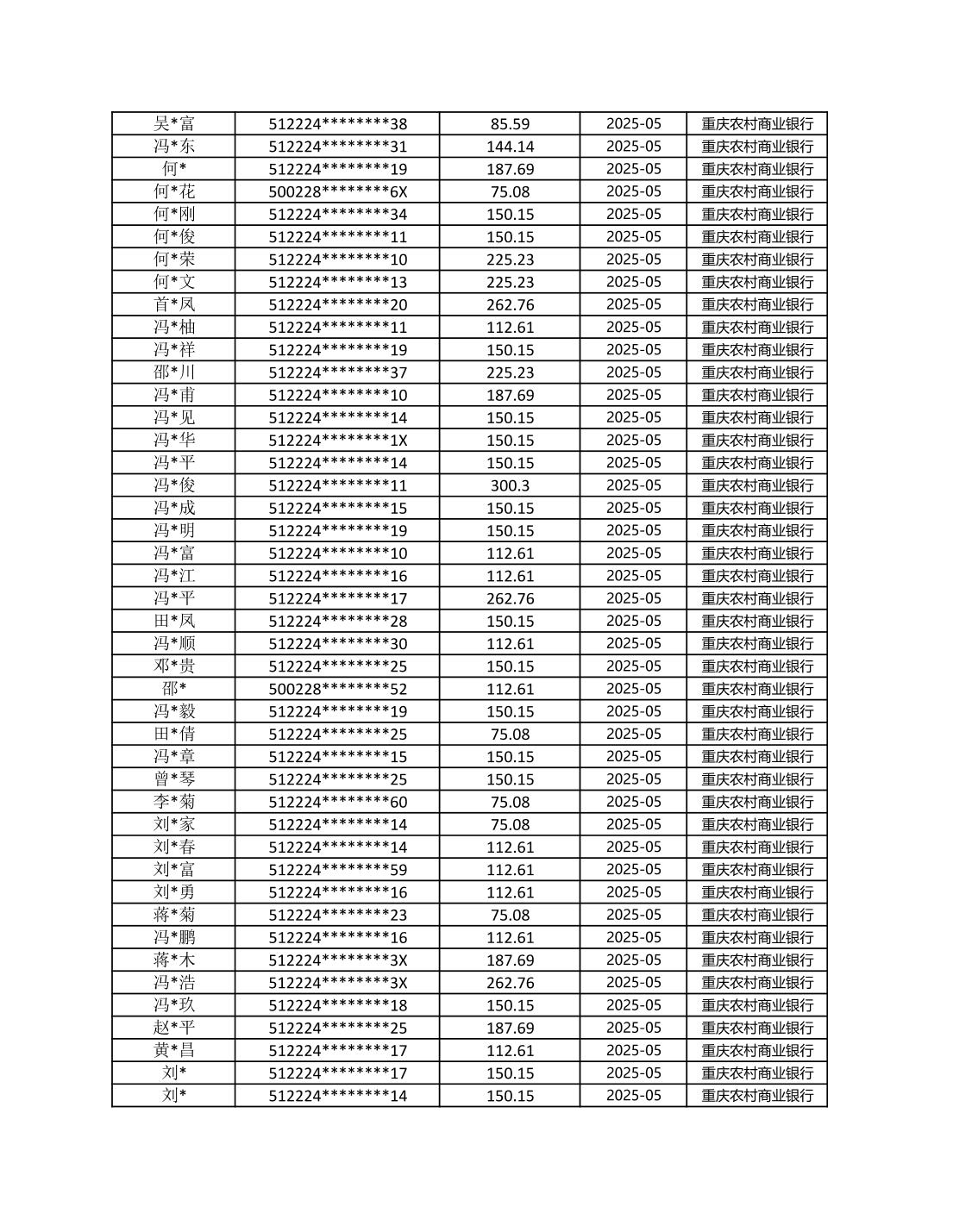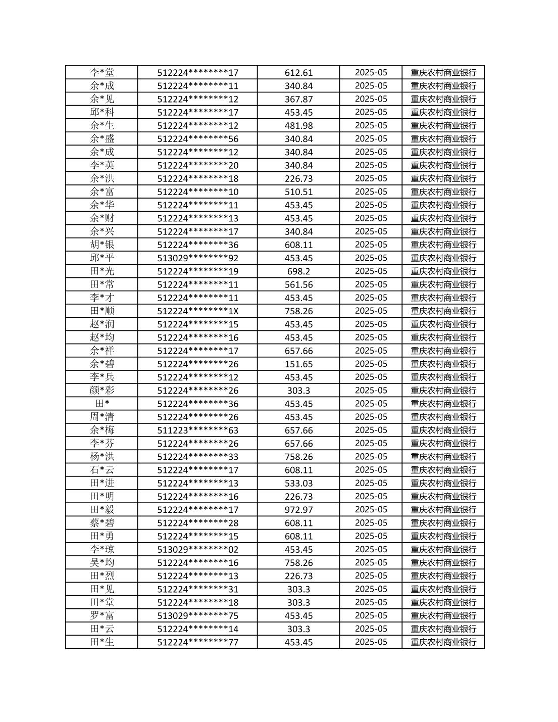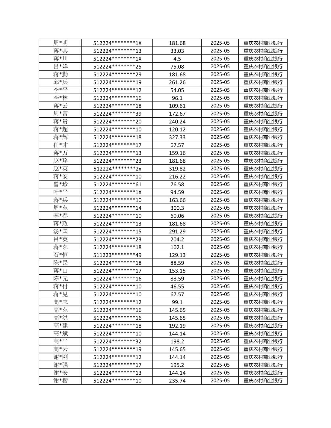 七星鎮2025年梁平區耕地地力保護補貼分戶明細公示表