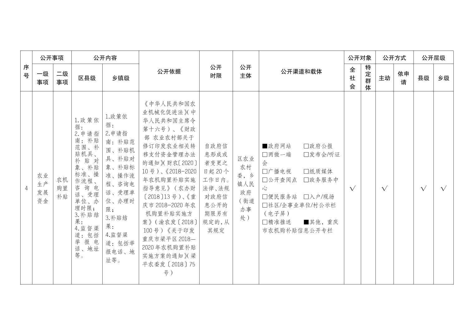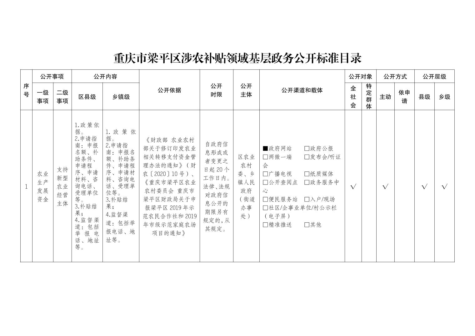 | 標題 | 重慶市梁平區涉農補貼領域基層政務公開標準目錄 |