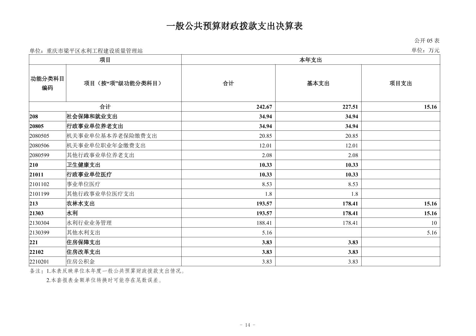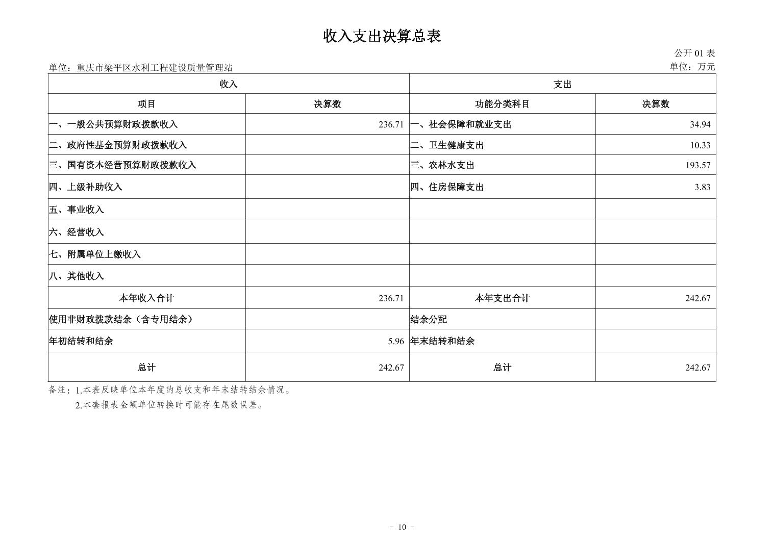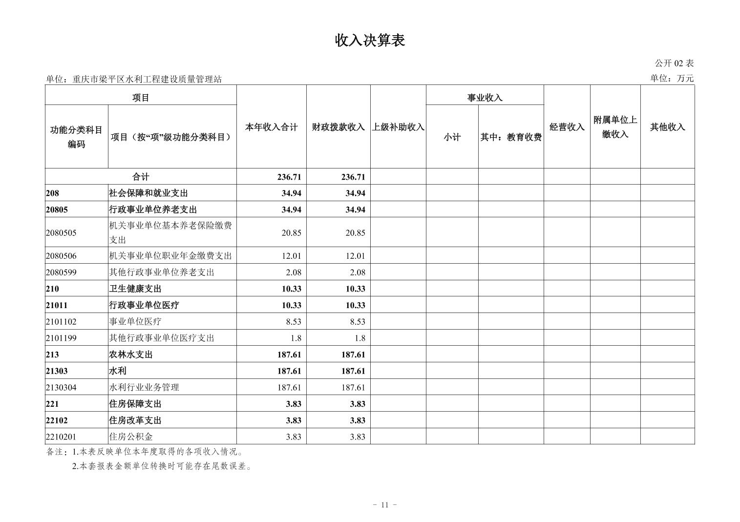 | 標題 | 重慶市梁平區水利工程建設質量管理站2024年度決算公開說明及報表 |