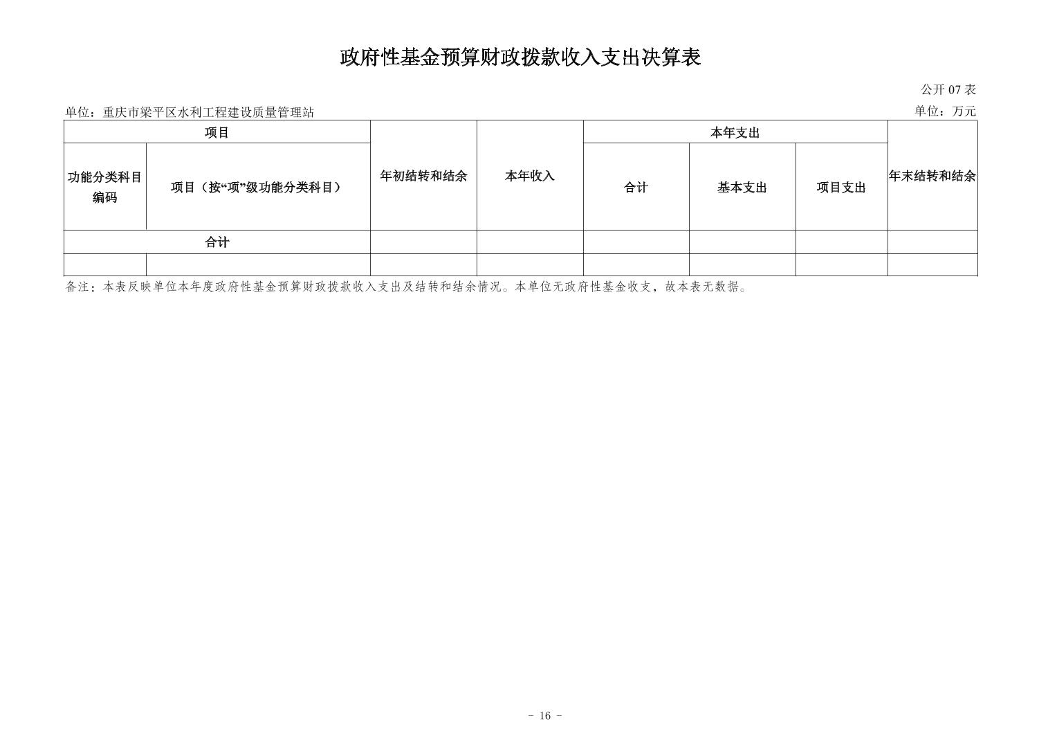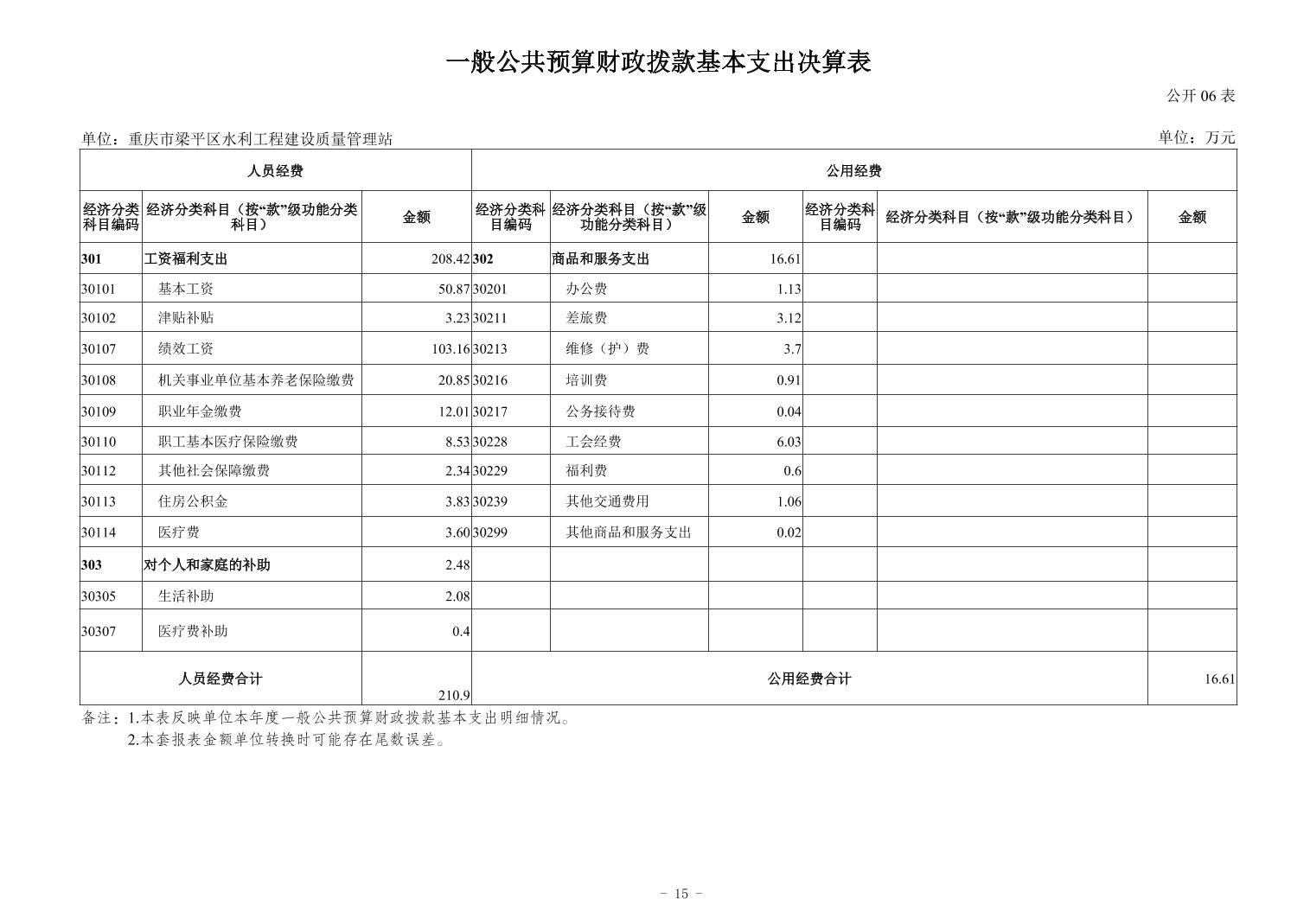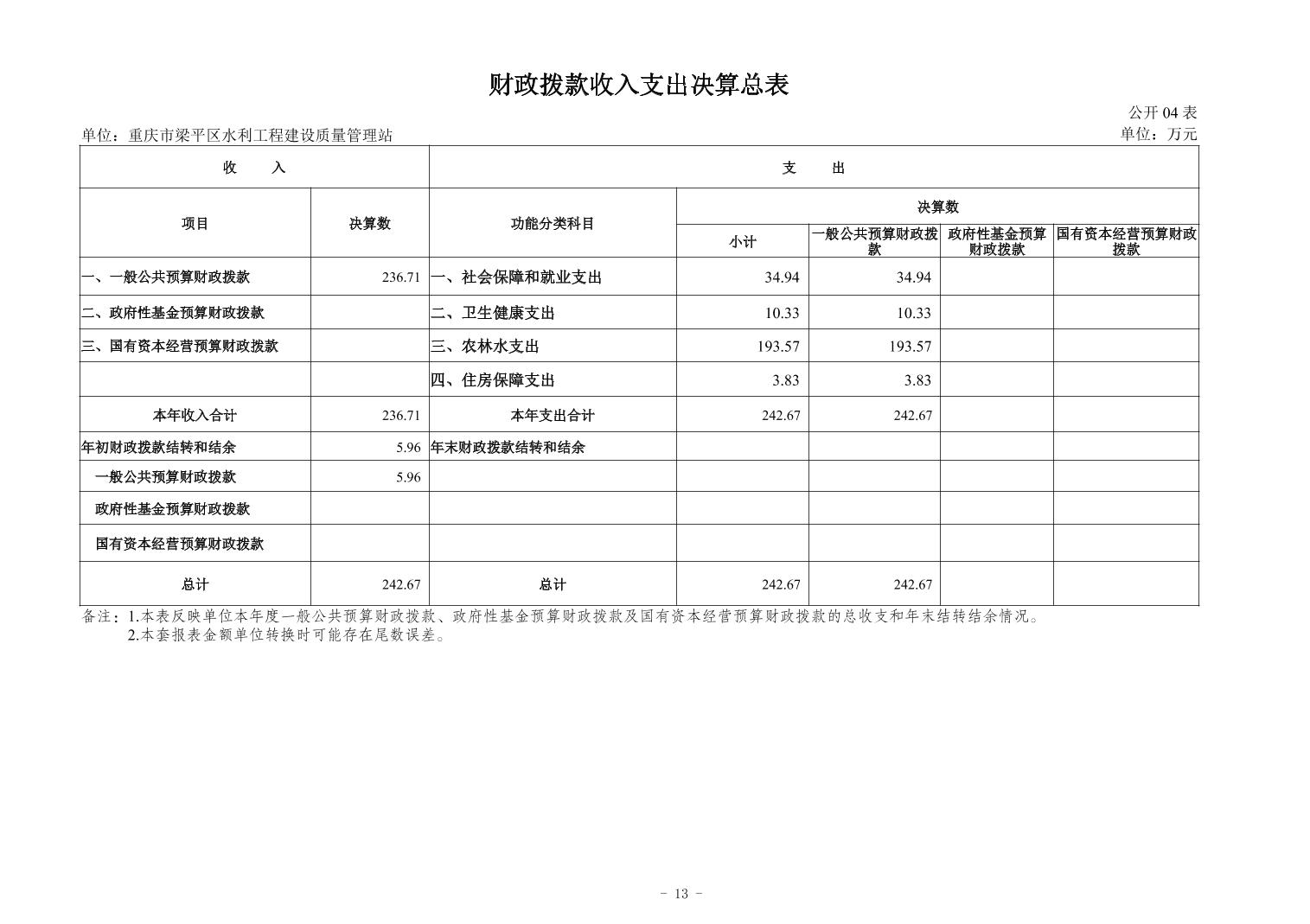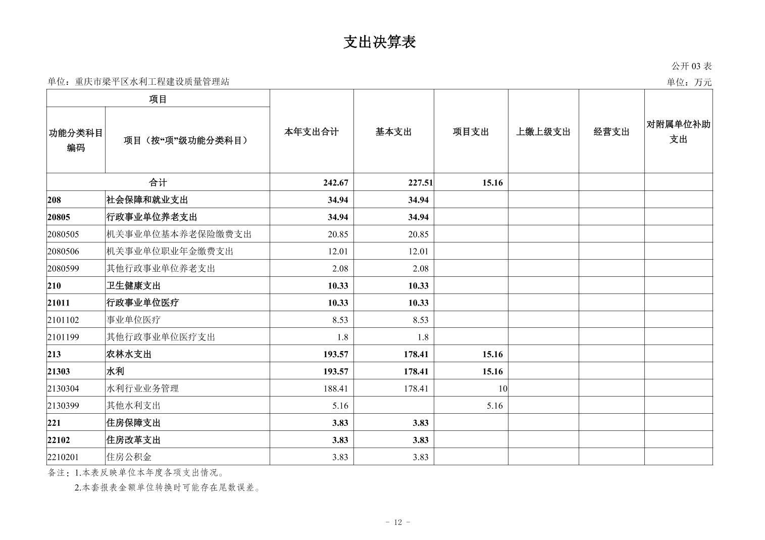 | 標題 | 重慶市梁平區水利工程建設質量管理站2024年度決算公開說明及報表 |