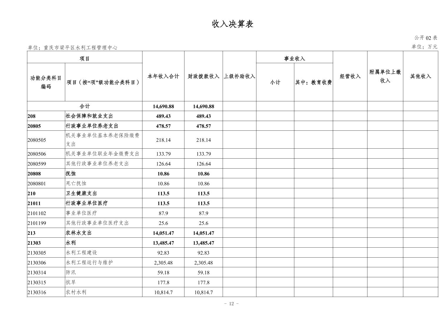 | 標題 | 重慶市梁平區水利工程管理中心2024年度決算公開說明及報表 |