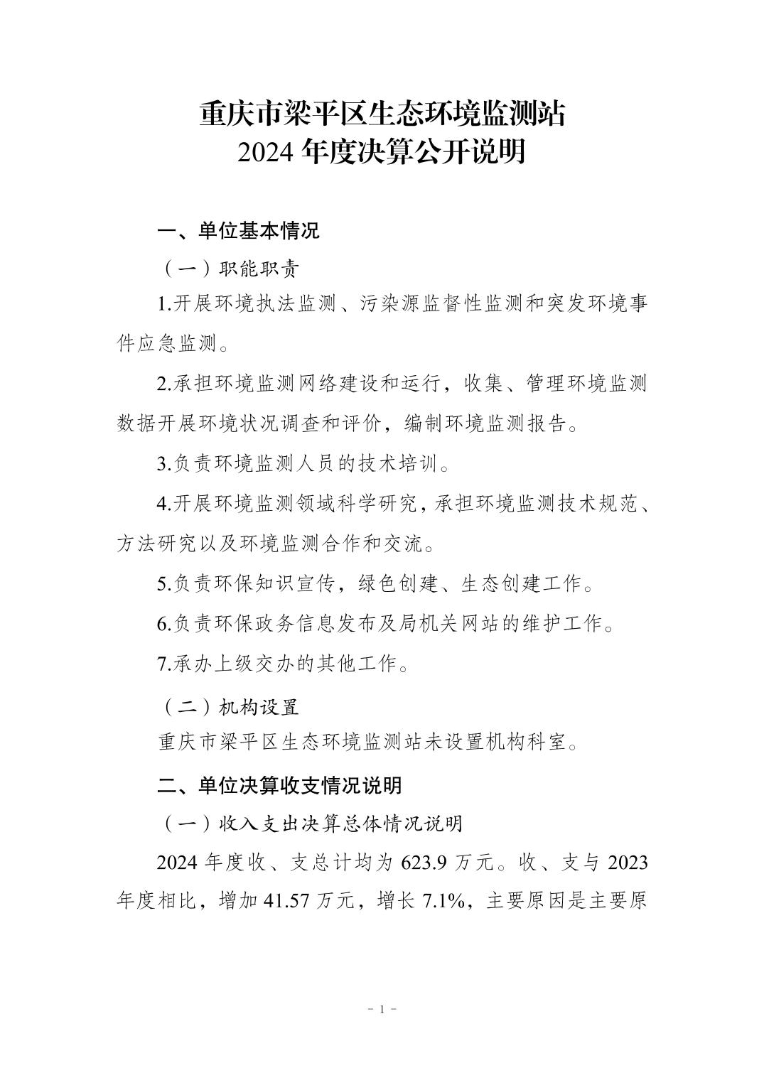 | 標題 | 重慶市梁平區生態環境監測站2024年度決算公開說明 |