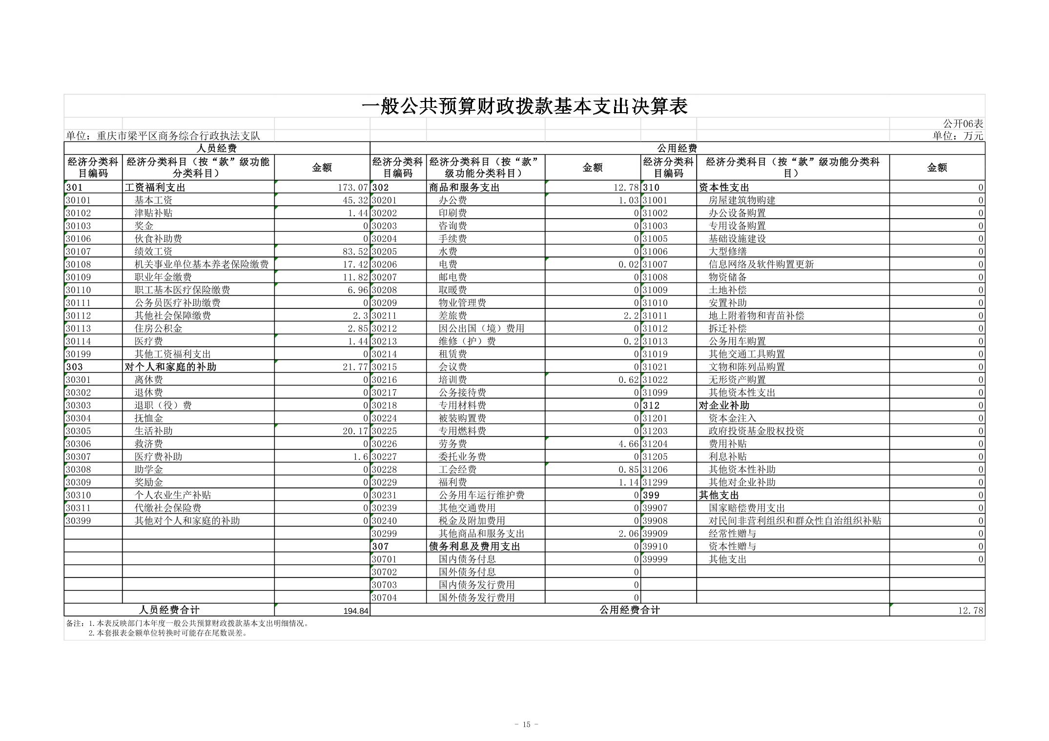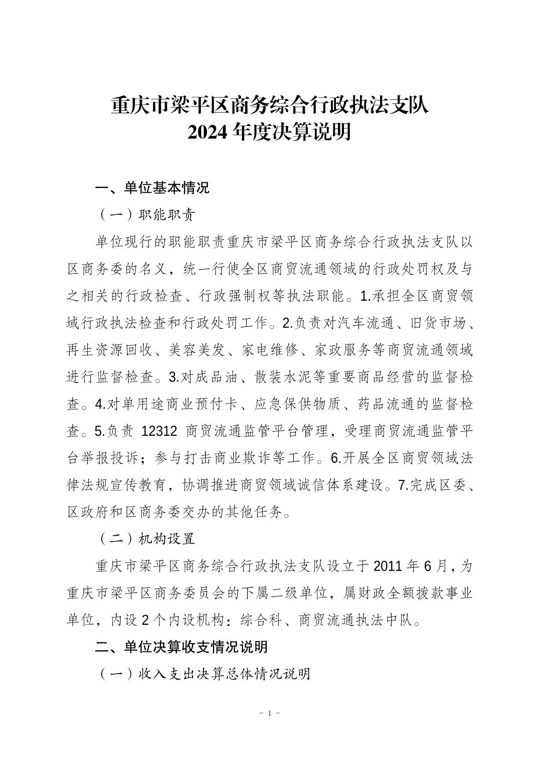 | 標題 | 重慶市梁平區商務綜合行政執法支隊 2024年度決算說明 |