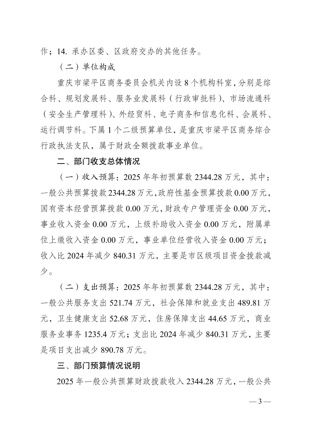 | 標(biāo)題 | 重慶市梁平區(qū)商務(wù)委員會2025年部門預(yù)算情況說明 | ||