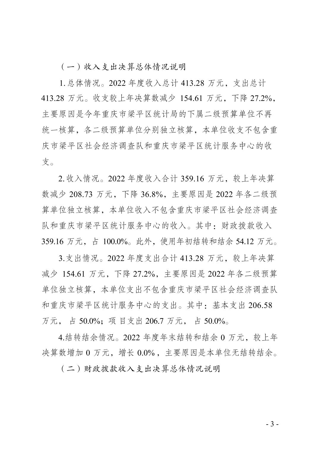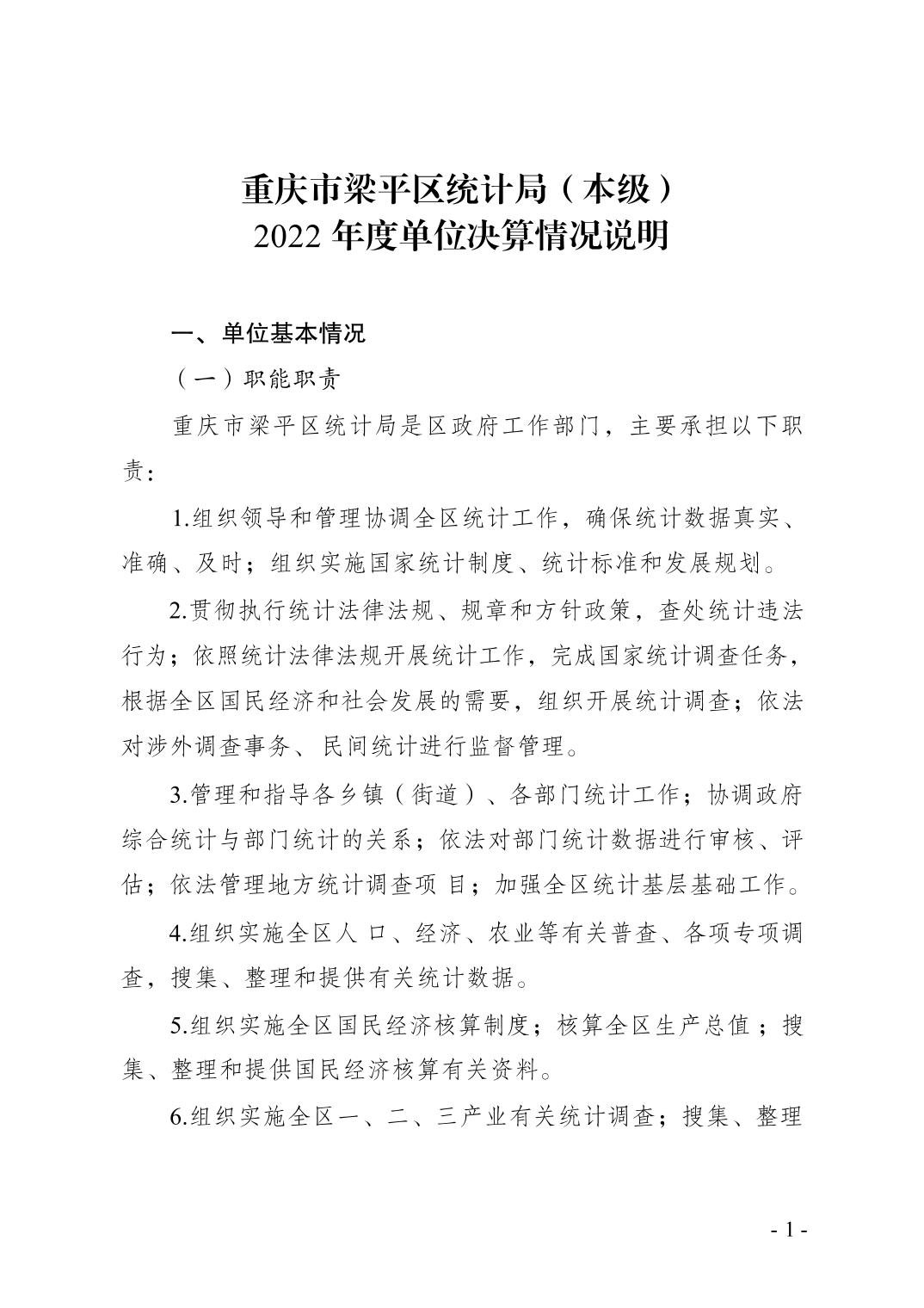 | 標題 | 重慶市梁平區(qū)統(tǒng)計局(本級)2022年度單位決算情況說明 |