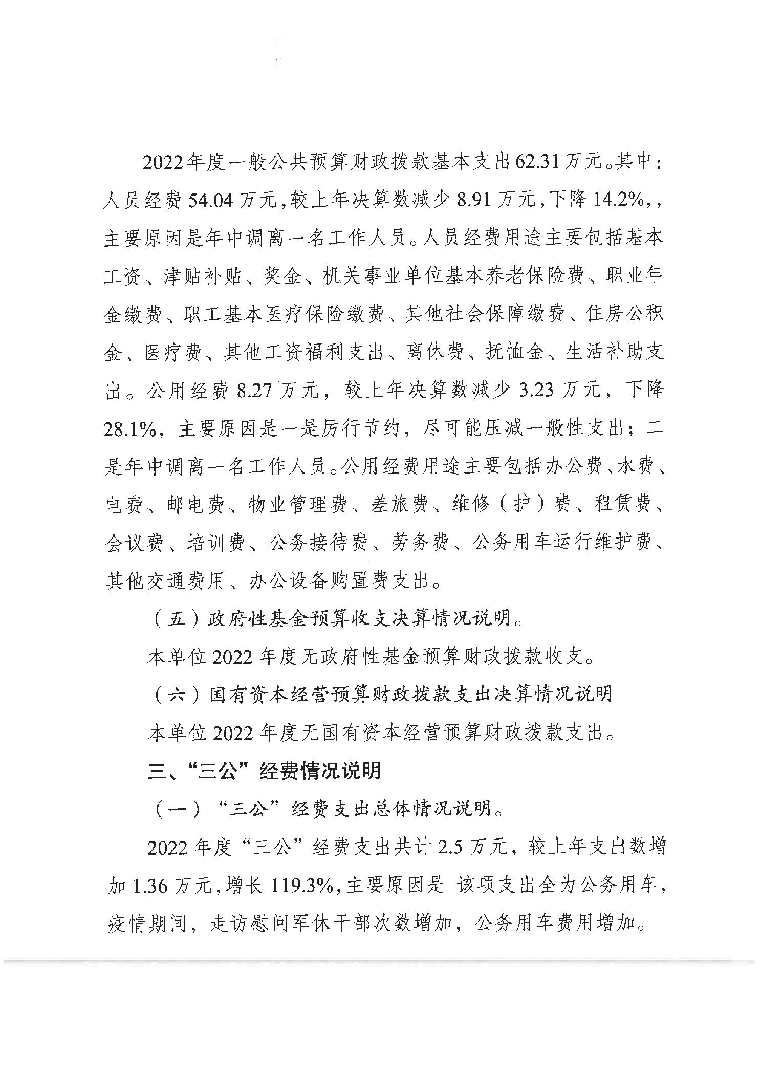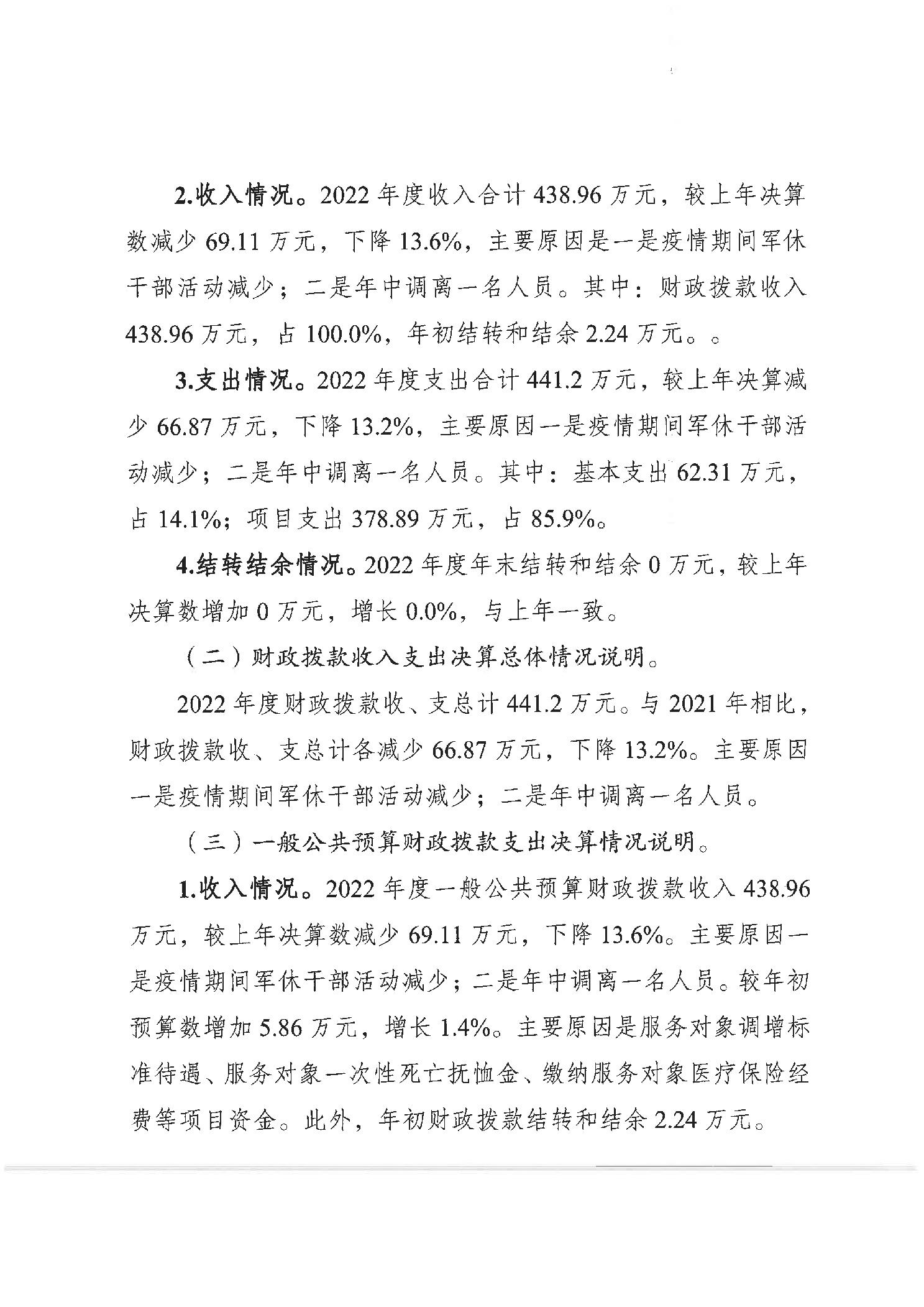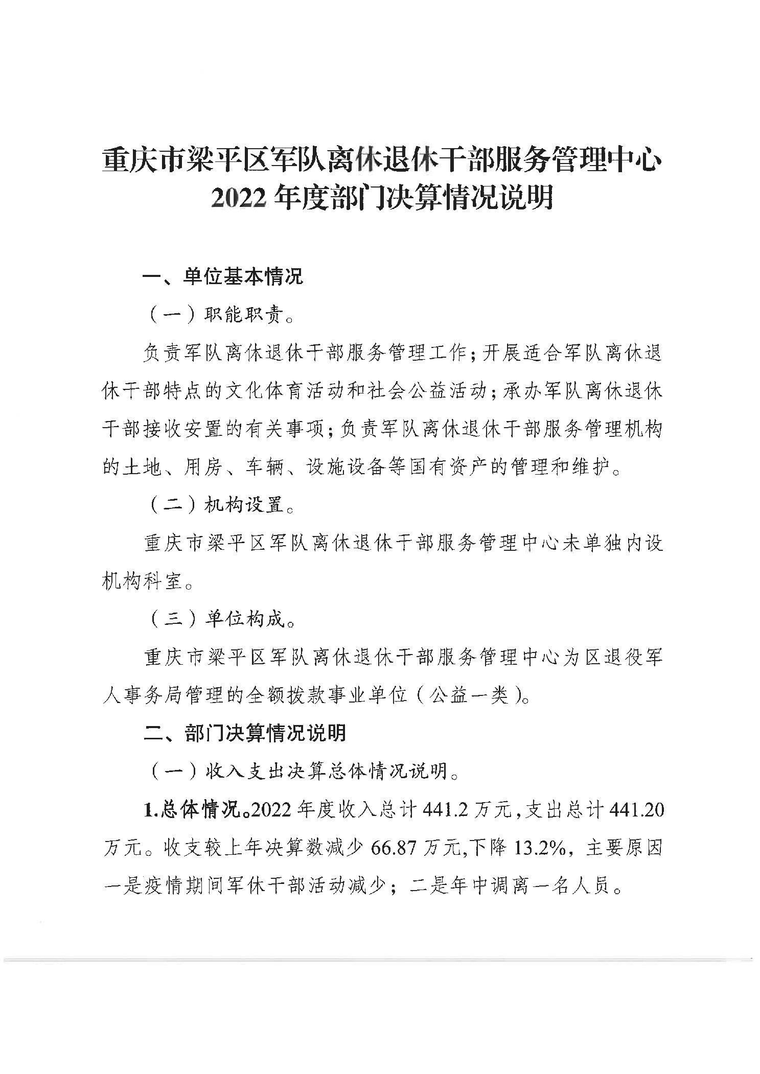 重慶市梁平區(qū)軍隊(duì)離休退休干部服務(wù)管理中心 2022年度部門(mén)決算情況說(shuō)明 |