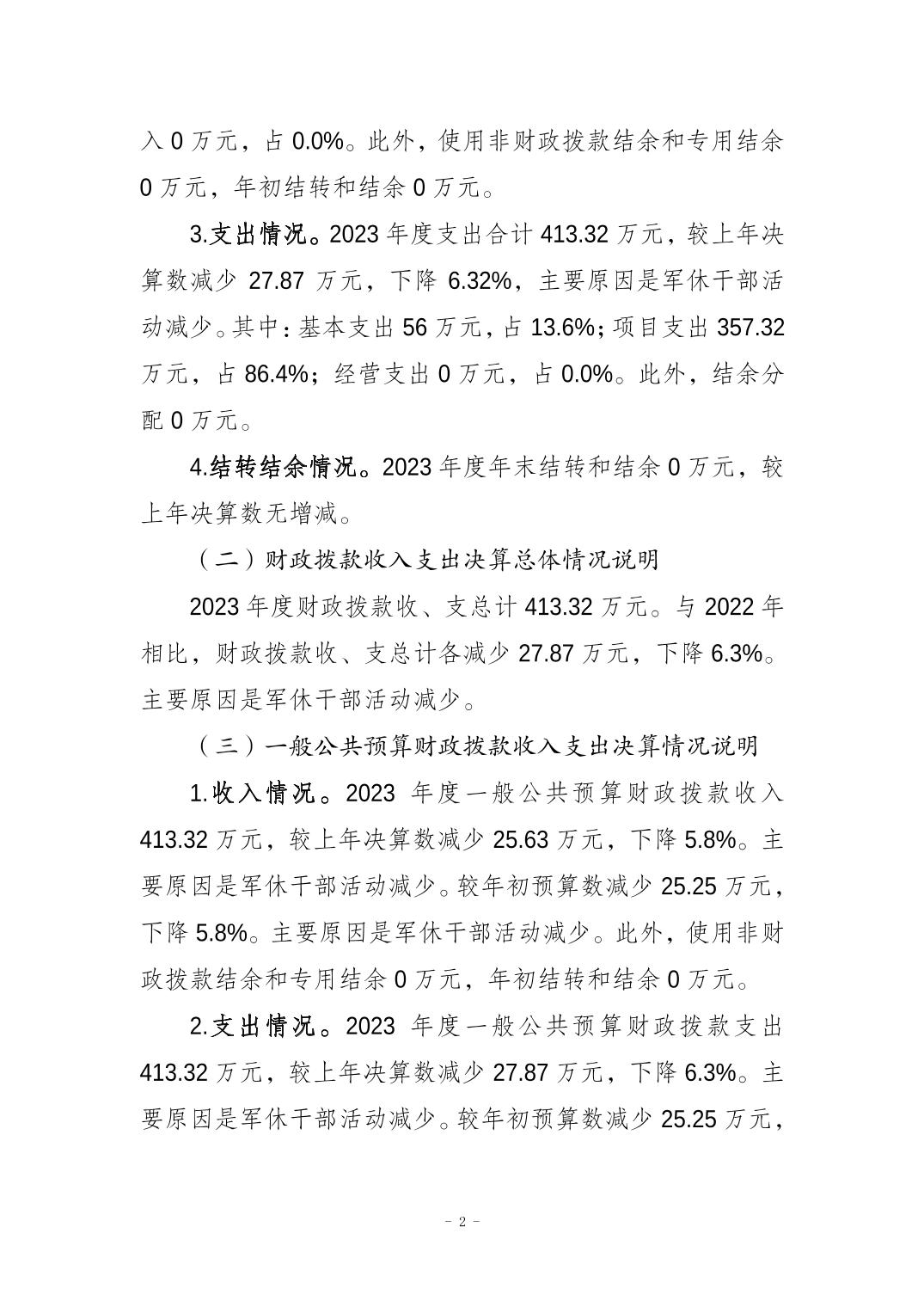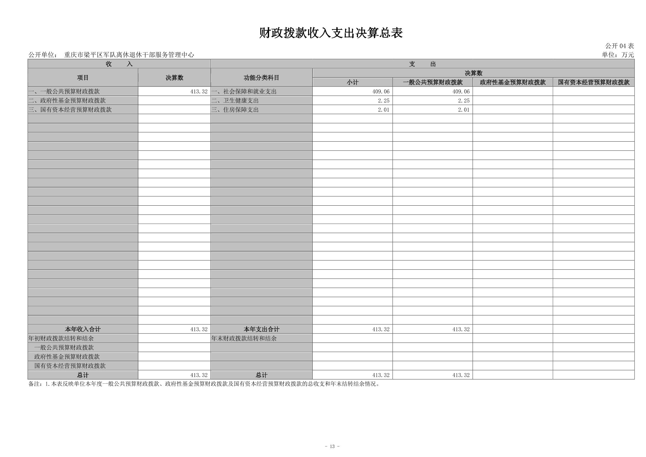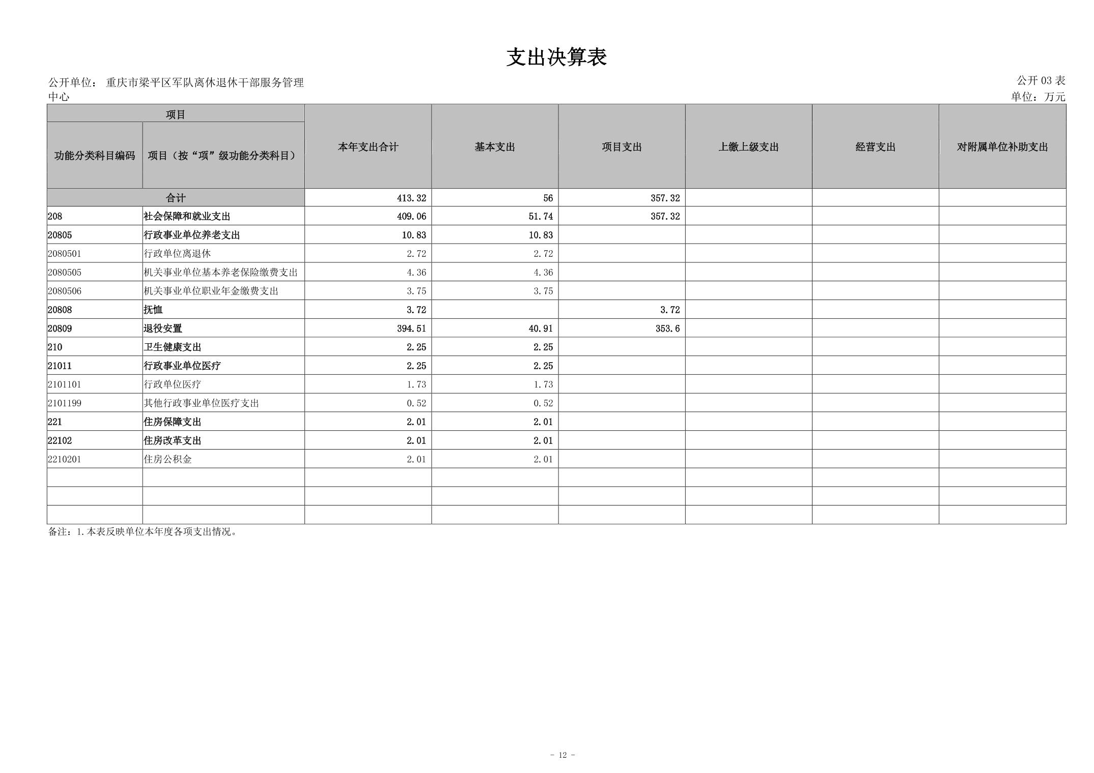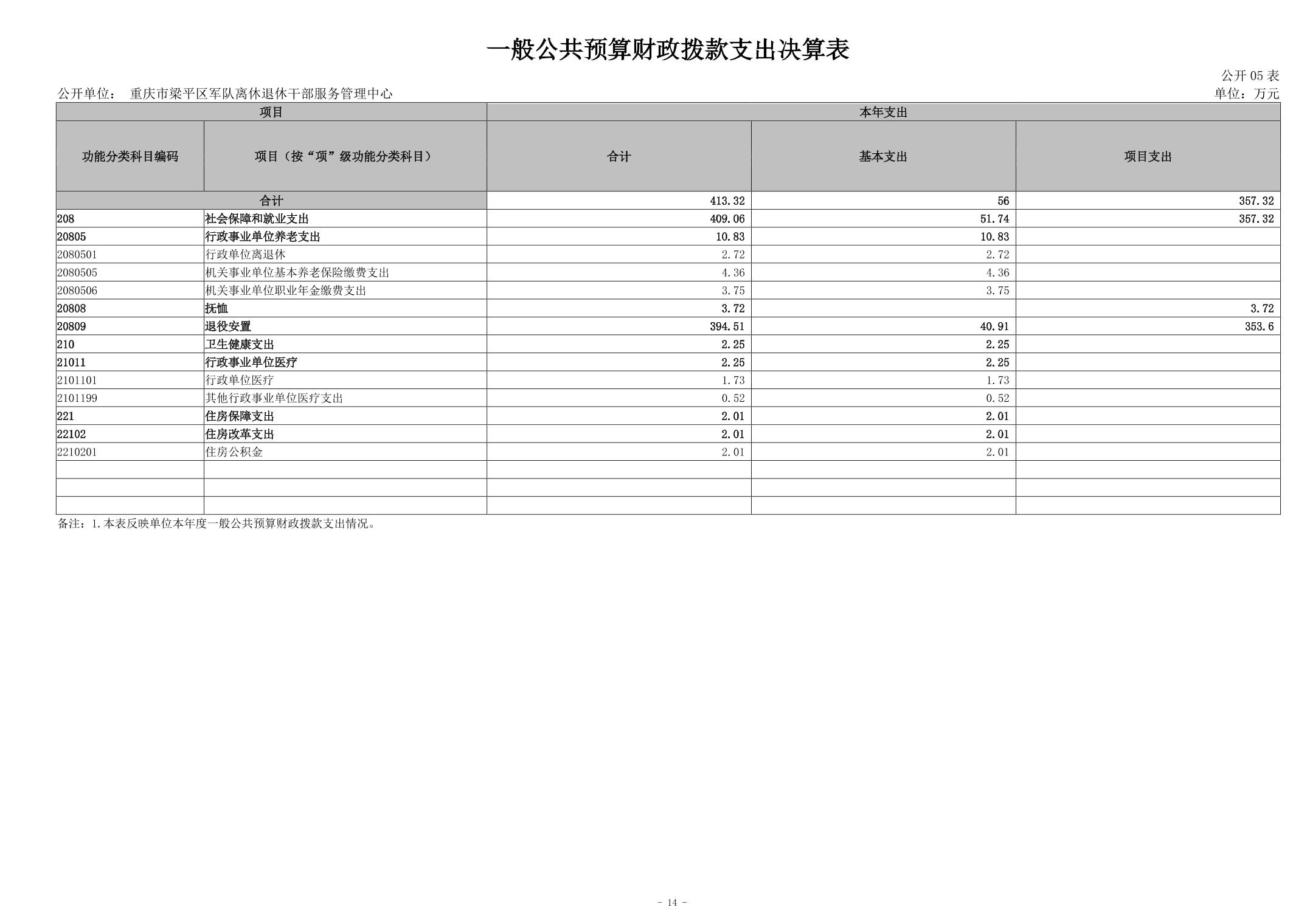| 標題 | 重慶市梁平區軍隊離休退休干部服務管理中心2023年度決算公開說明 |