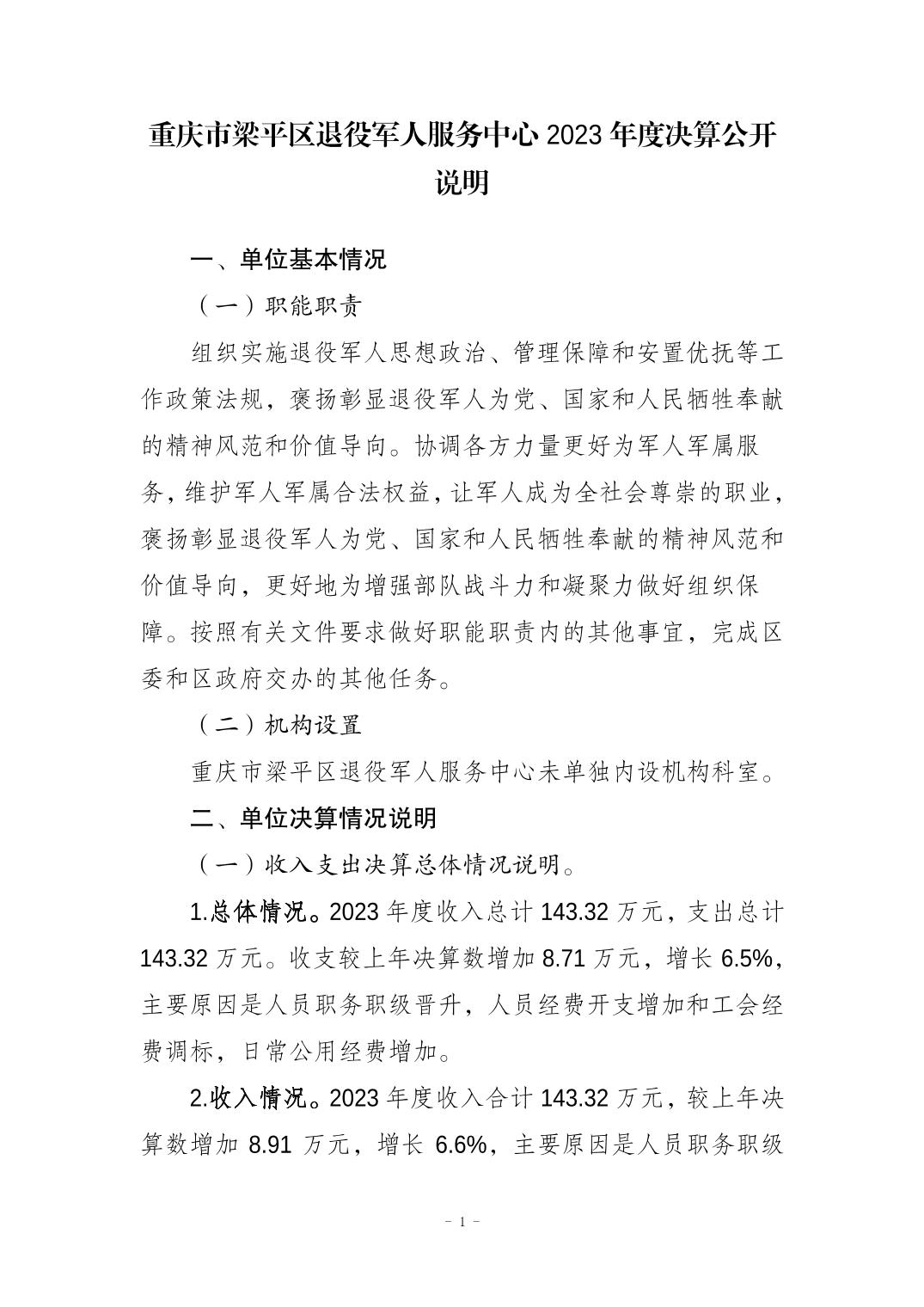 | 標題 | 重慶市梁平區退役軍人服務中心2023年度決算公開說明 |