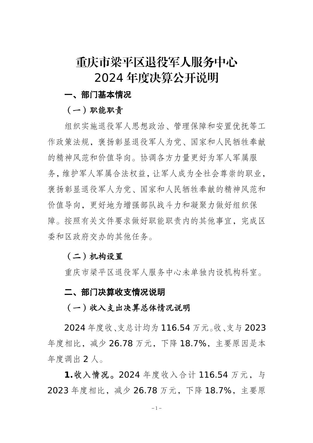 | 標題 | 重慶市梁平區退役軍人服務中心2024年度決算公開說明 |