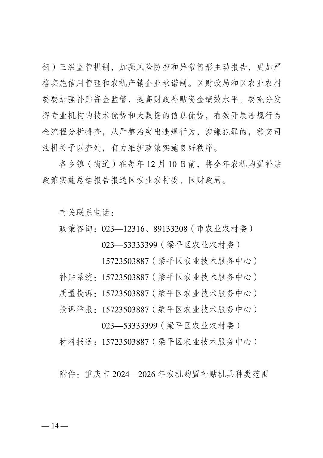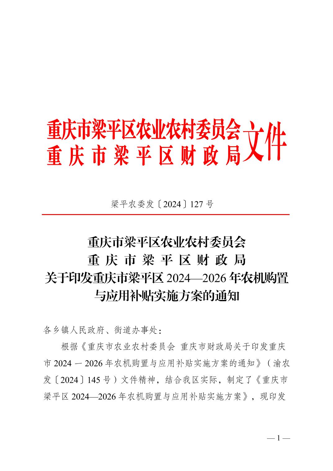 | 標題 | 關于印發重慶市梁平區2024—2026年農機購置 與應用補貼實施方案的通知 |