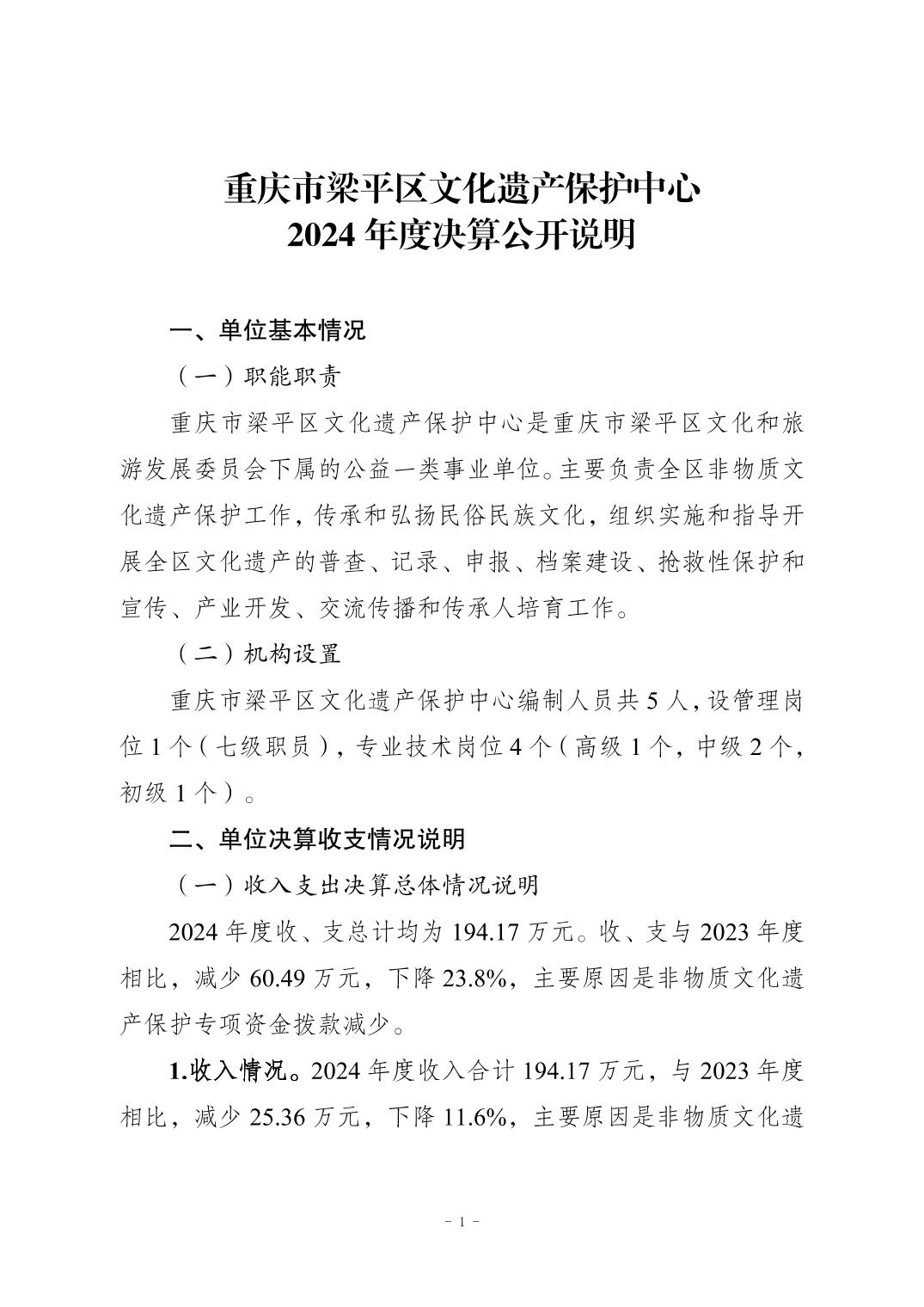 | 標(biāo)題 | 重慶市梁平區(qū)文化遺產(chǎn)保護(hù)中心2024年決算公開說(shuō)明 |