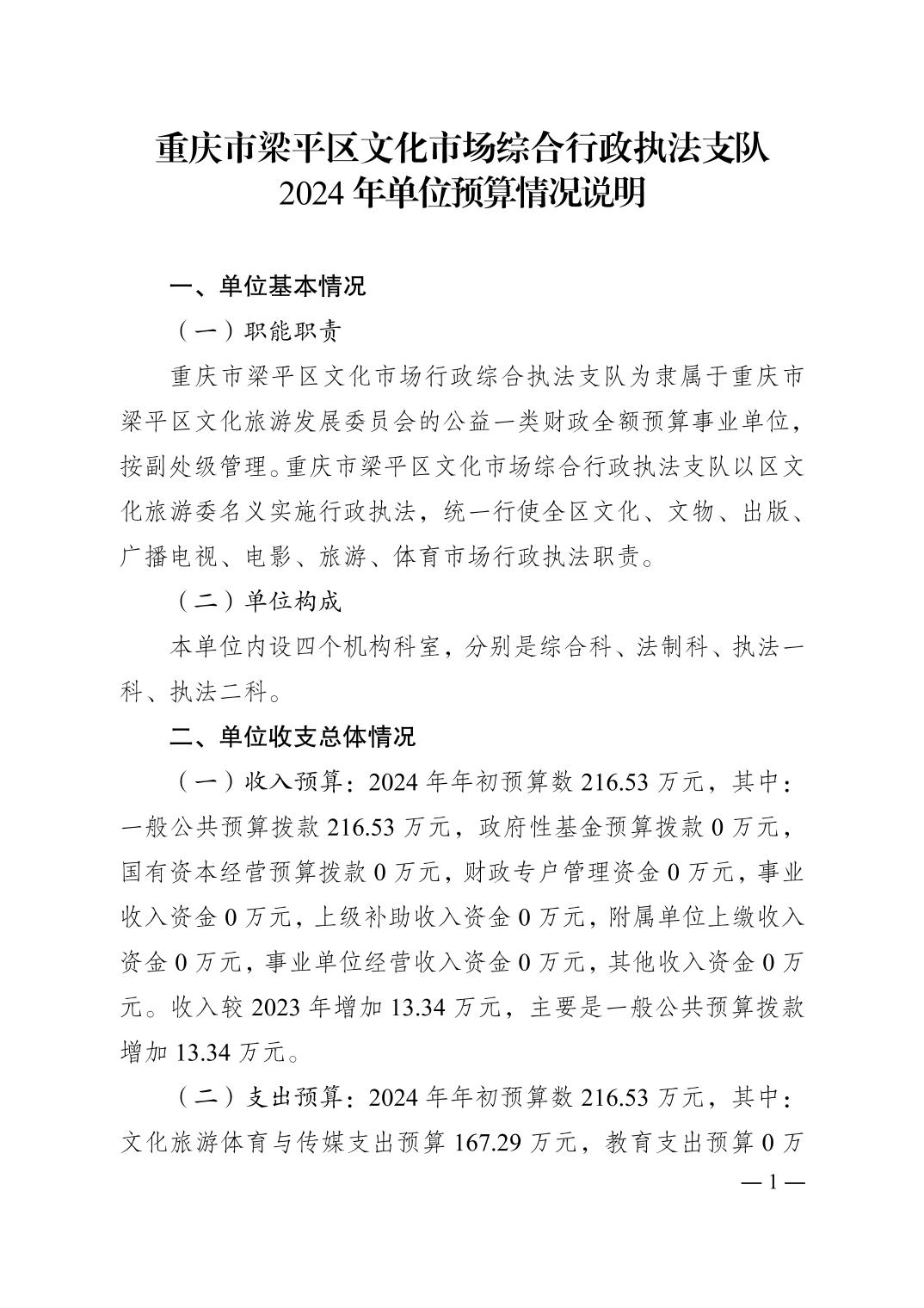 | 標題 | 重慶市梁平區文化市場綜合行政執法支隊2024年單位預算情況說明 |