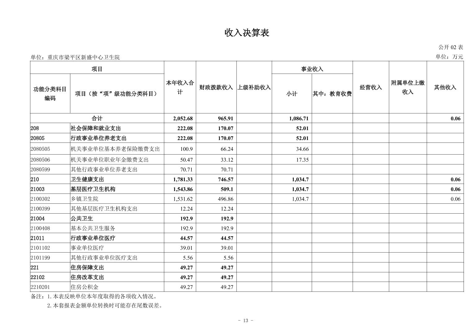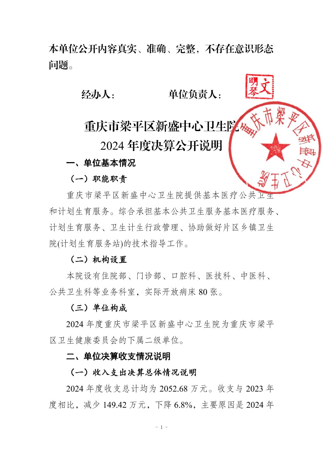 | 標題 | 重慶市梁平區(qū)新盛中心衛(wèi)生院2024年度決算公開說明 |