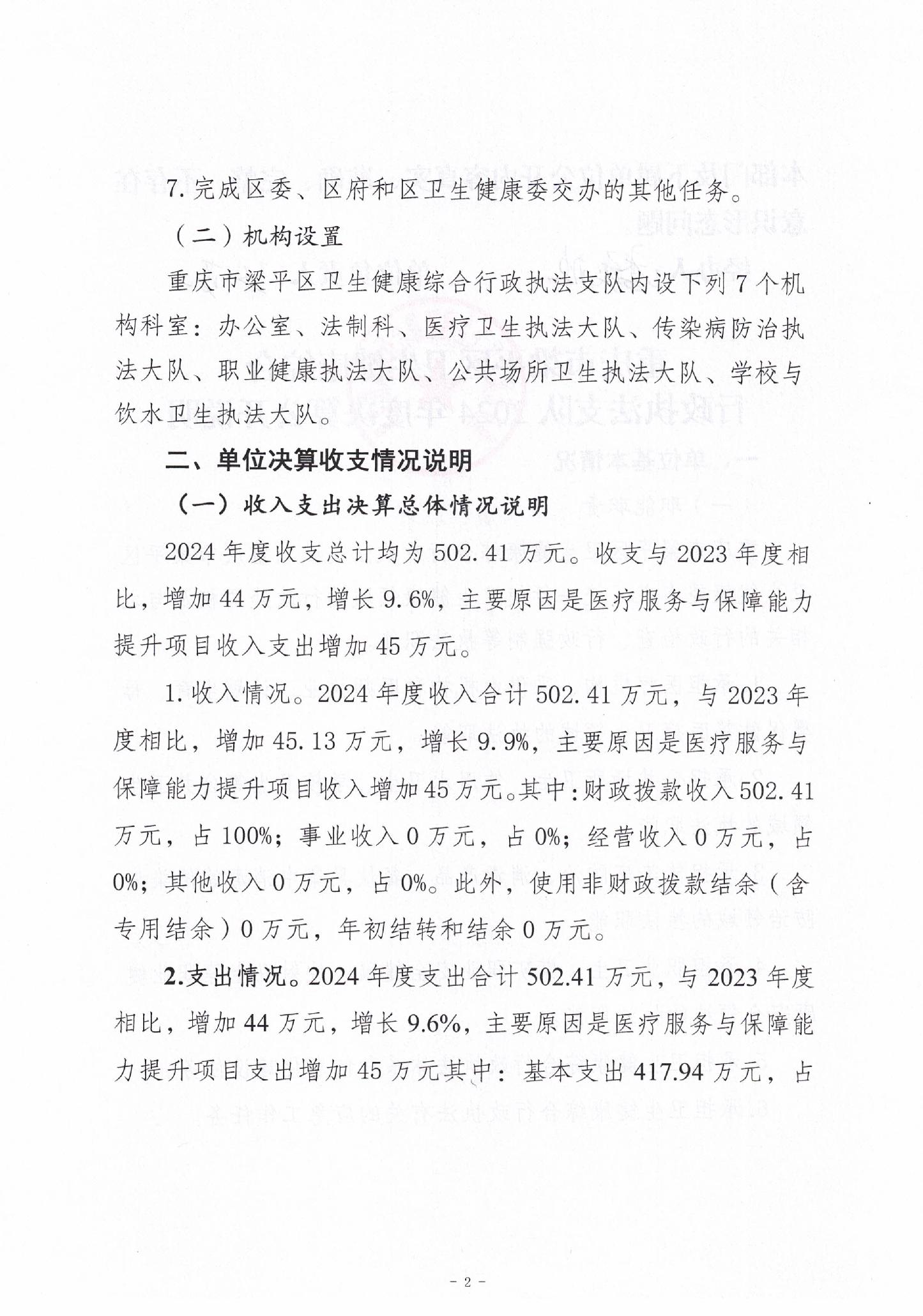 | 標題 | 重慶市梁平區衛生健康綜合行政執法支隊2024年度決算公開說明 |