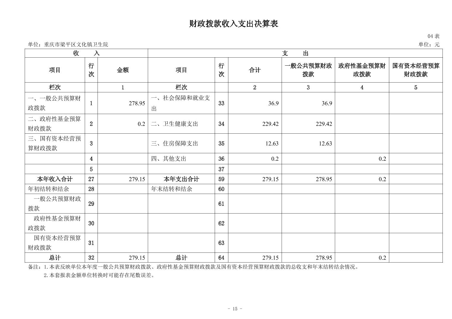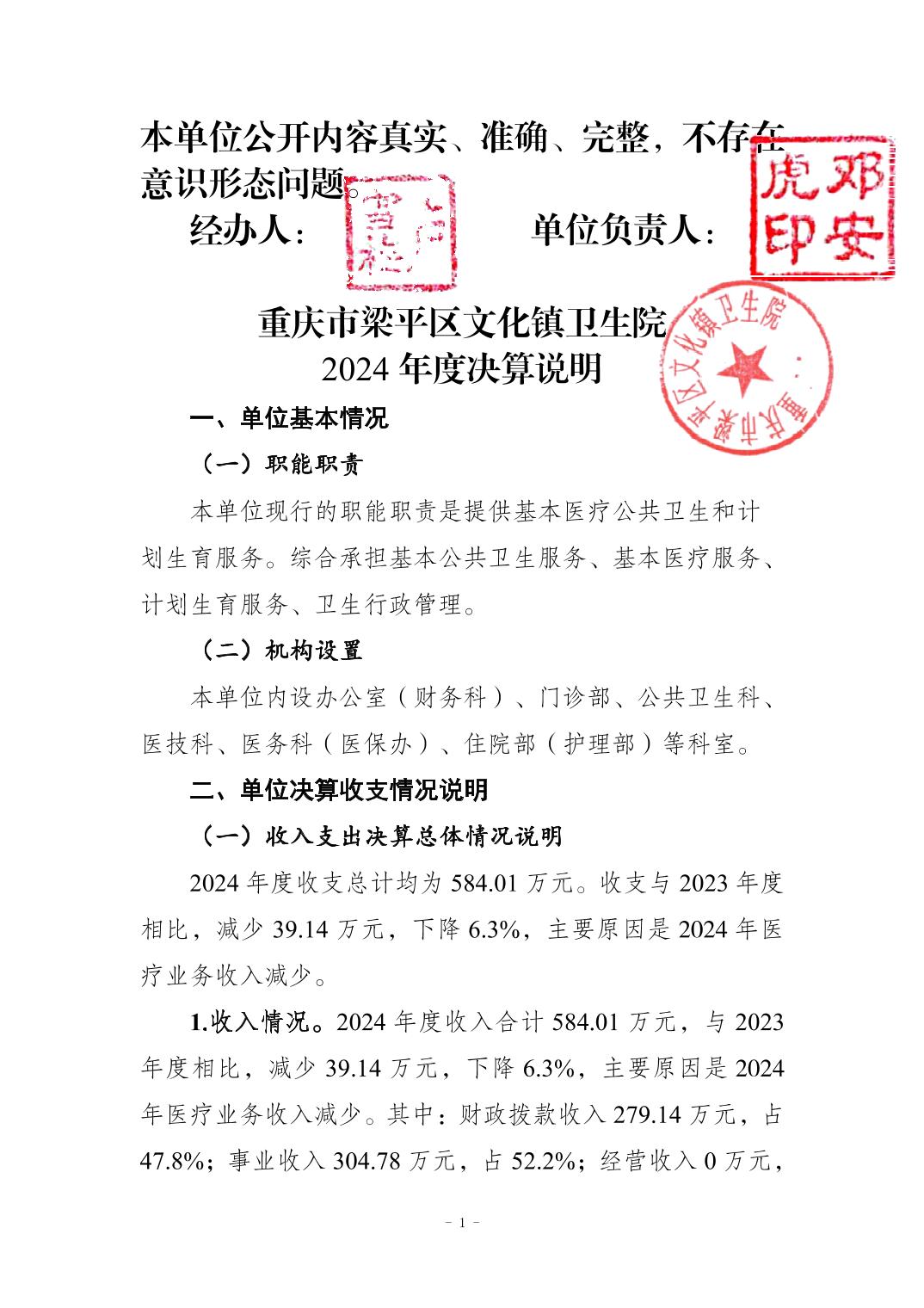 | 標題 | 重慶市梁平區文化鎮衛生院2024年度決算公開說明 |
