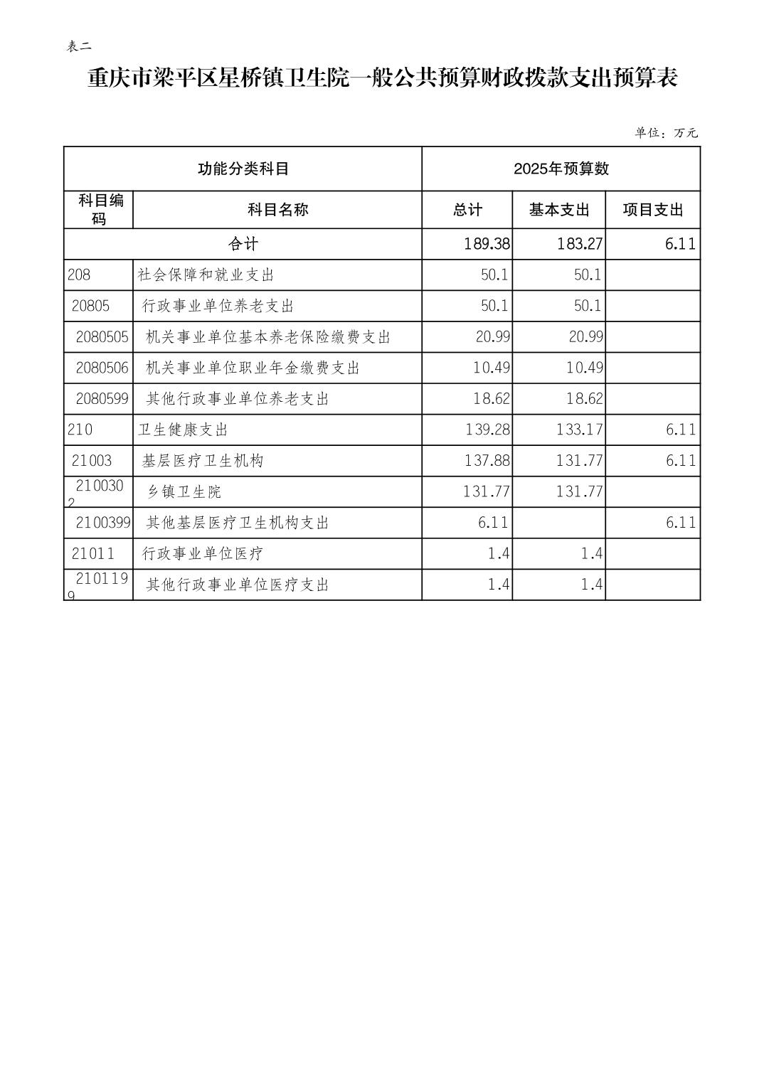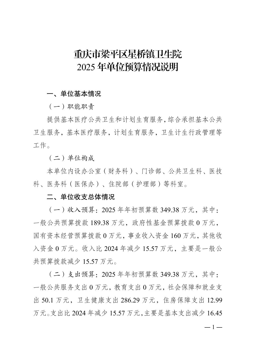 | 標題 | 星橋鎮衛生院2025年單位預算情況說明 |
