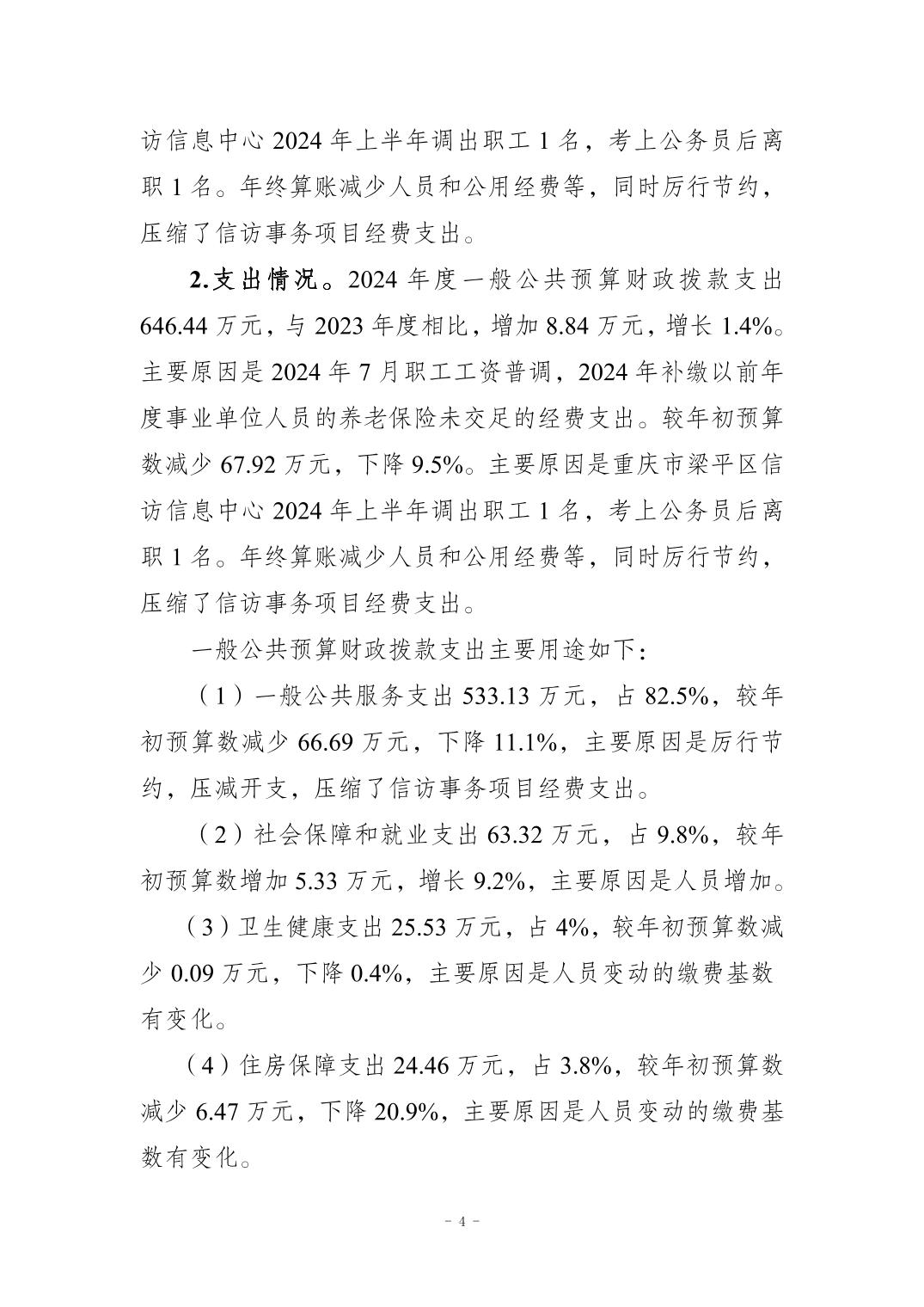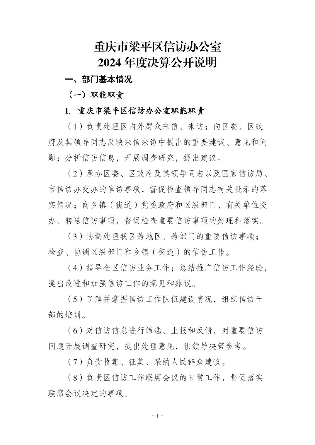 | 標題 | 重慶市梁平區信訪辦公室2024年度部門決算公開說明 |