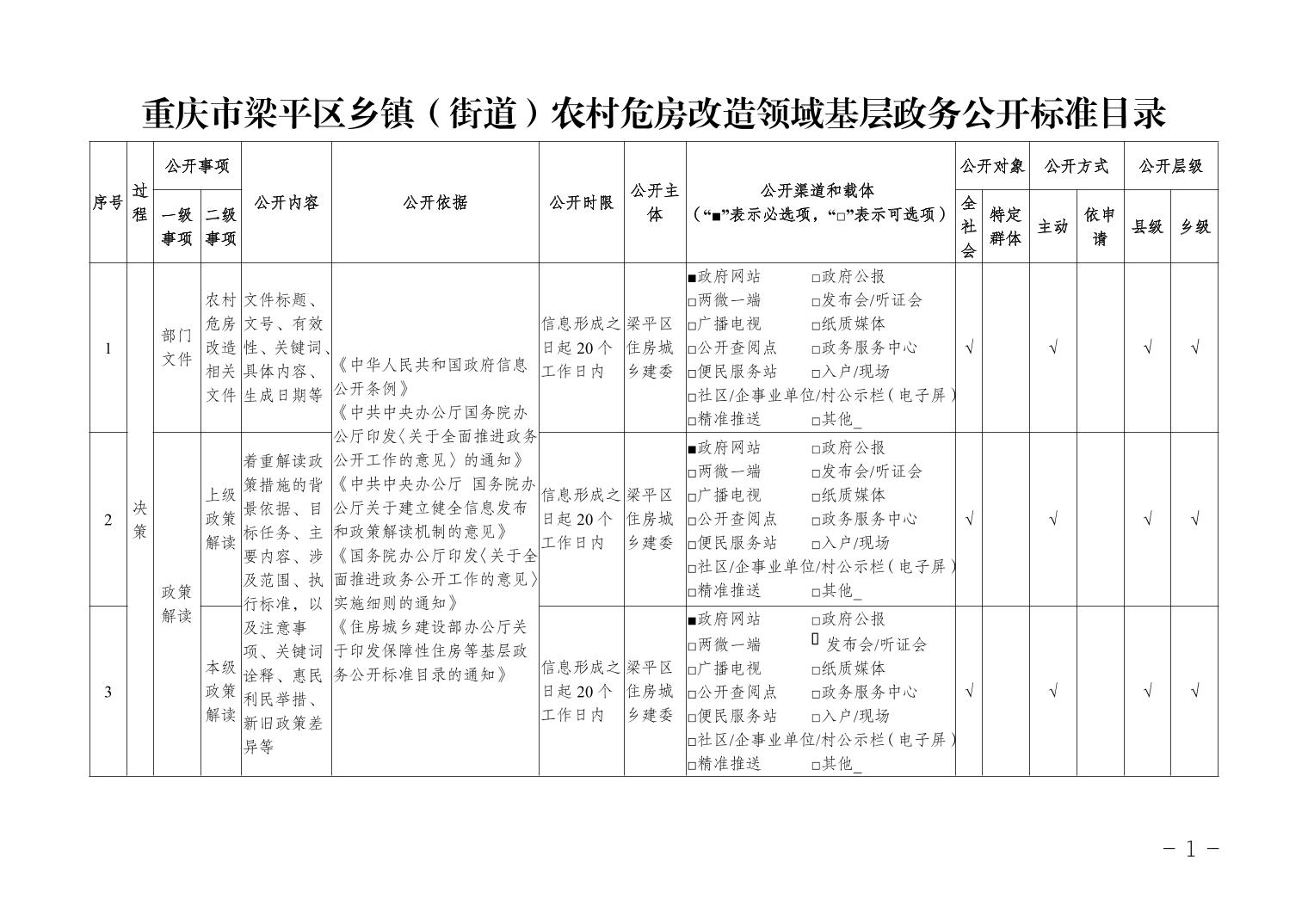 重慶市梁平區鄉鎮(街道)農村危房改造領域基層政務公開標準目錄