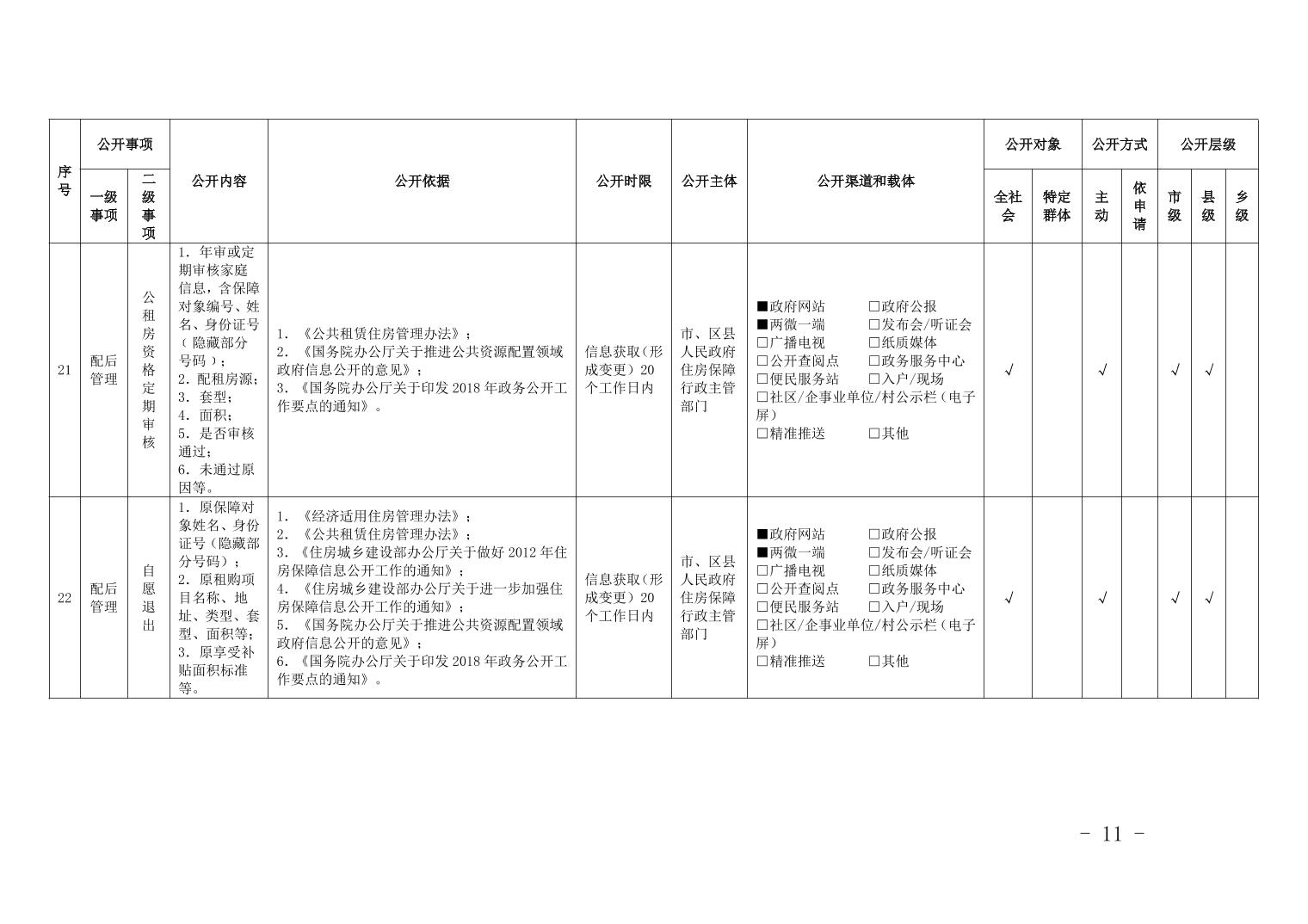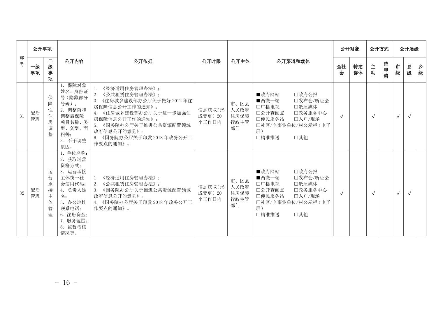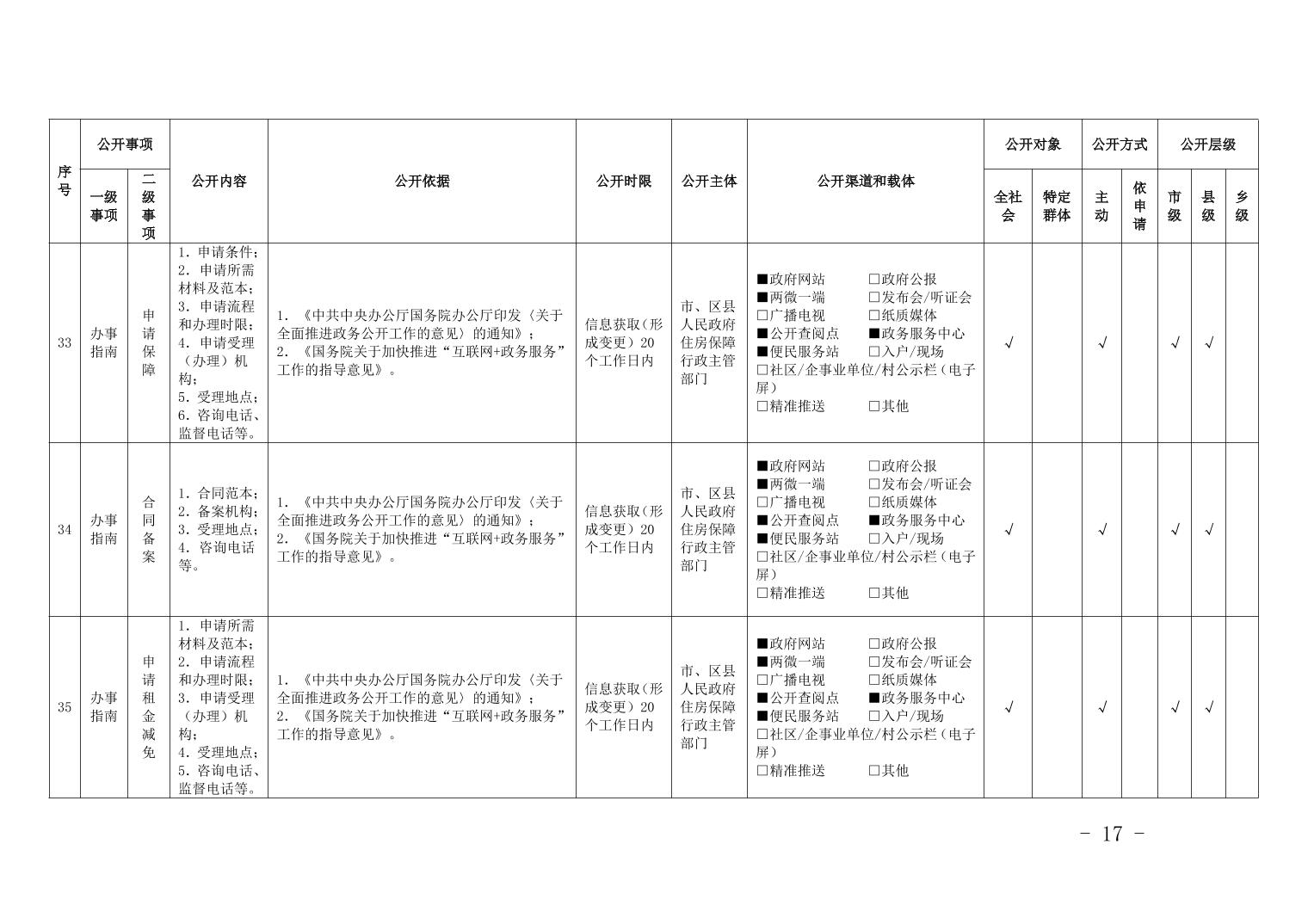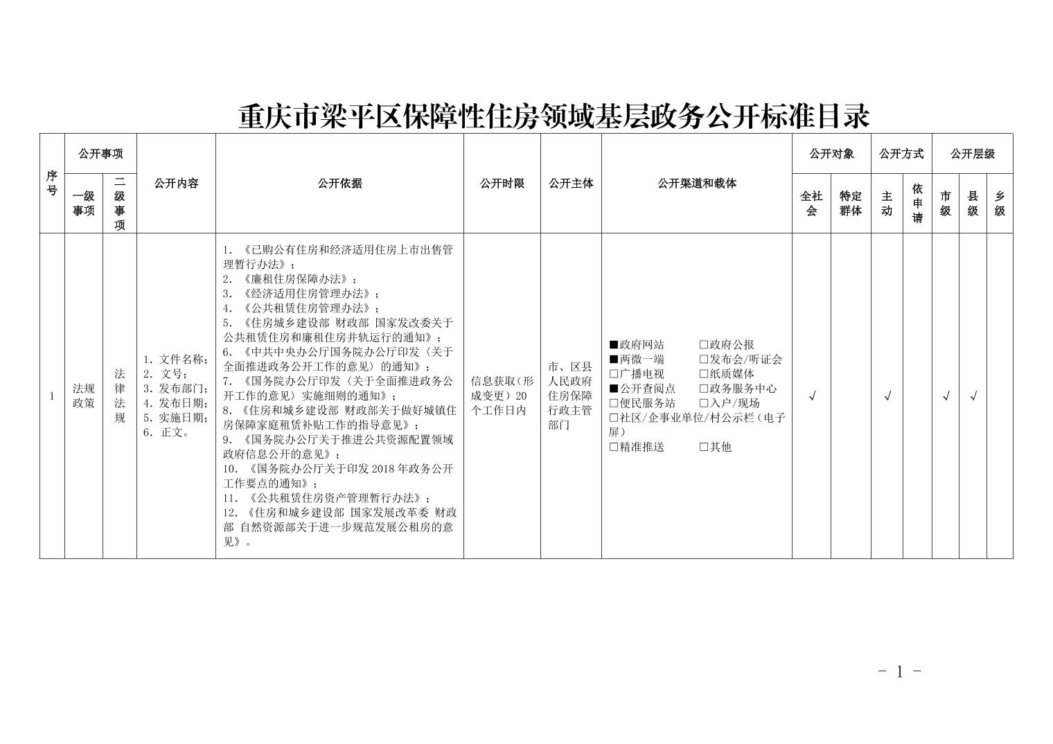 重慶市梁平區保障性住房領域基層政務公開標準目錄