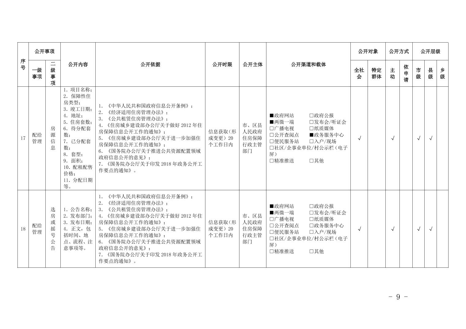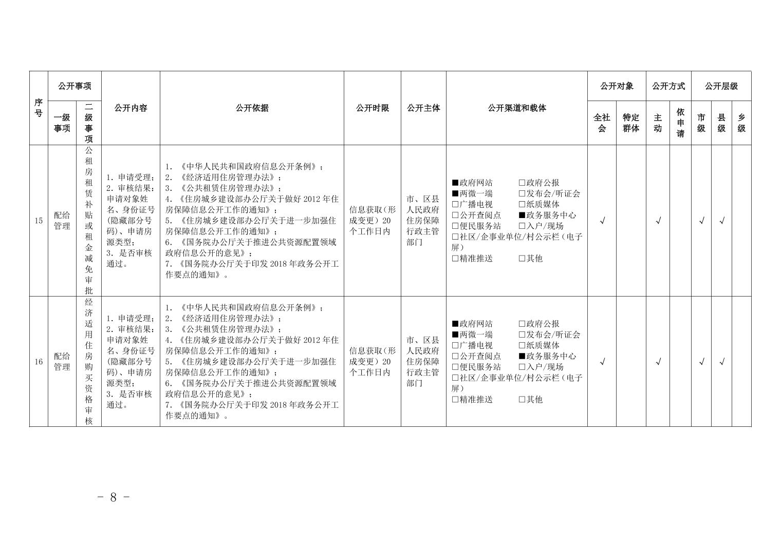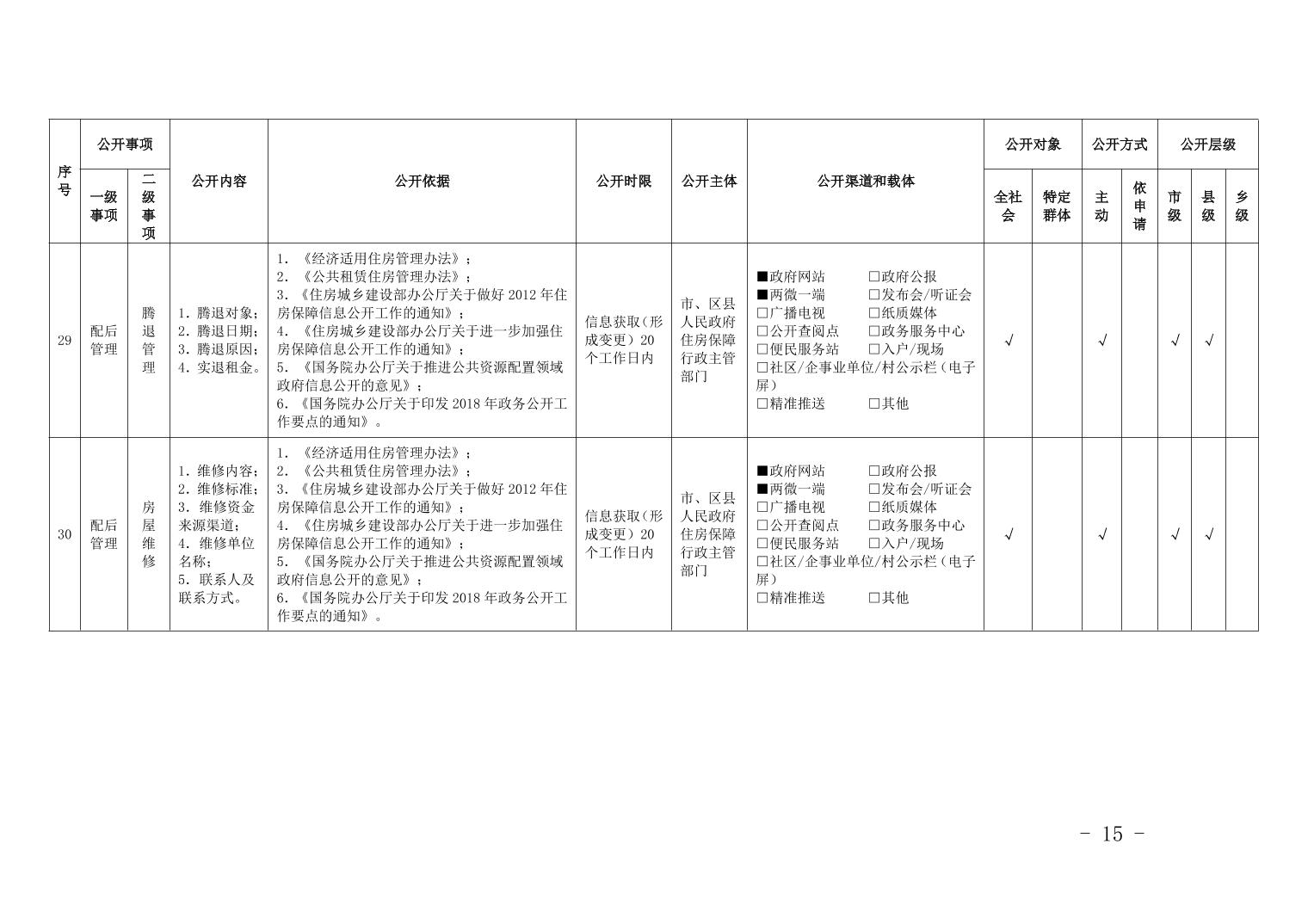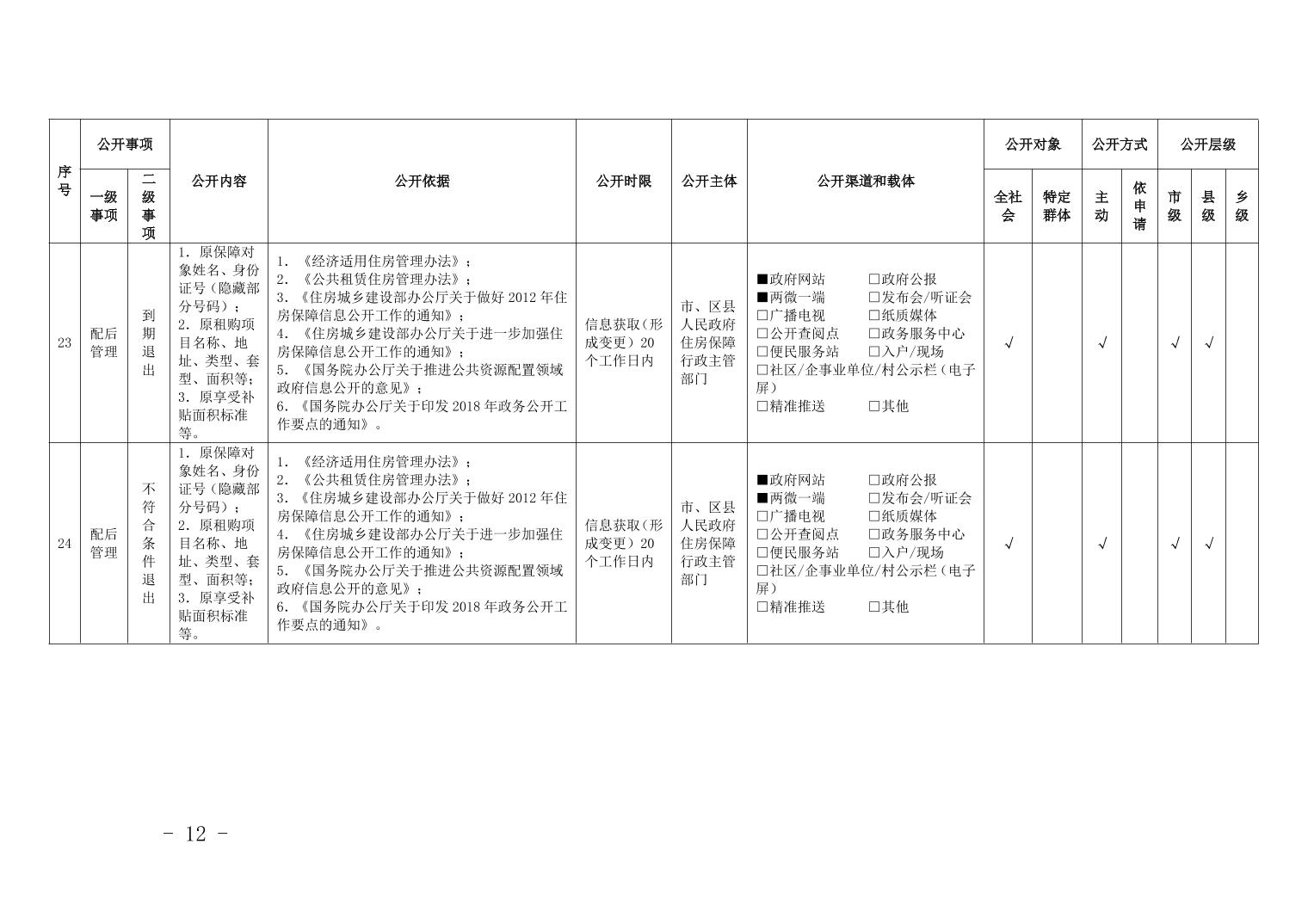 重慶市梁平區保障性住房領域基層政務公開標準目錄