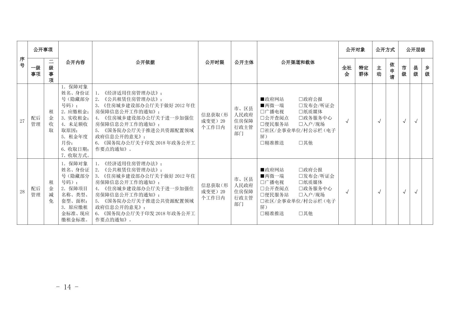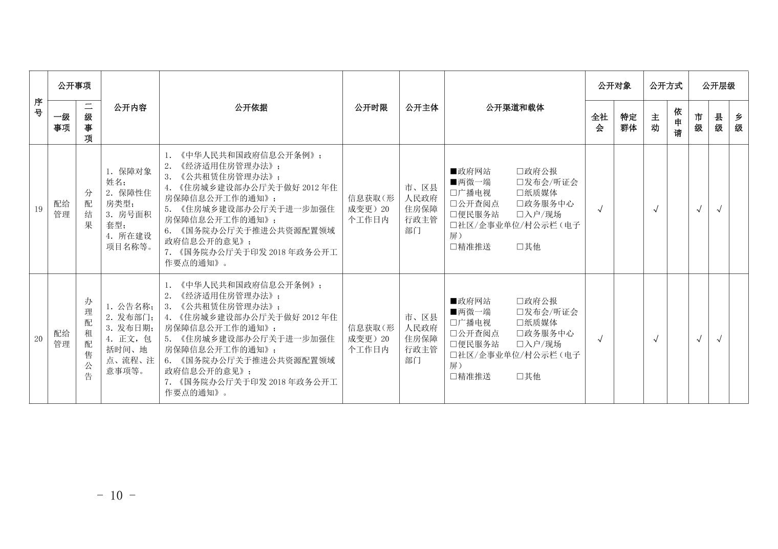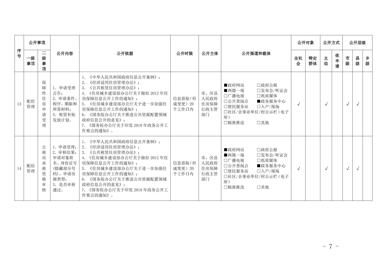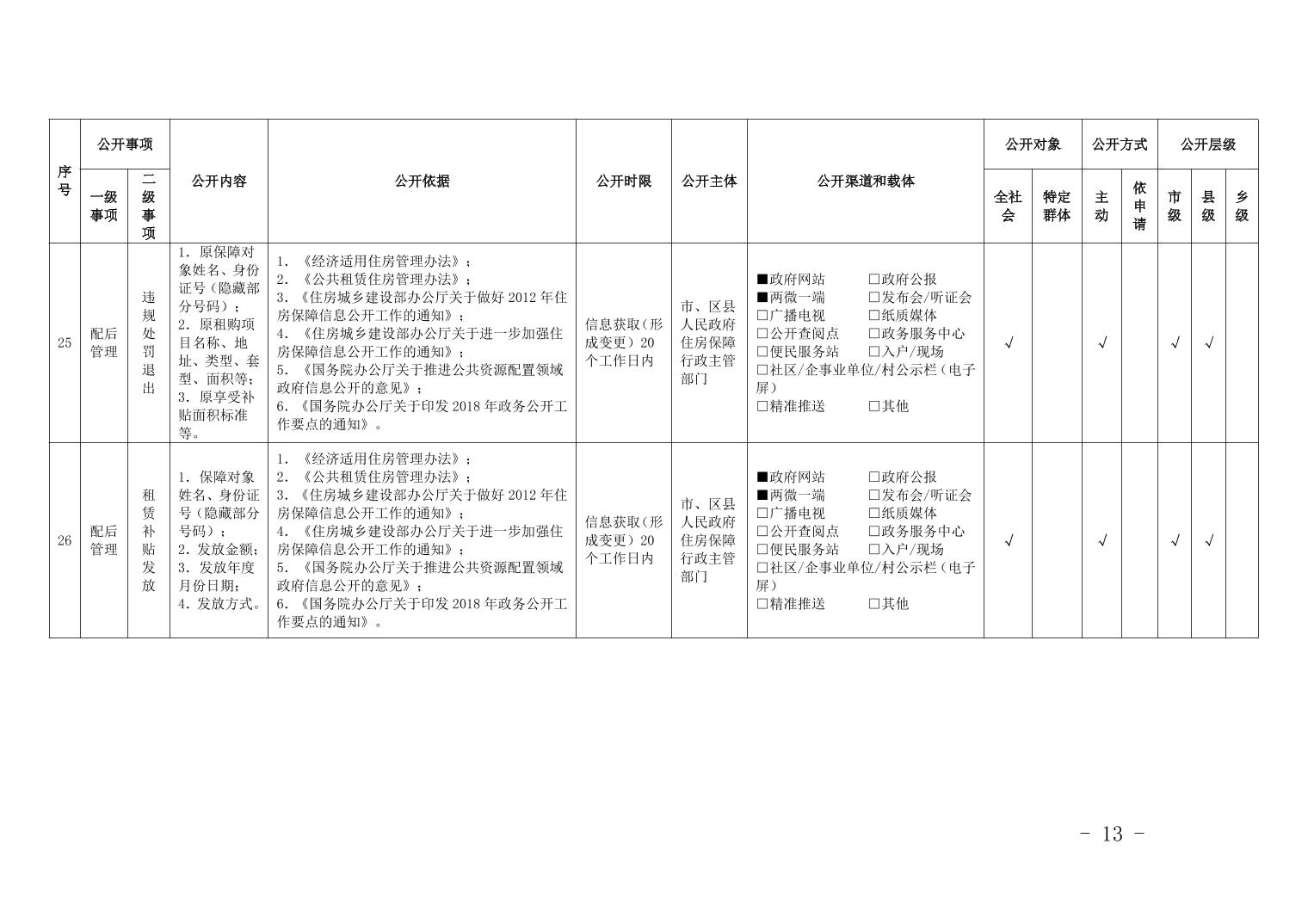 重慶市梁平區保障性住房領域基層政務公開標準目錄