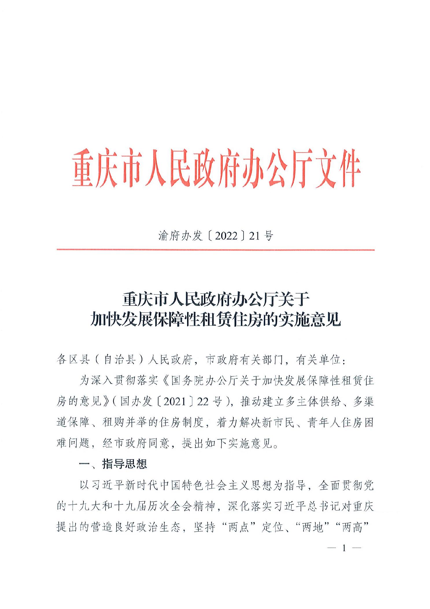 | 標題 | 重慶市人民政府辦公廳關于加快發展保障性租賃住房的實施意見 |