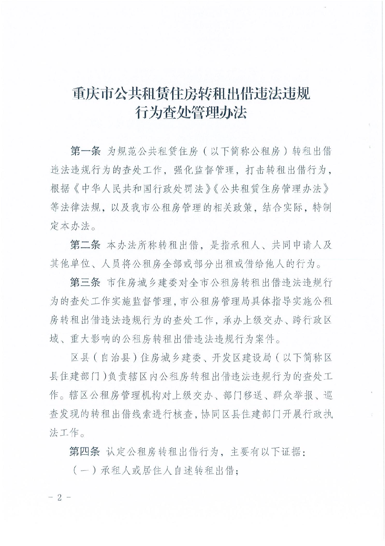 | 標題 | 重慶市公共租賃住房轉租出借違法違規行為查處管理辦法 |