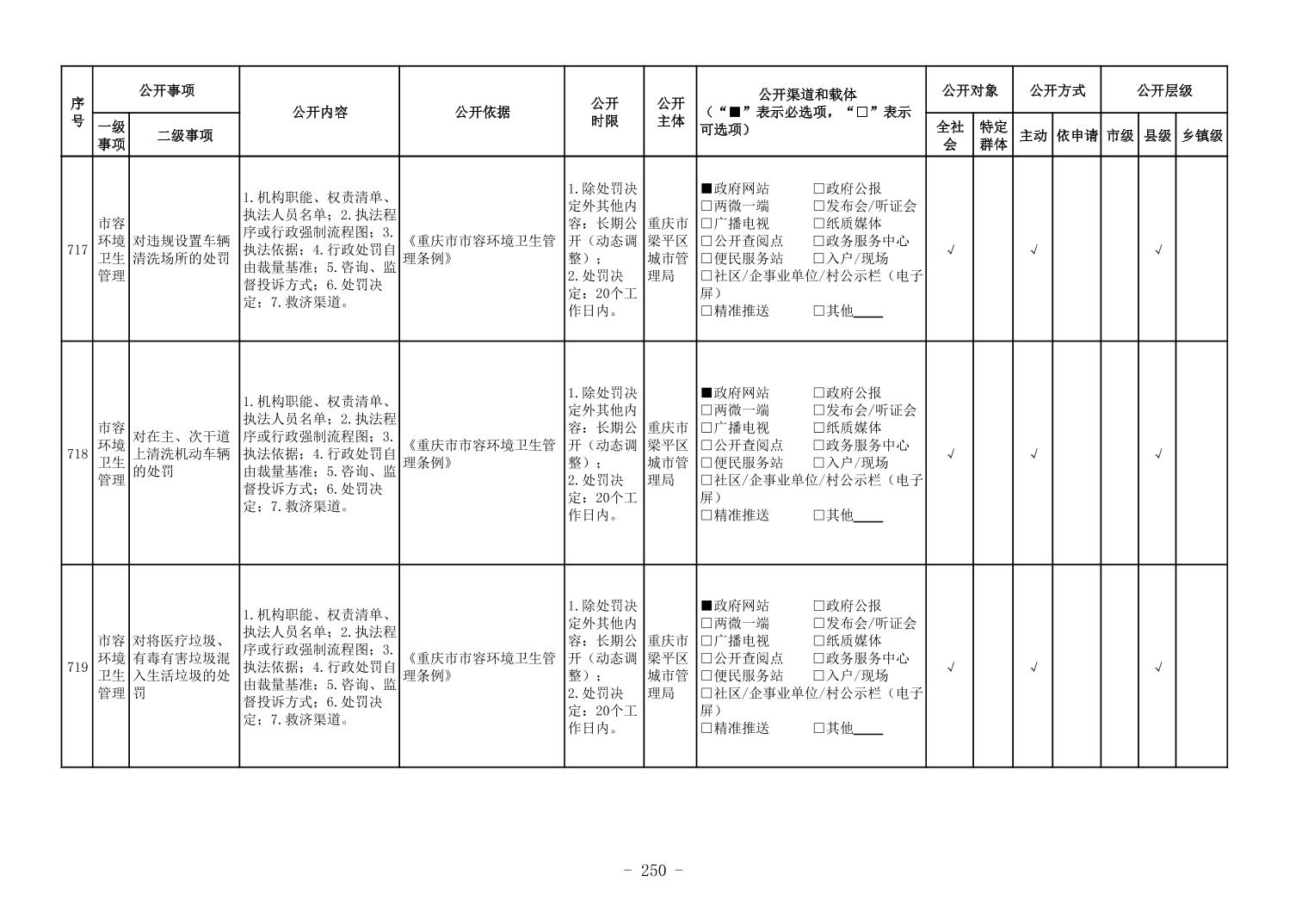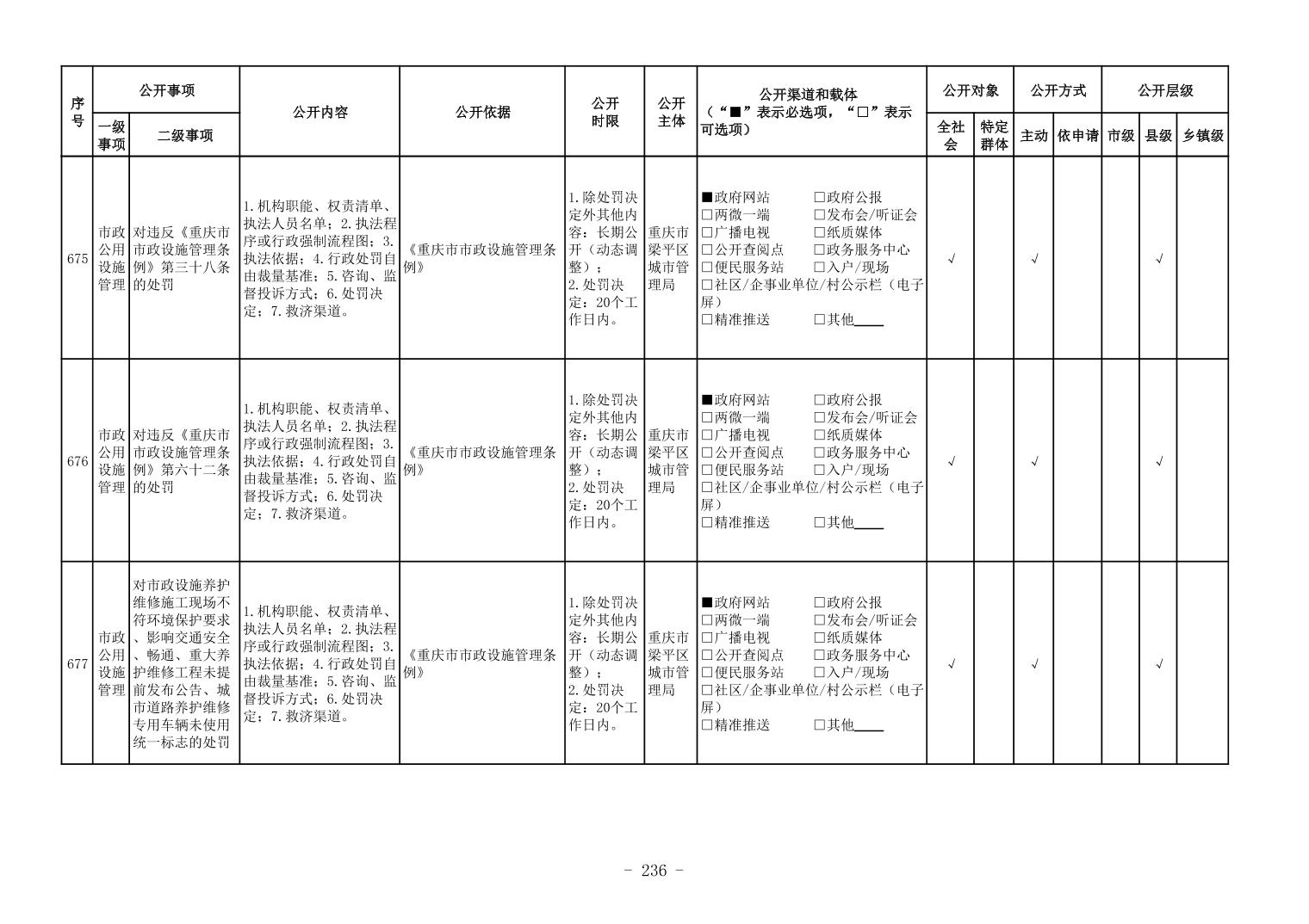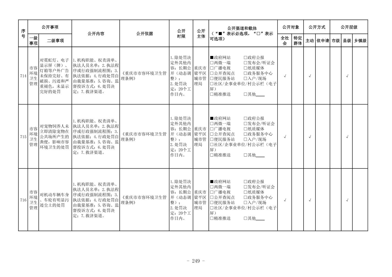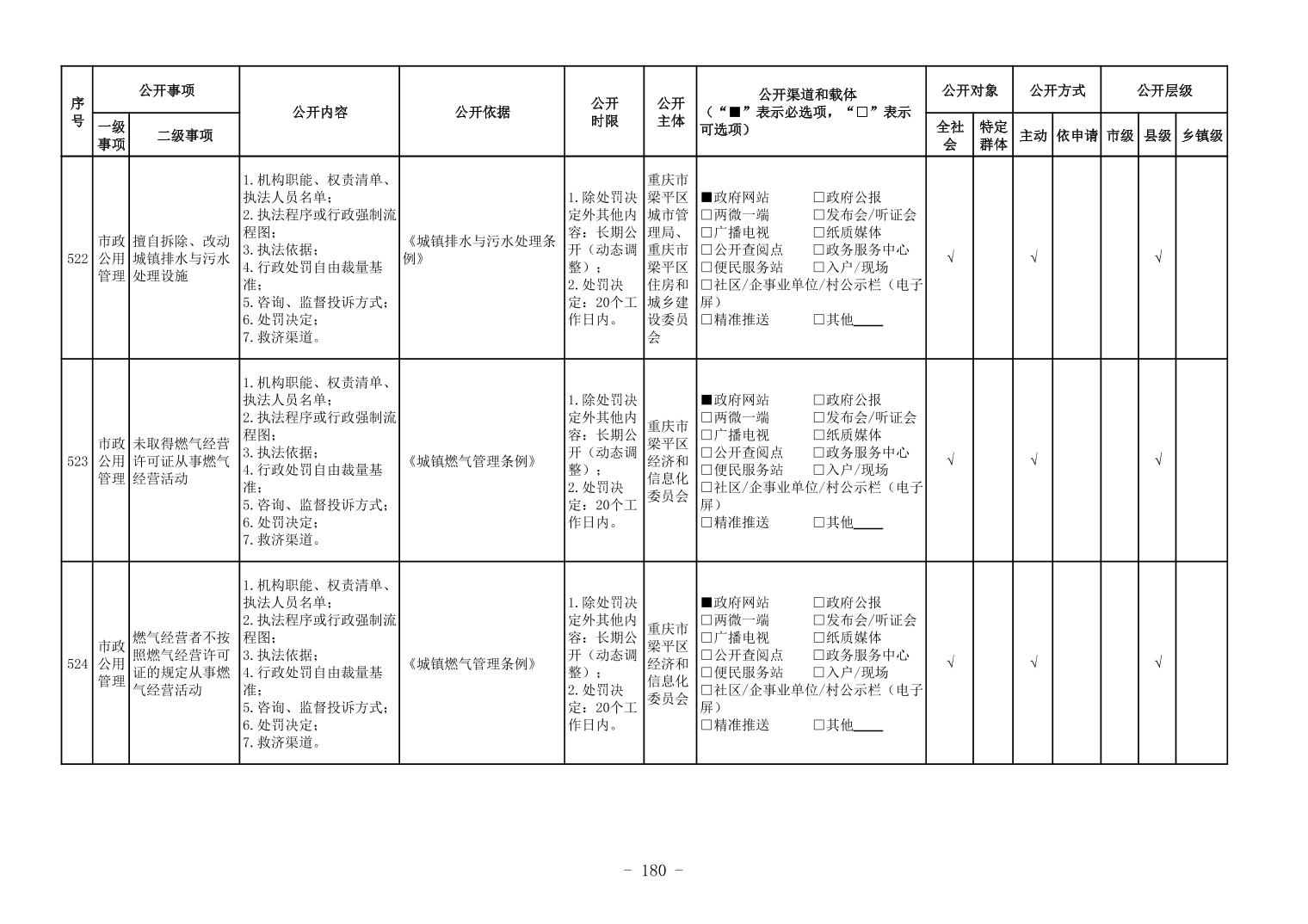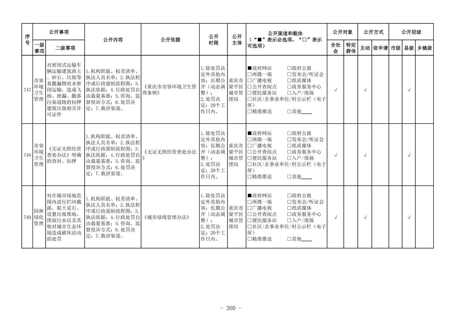 重慶市梁平區城市綜合執法領域基層政務公開標準目錄
