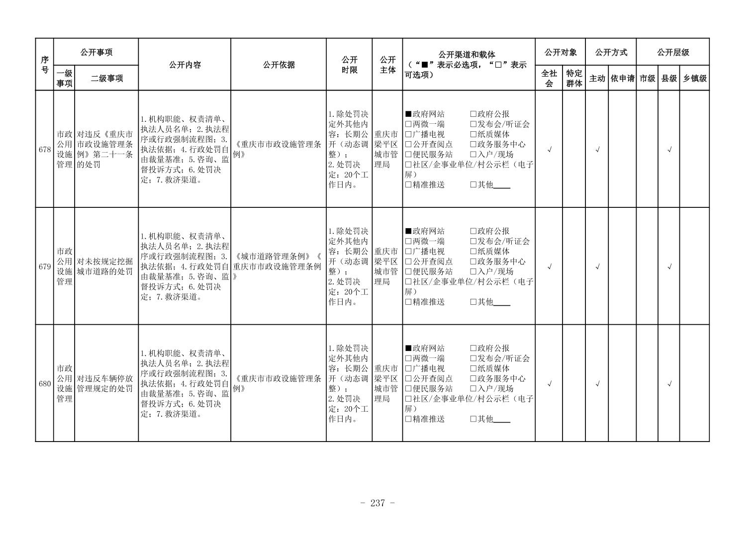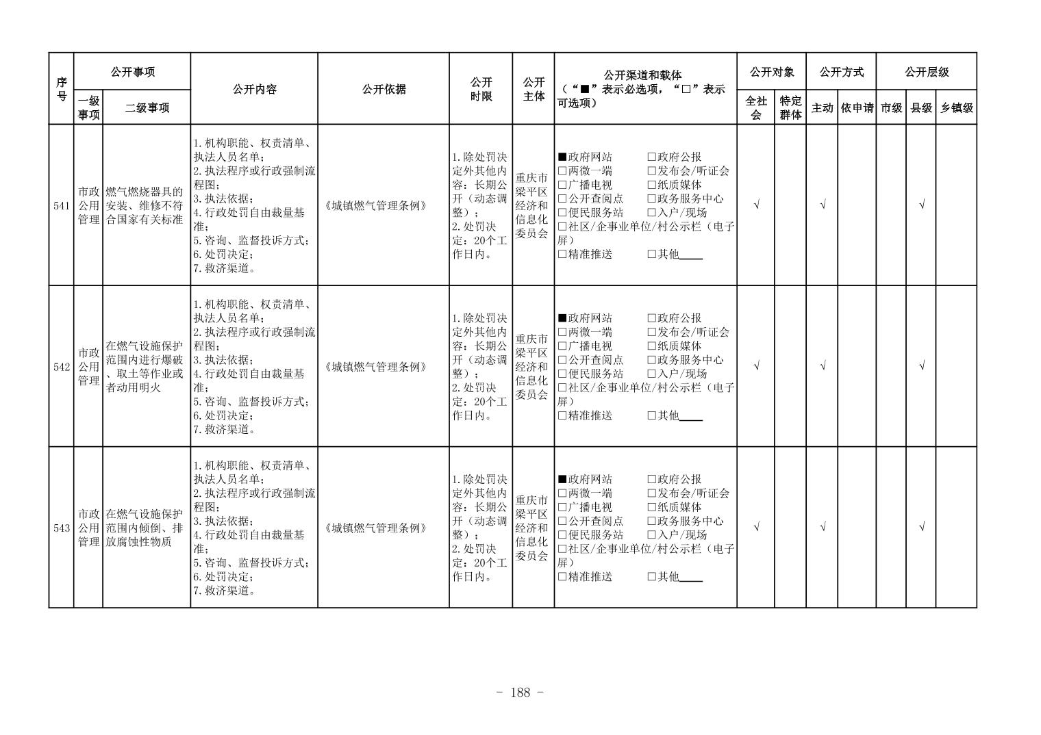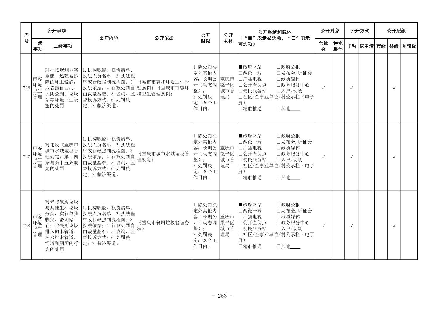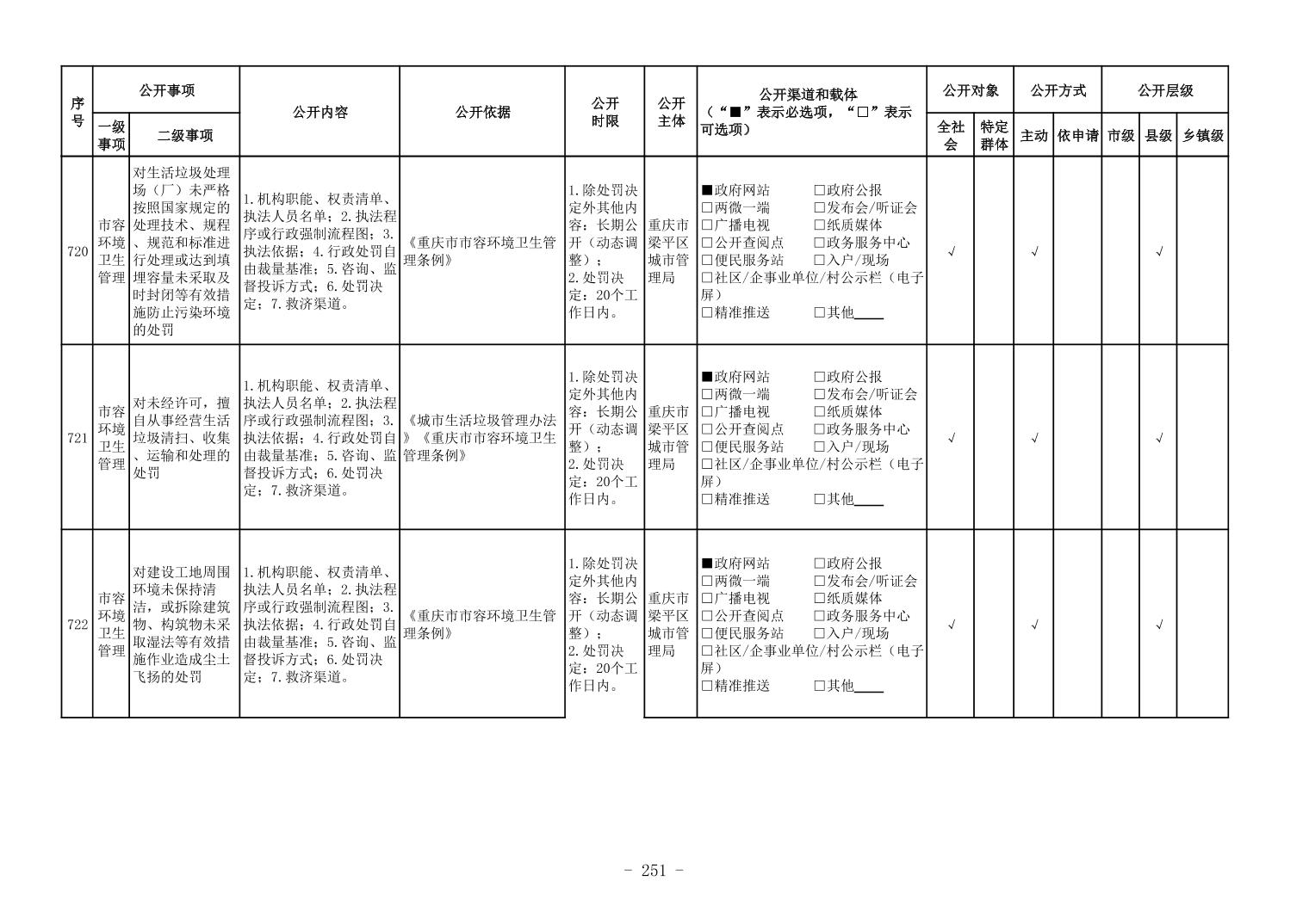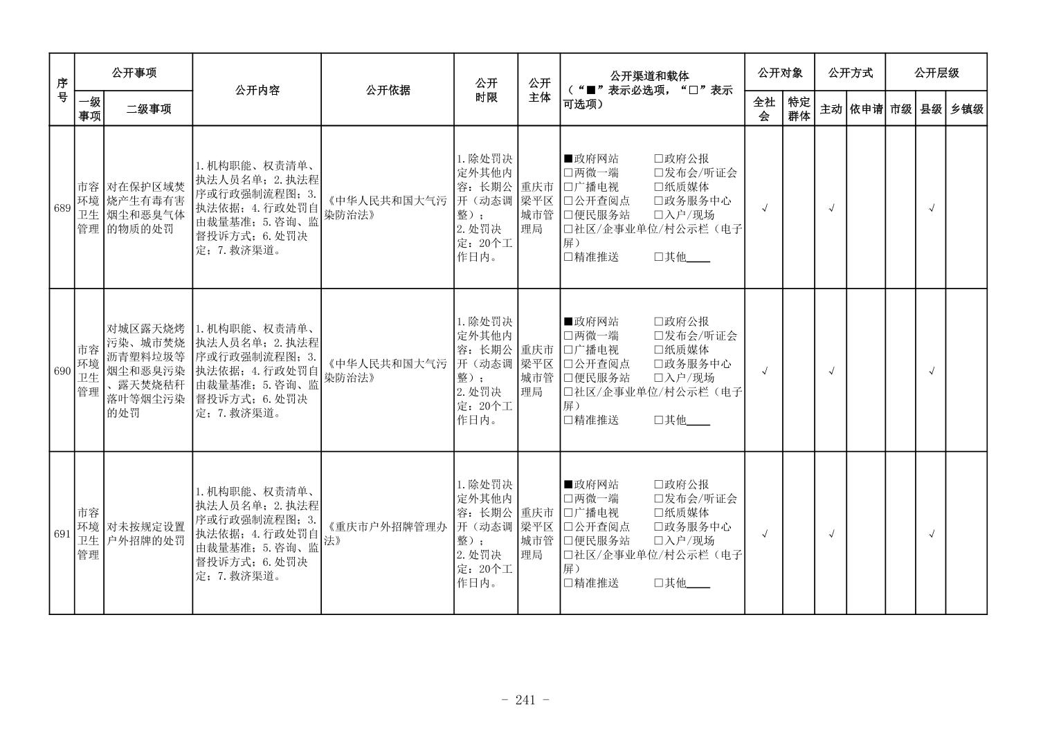 重慶市梁平區城市綜合執法領域基層政務公開標準目錄