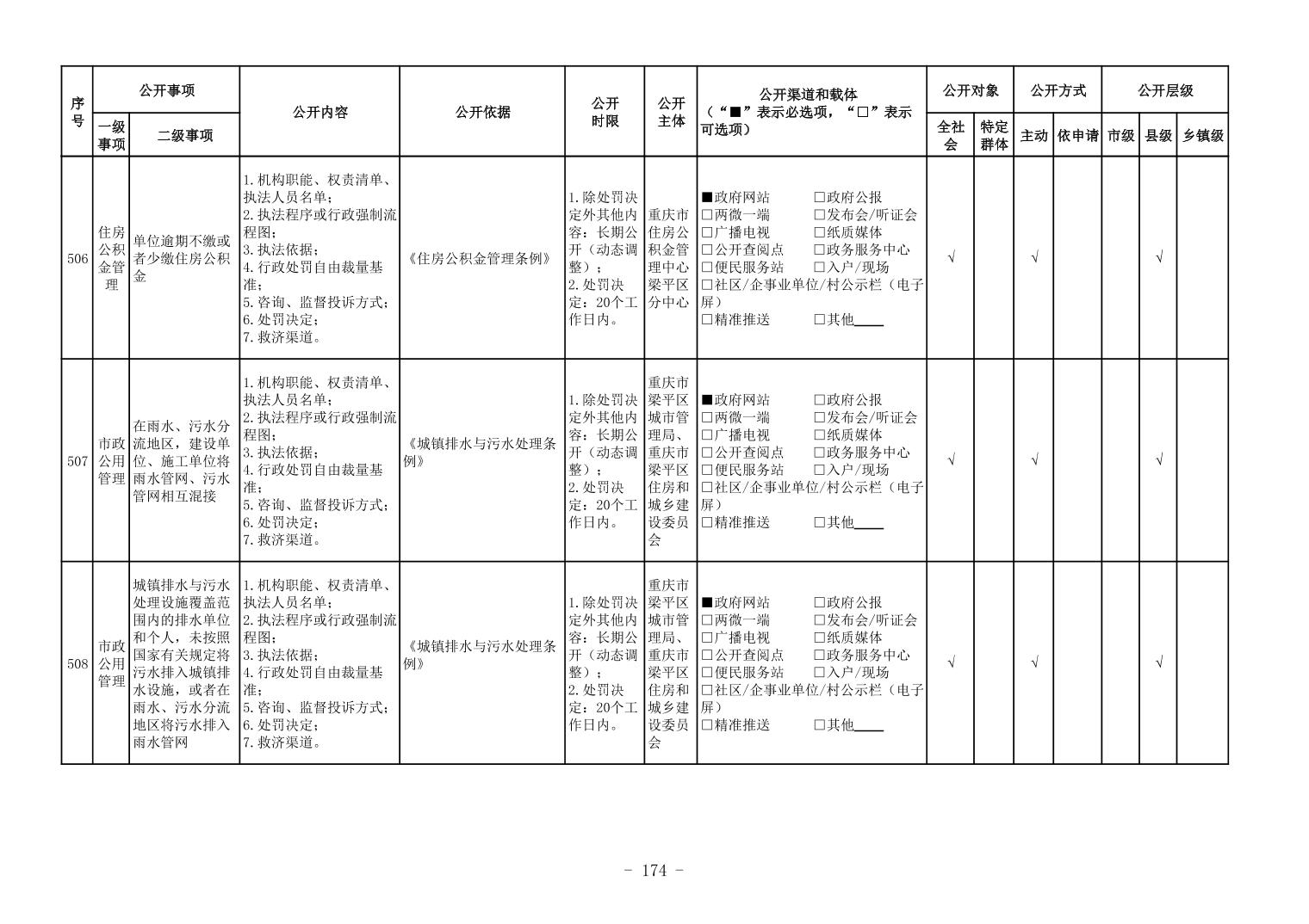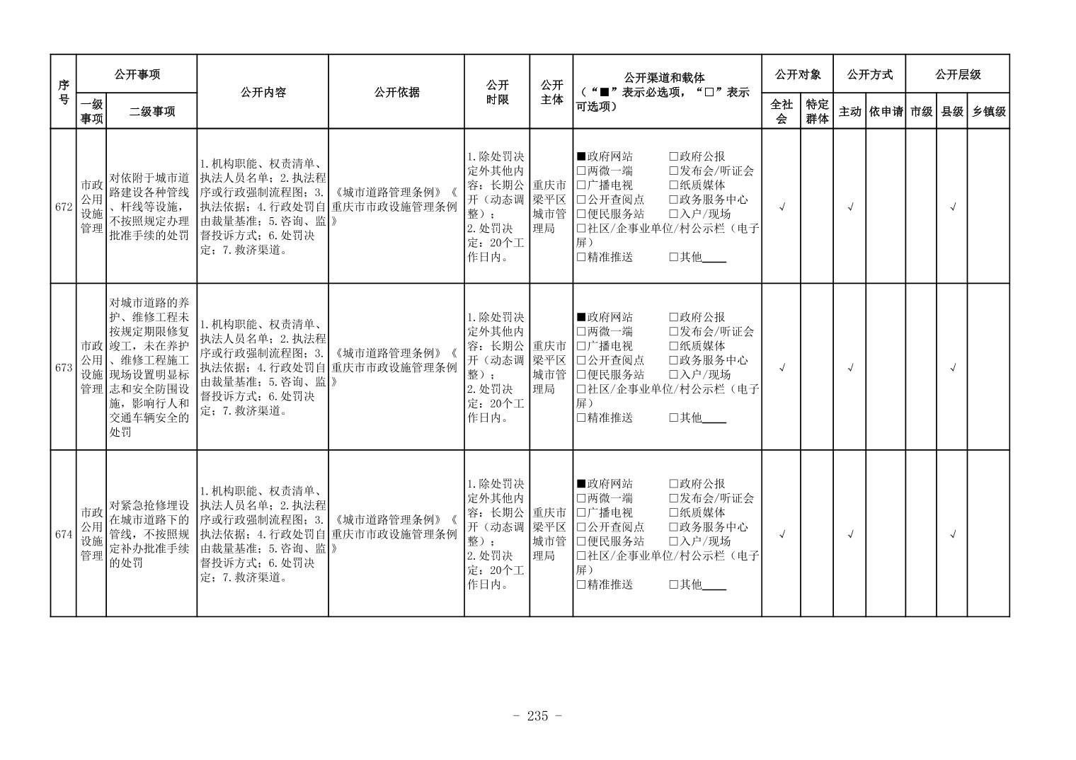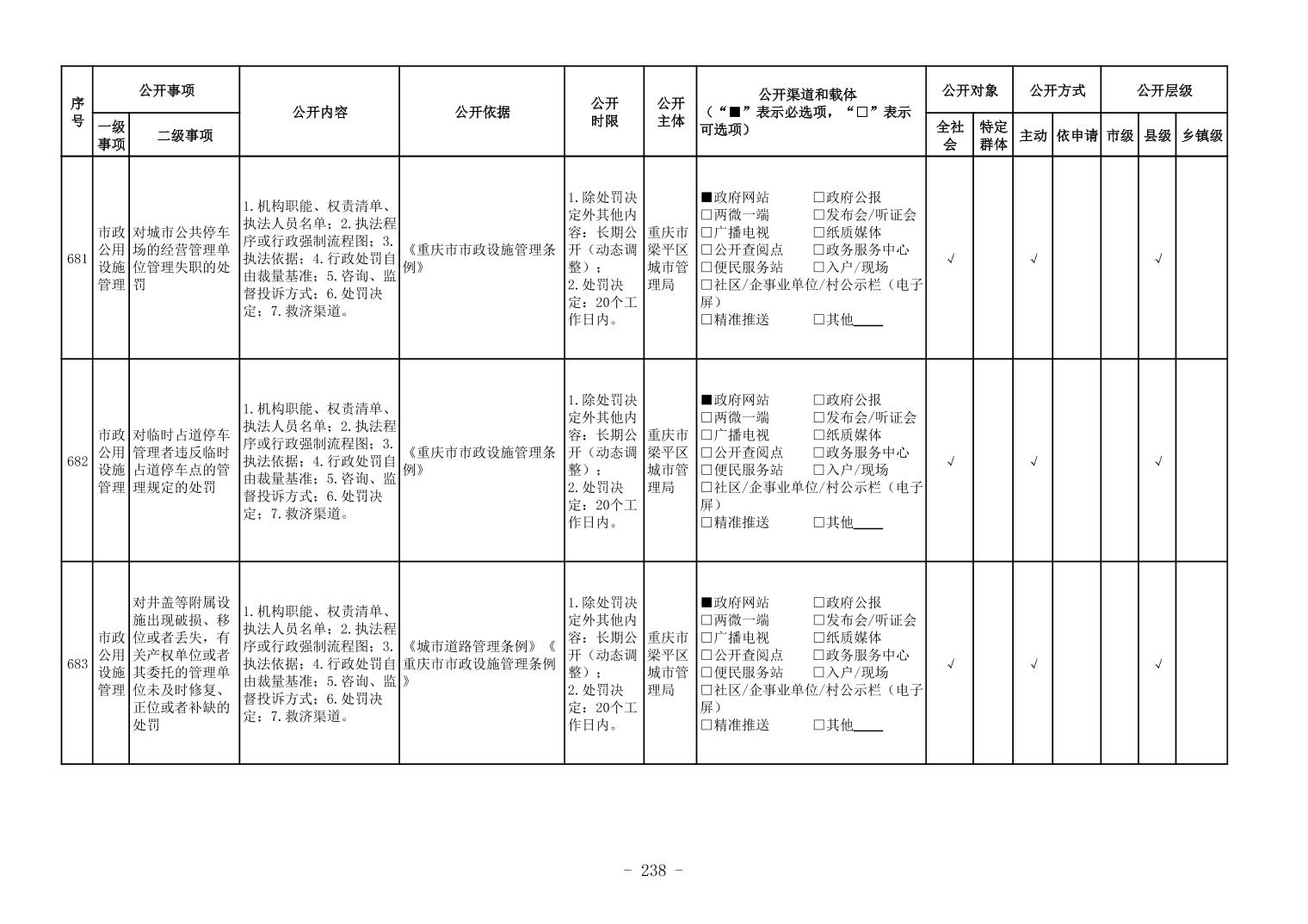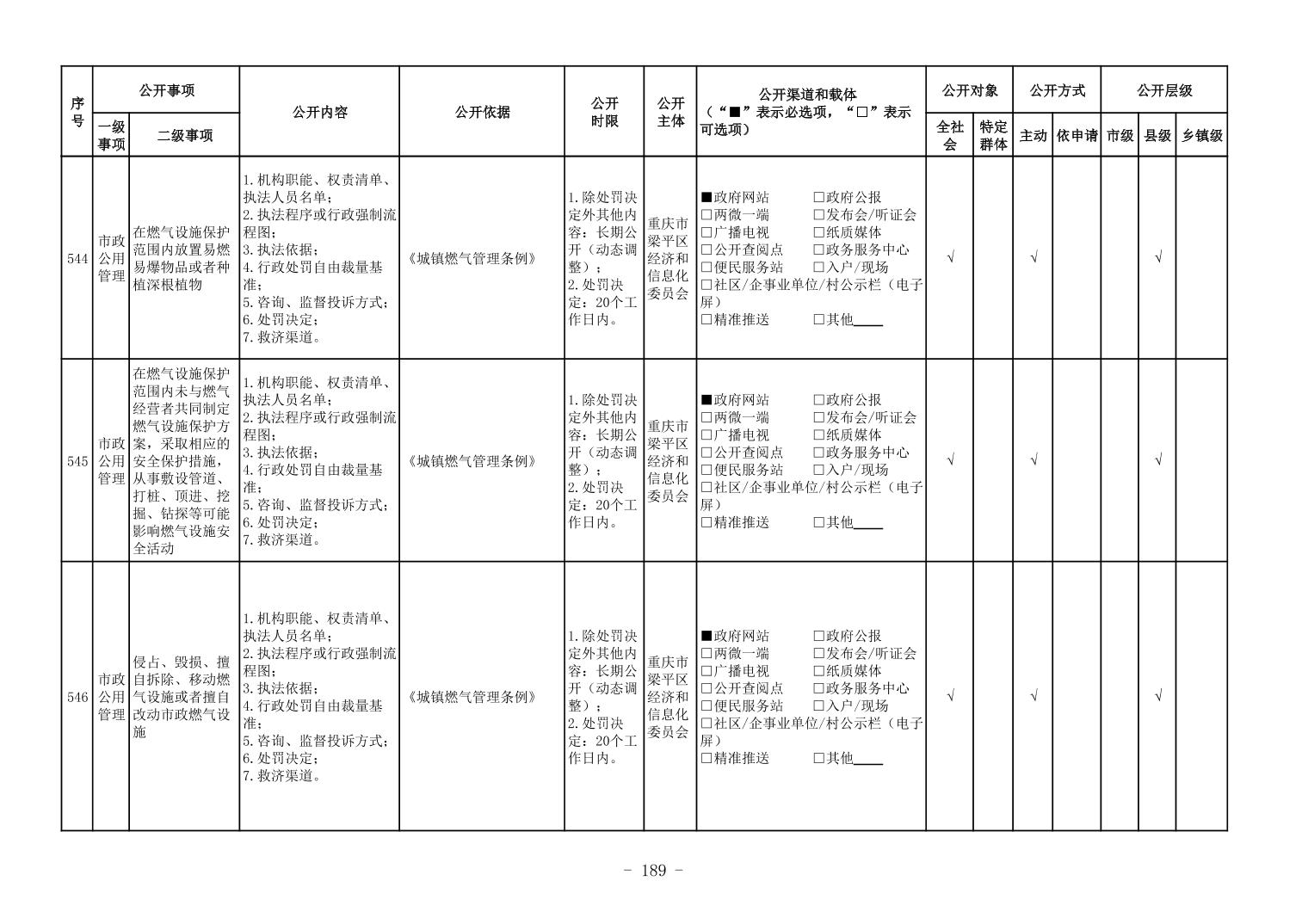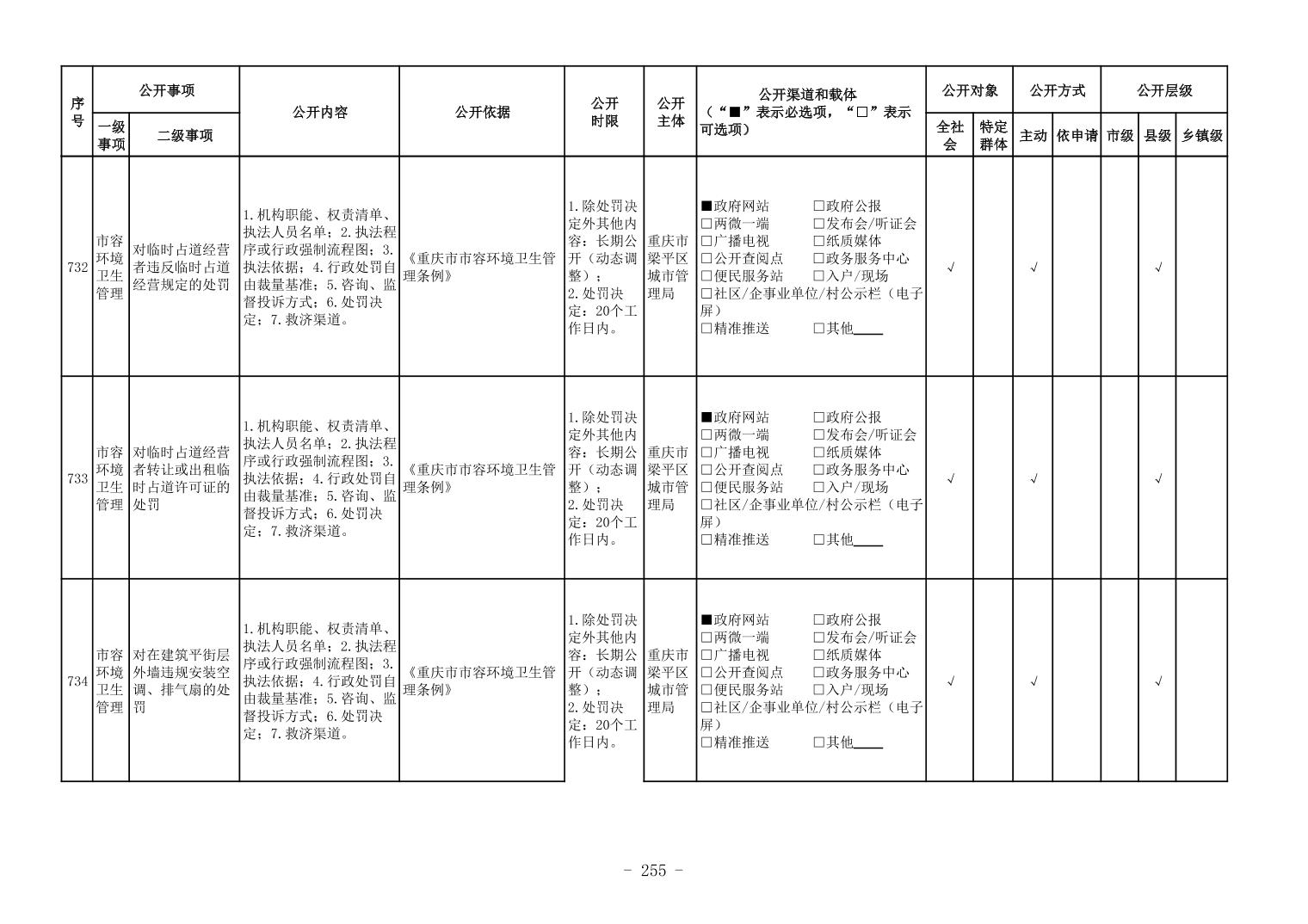 重慶市梁平區城市綜合執法領域基層政務公開標準目錄