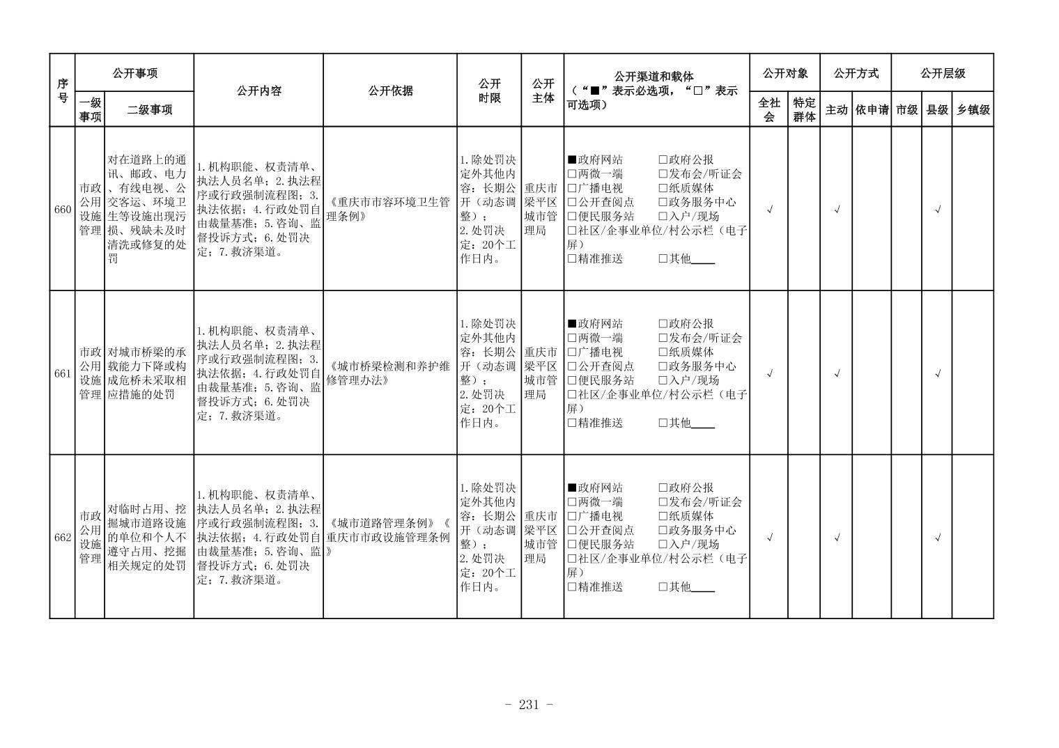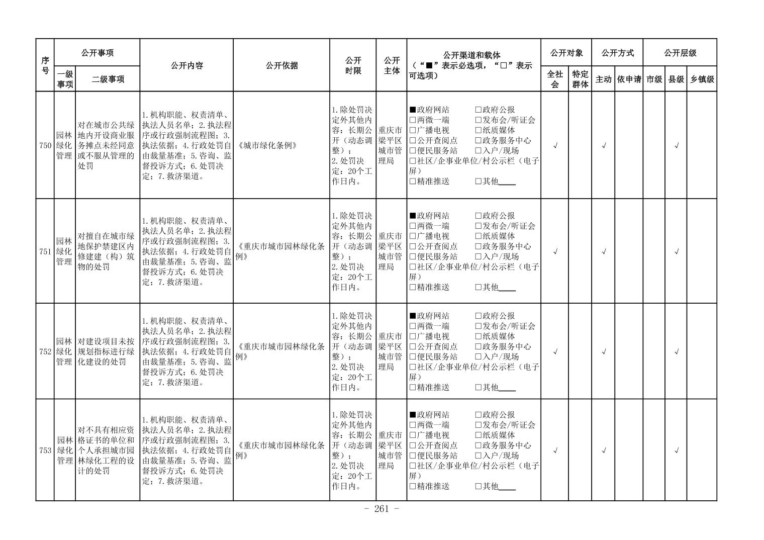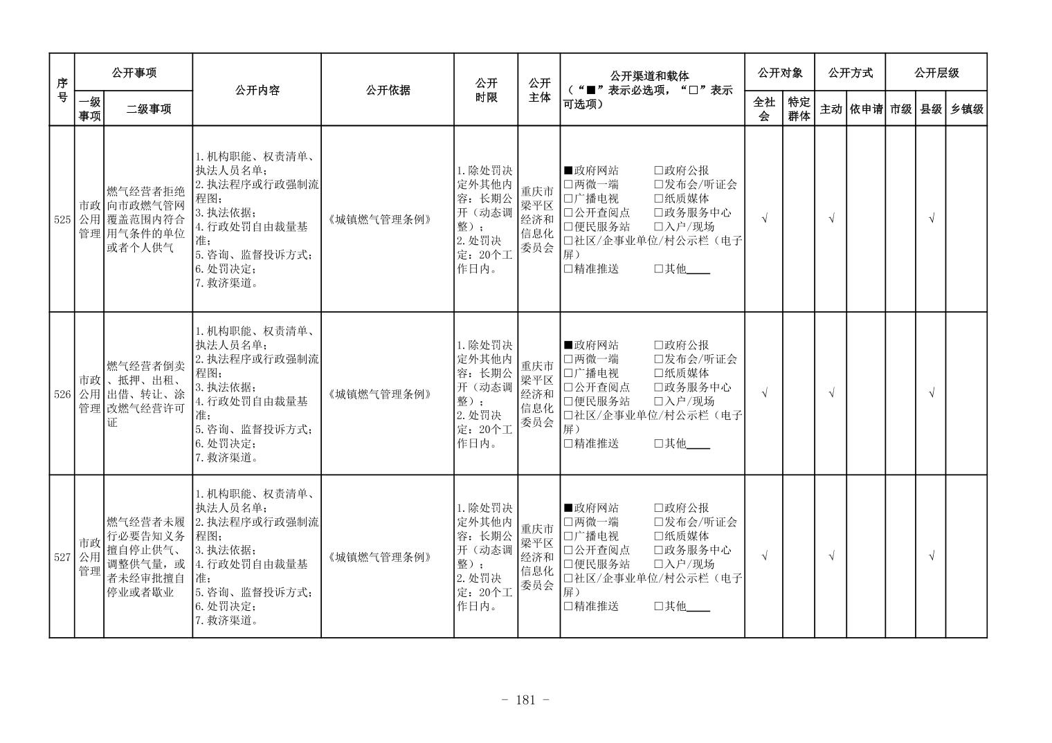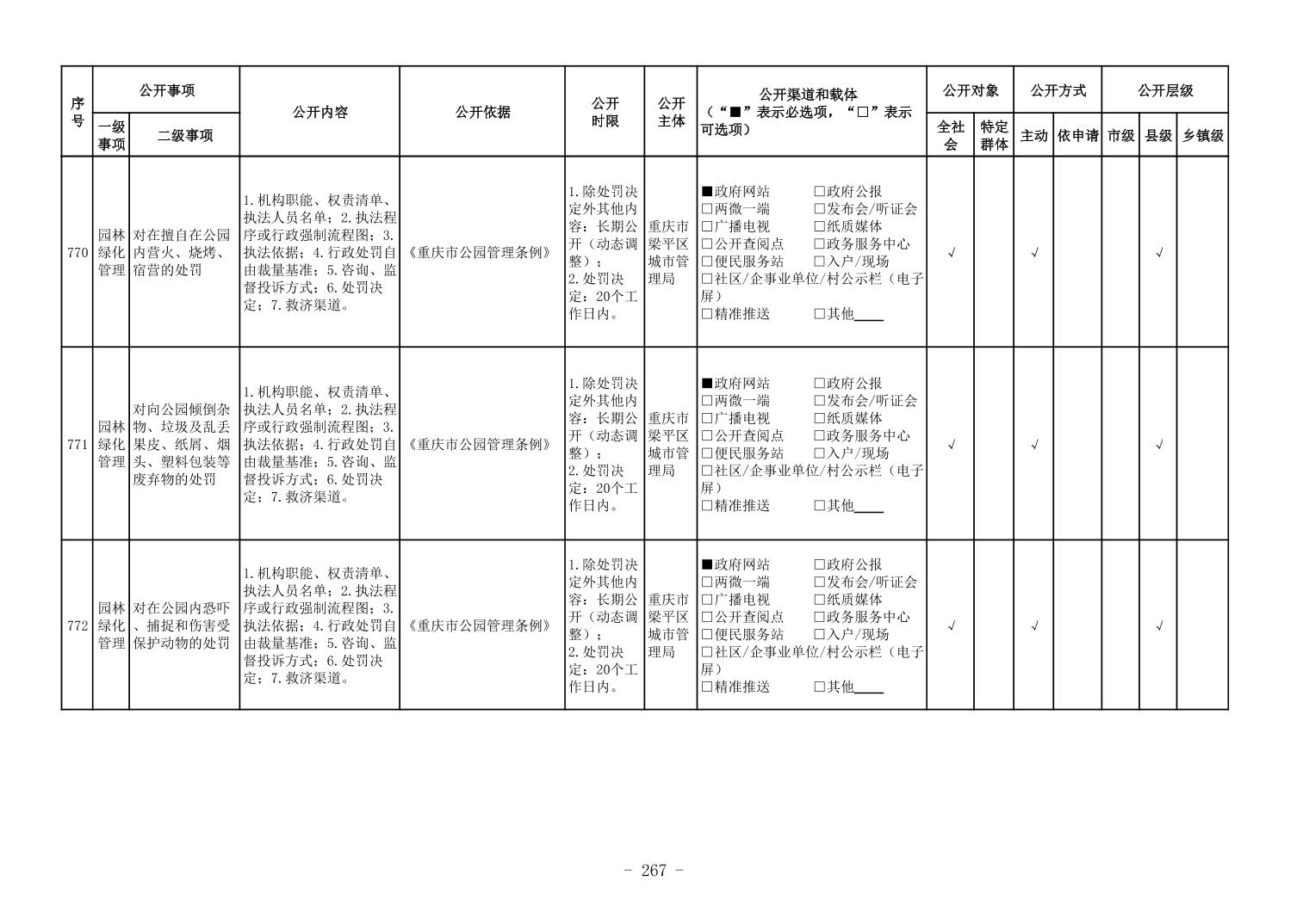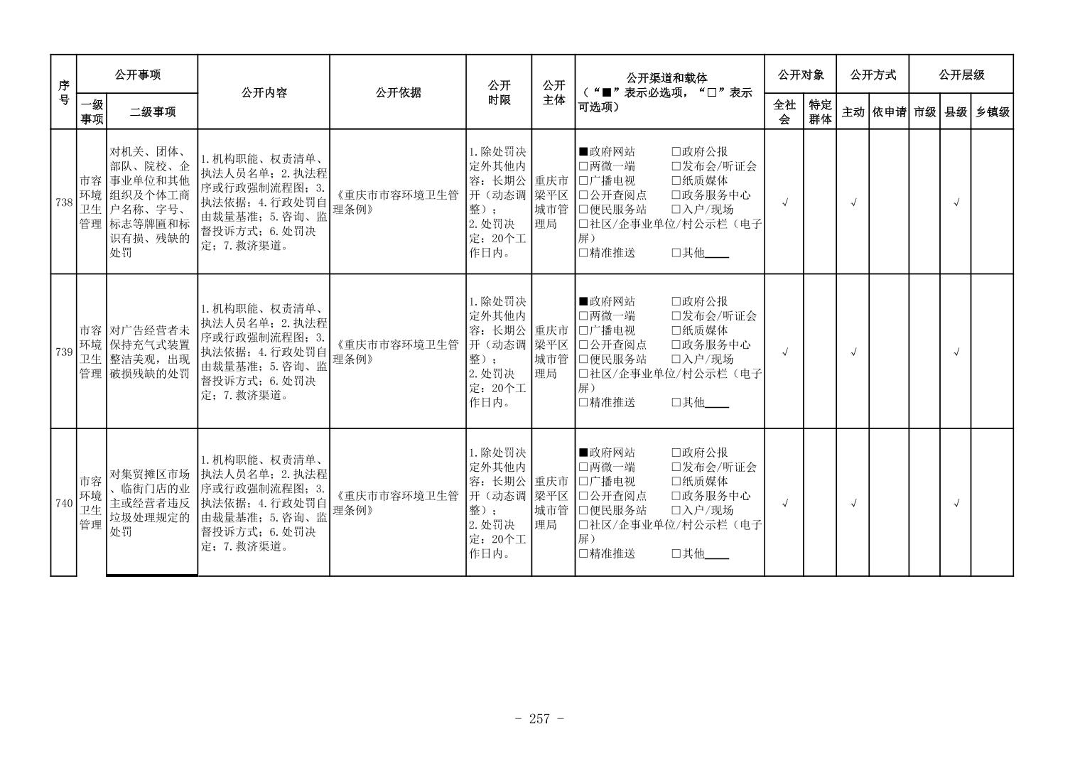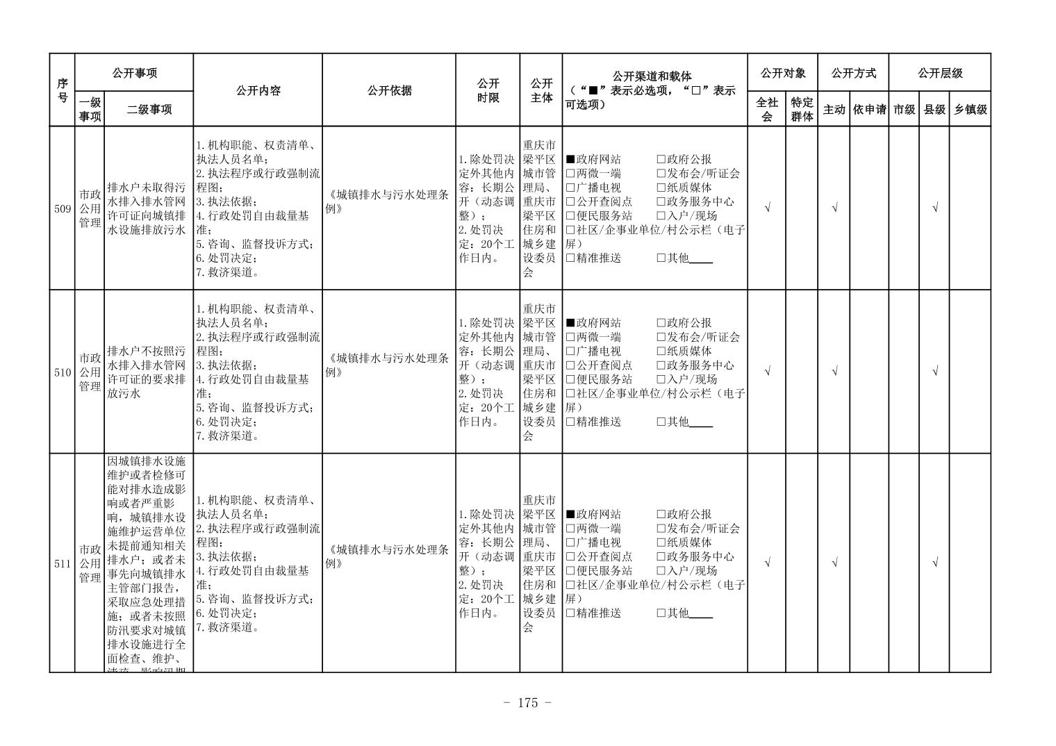 重慶市梁平區城市綜合執法領域基層政務公開標準目錄