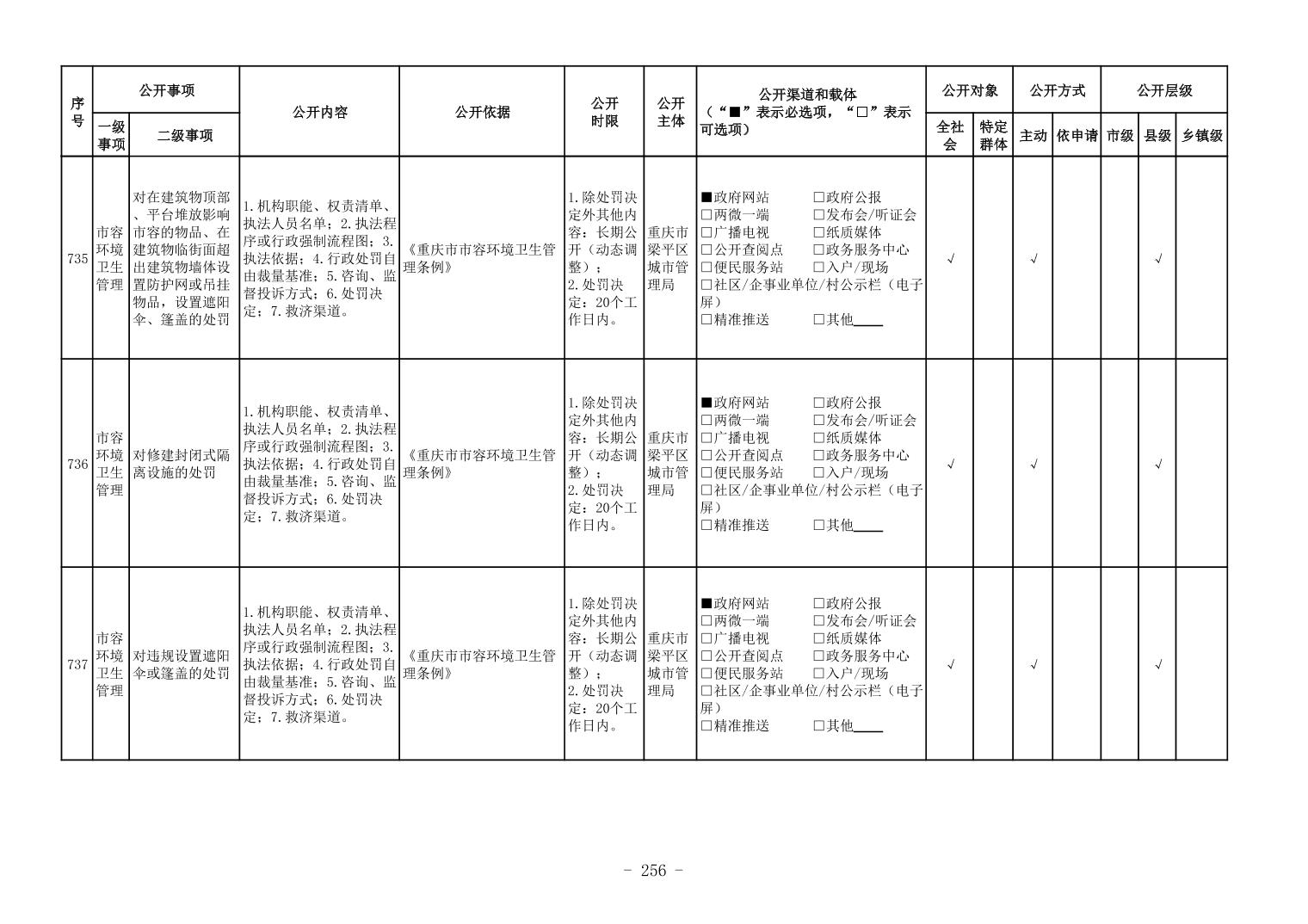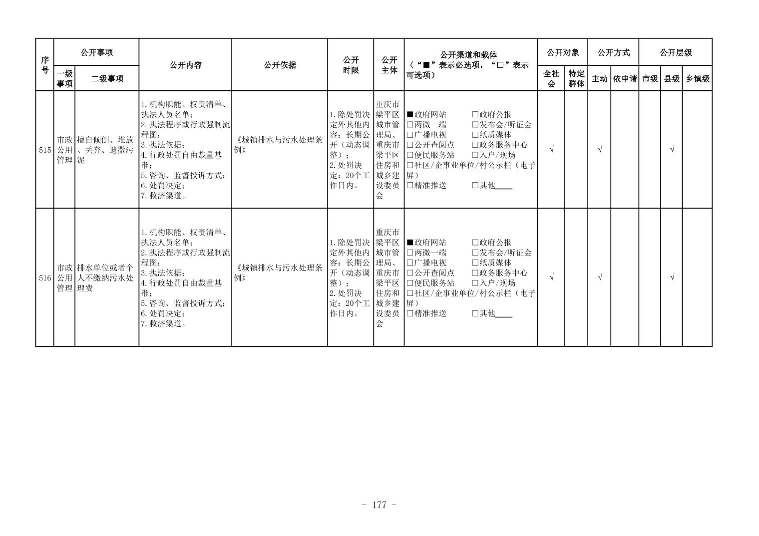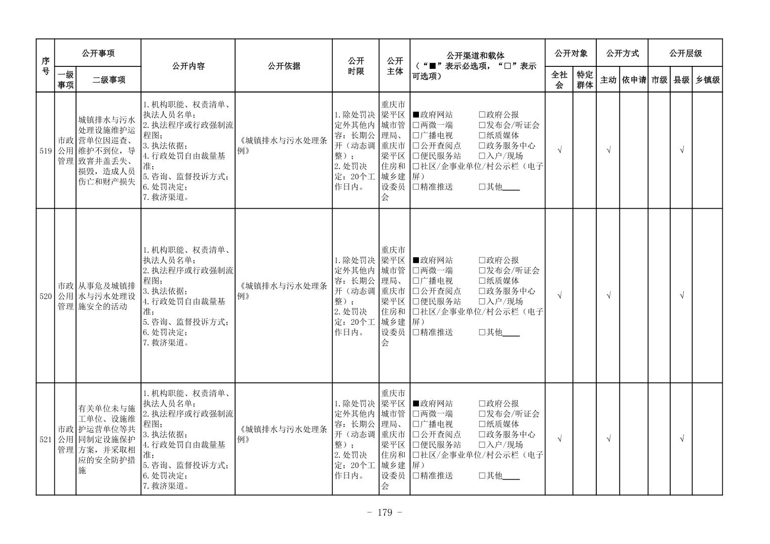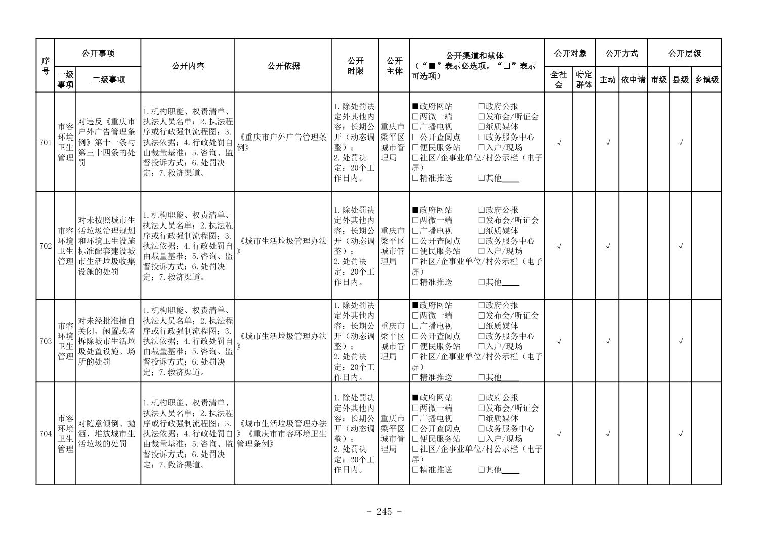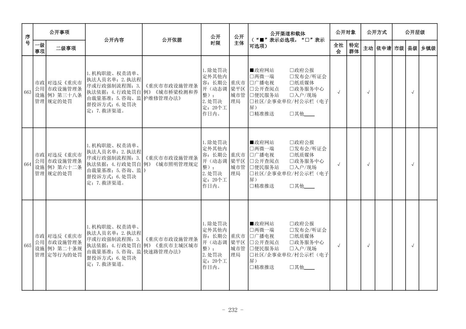 重慶市梁平區城市綜合執法領域基層政務公開標準目錄