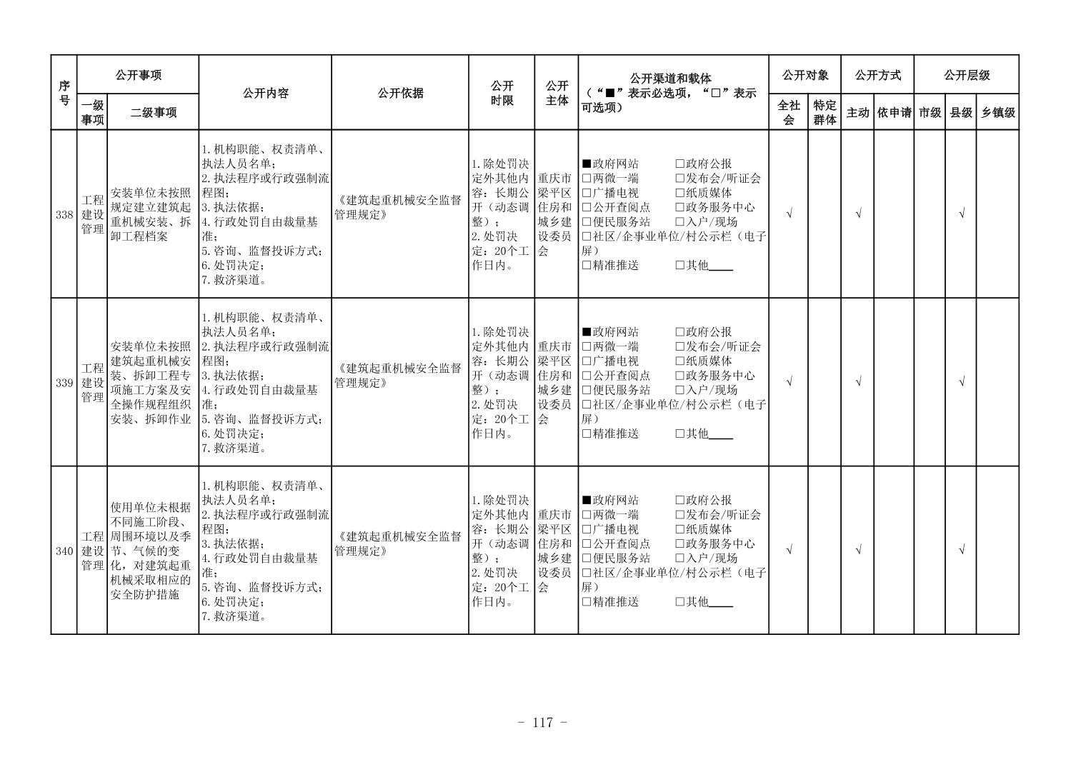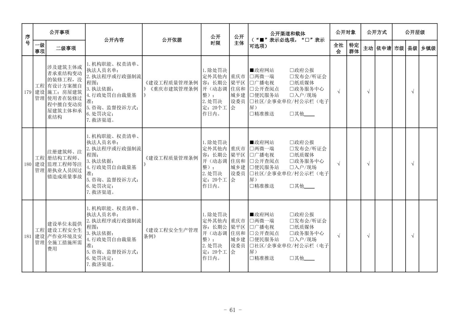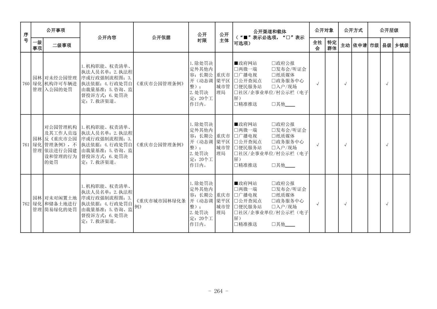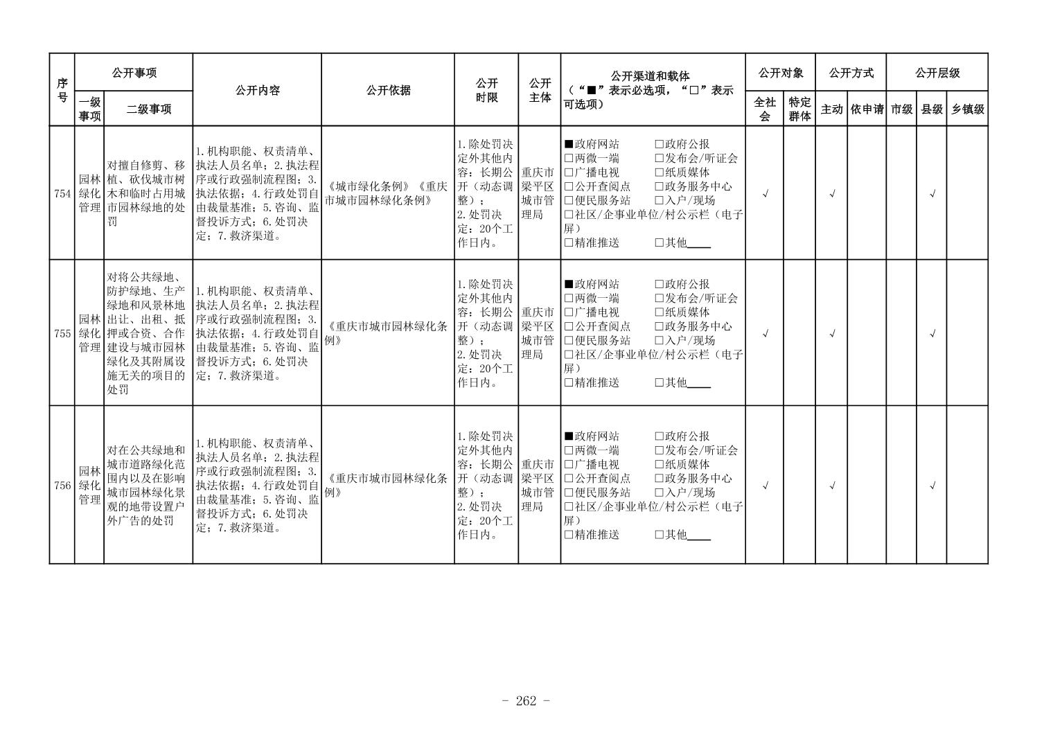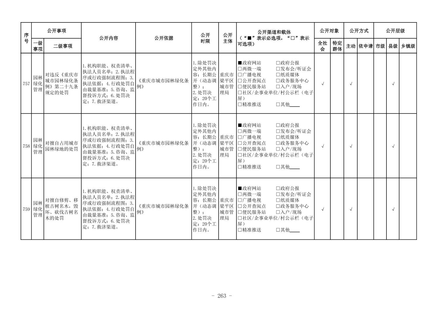 重慶市梁平區城市綜合執法領域基層政務公開標準目錄