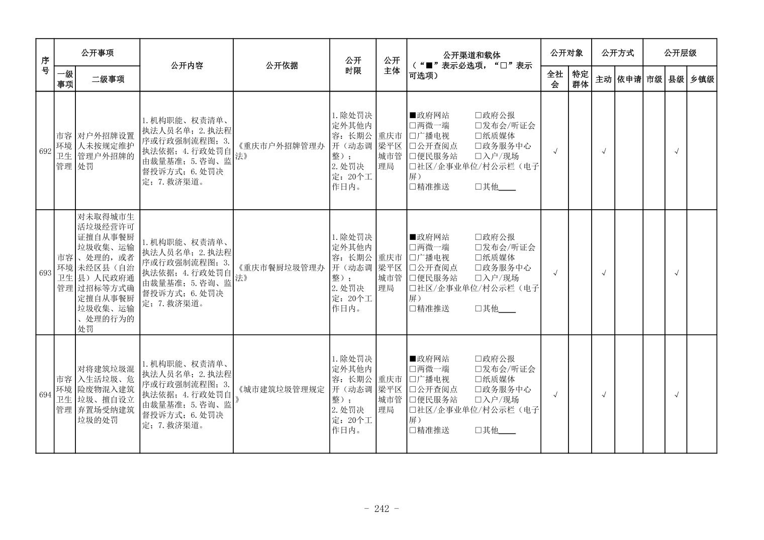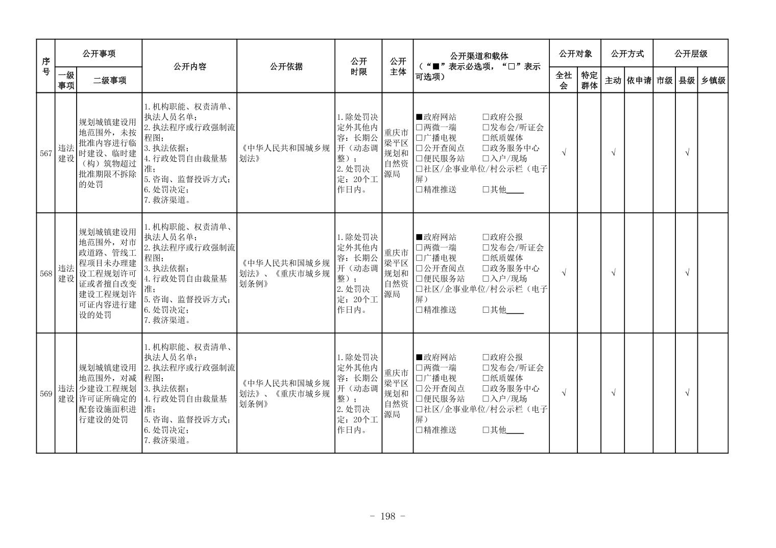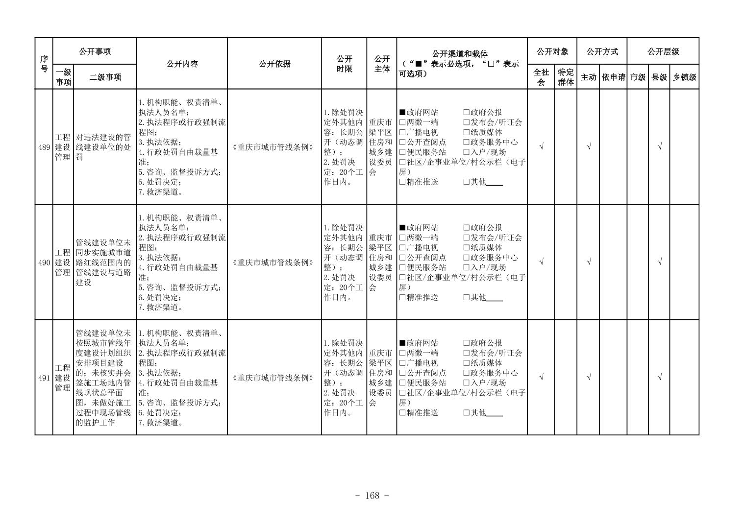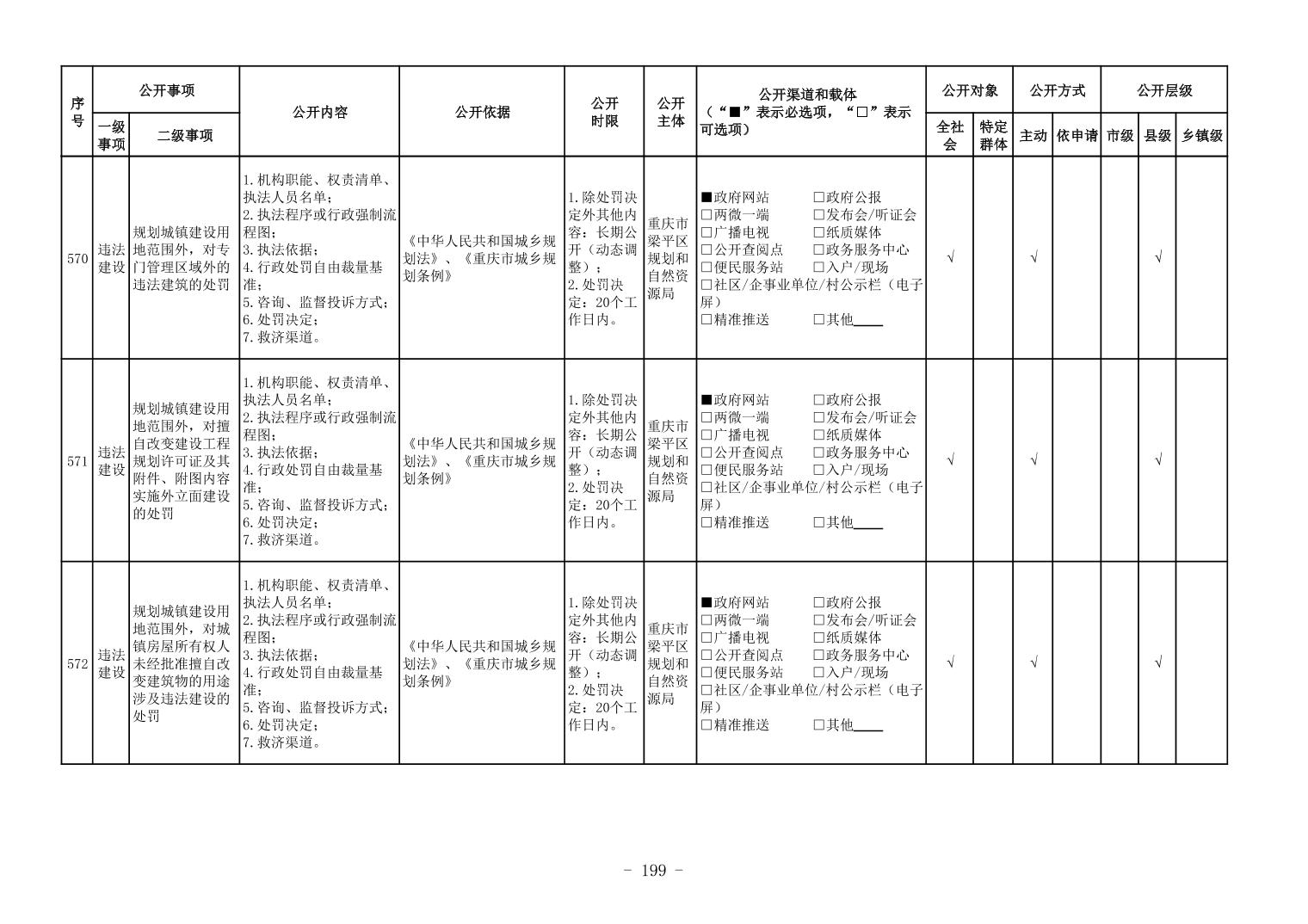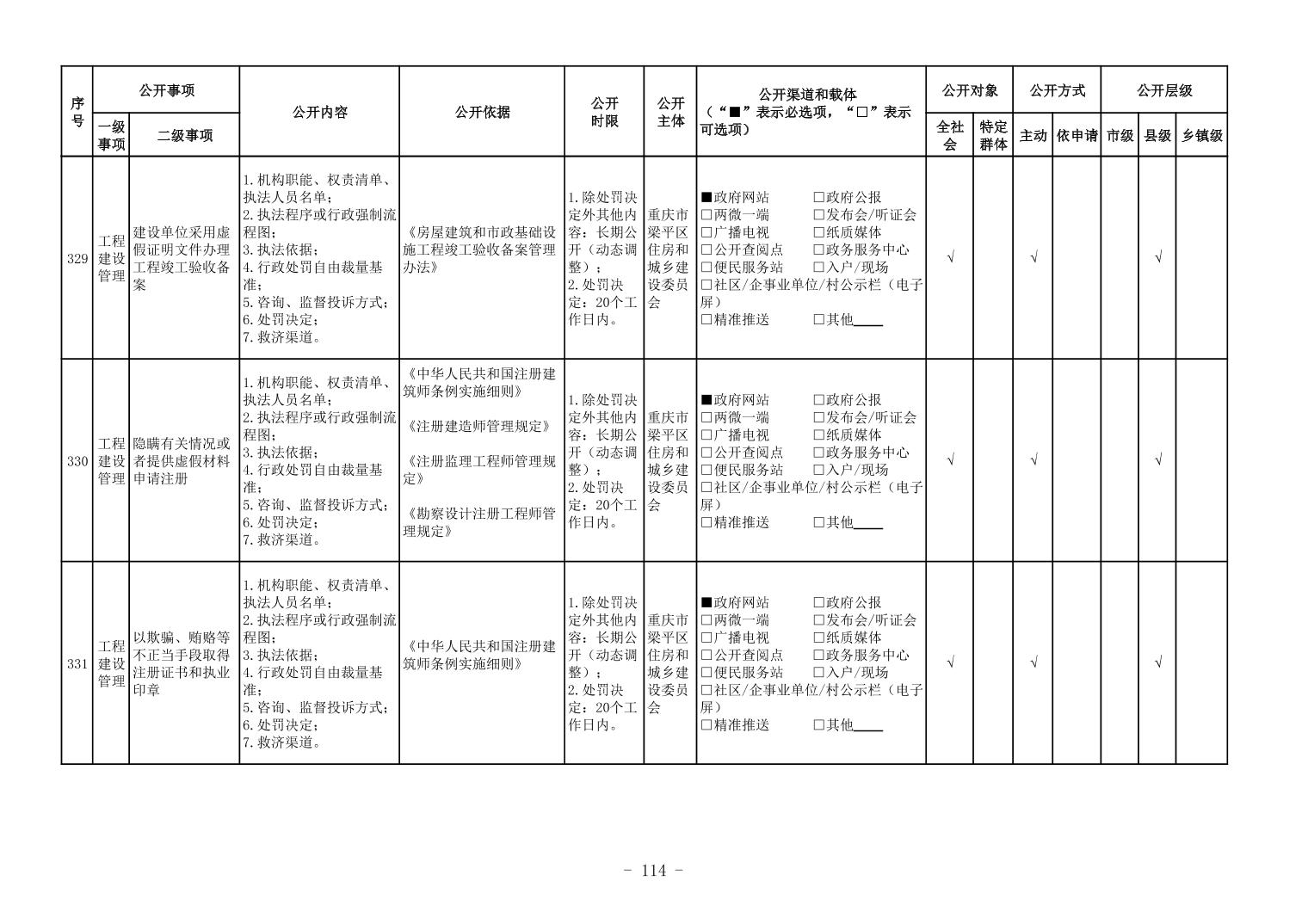 重慶市梁平區城市綜合執法領域基層政務公開標準目錄
