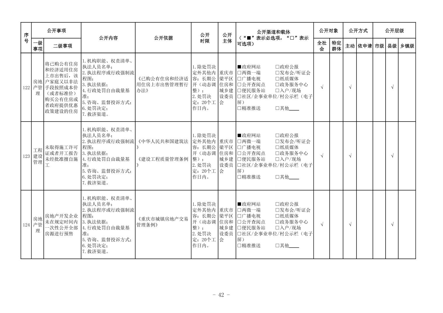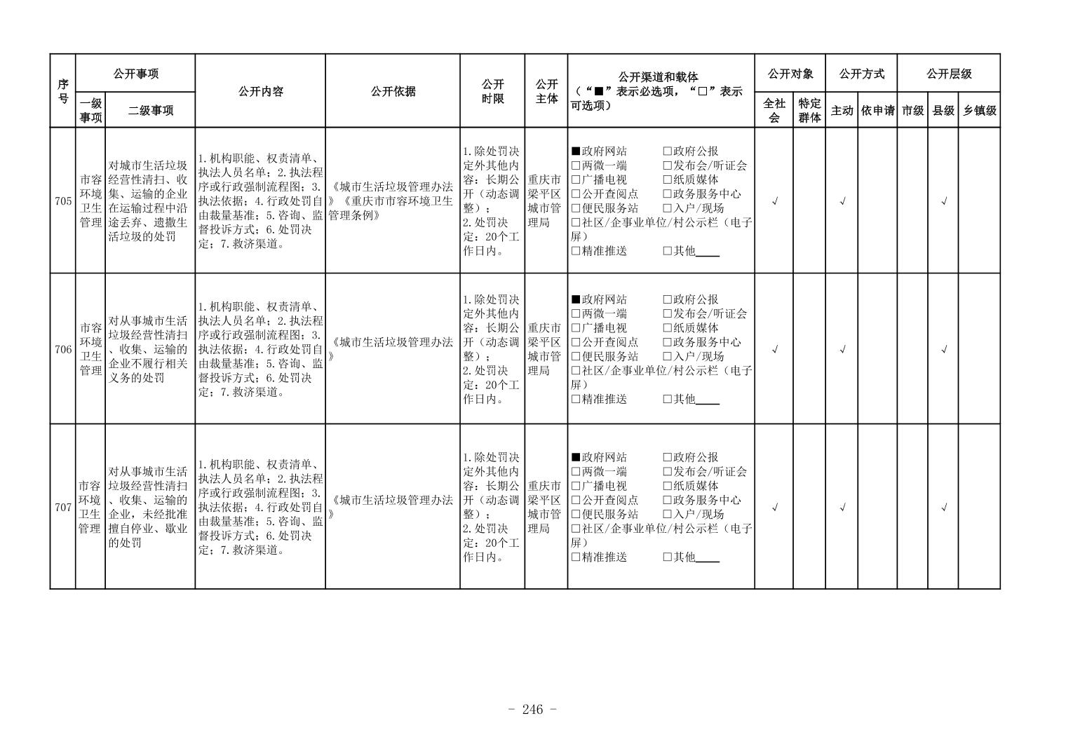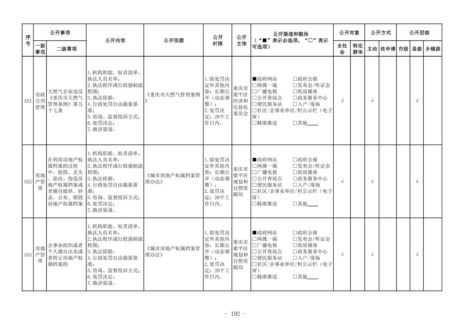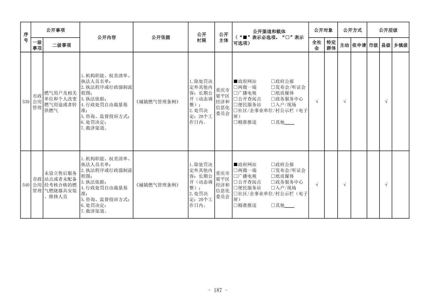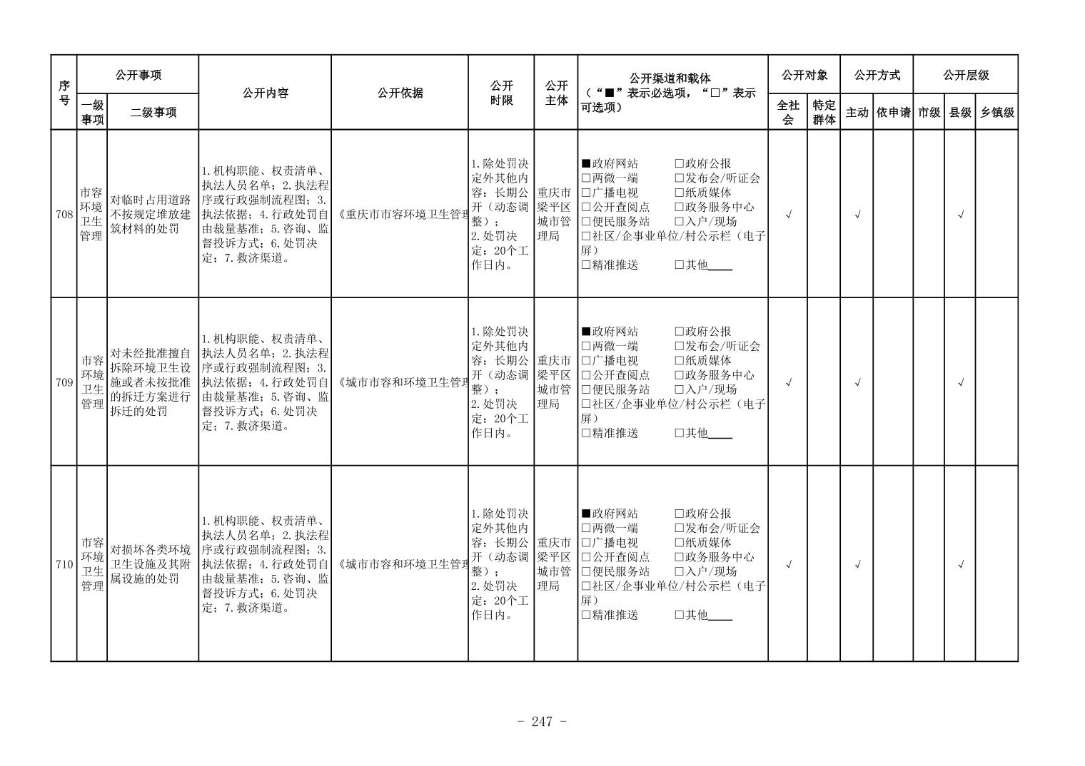 重慶市梁平區城市綜合執法領域基層政務公開標準目錄