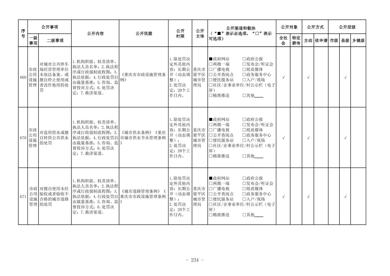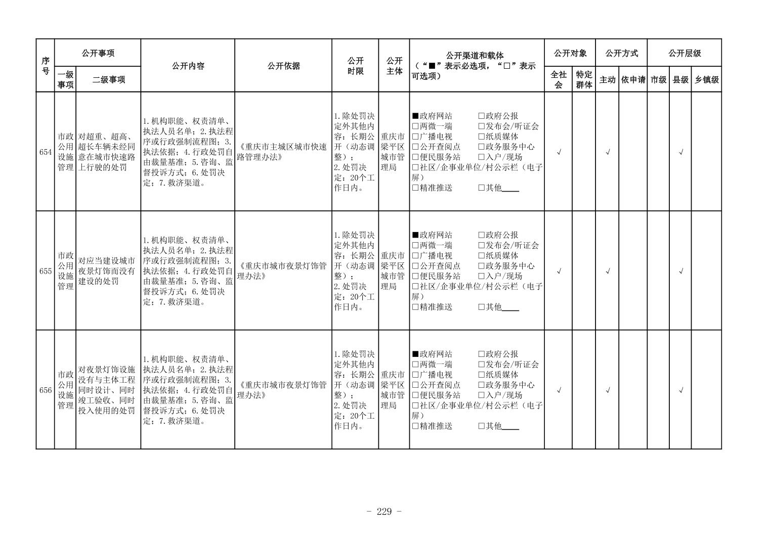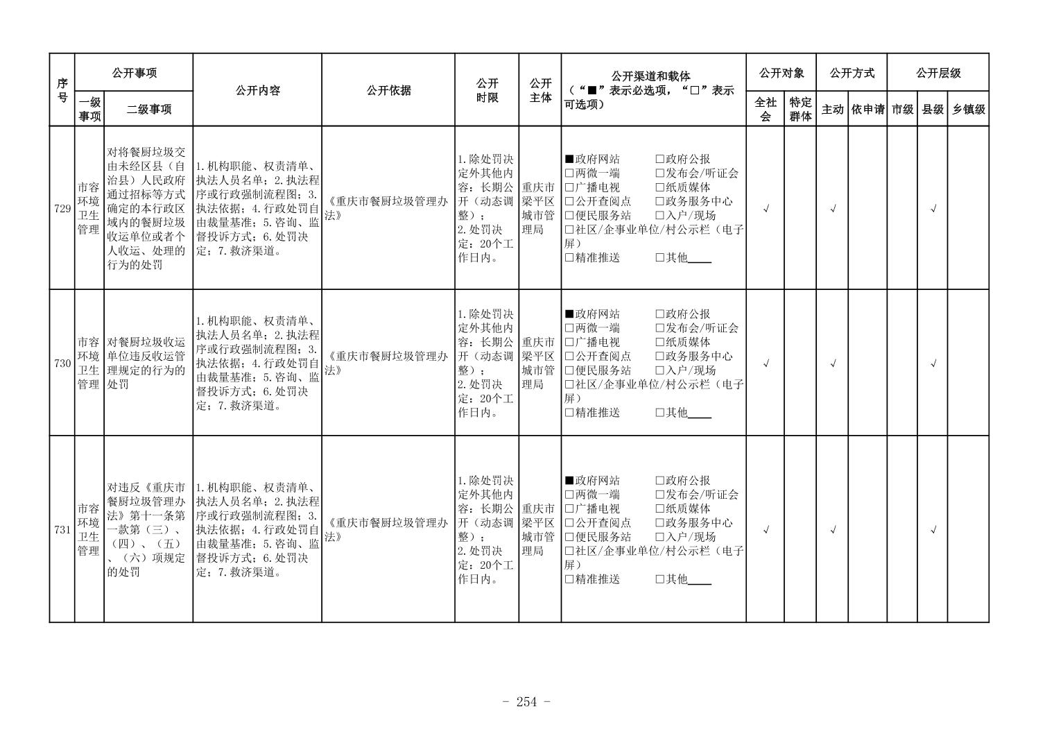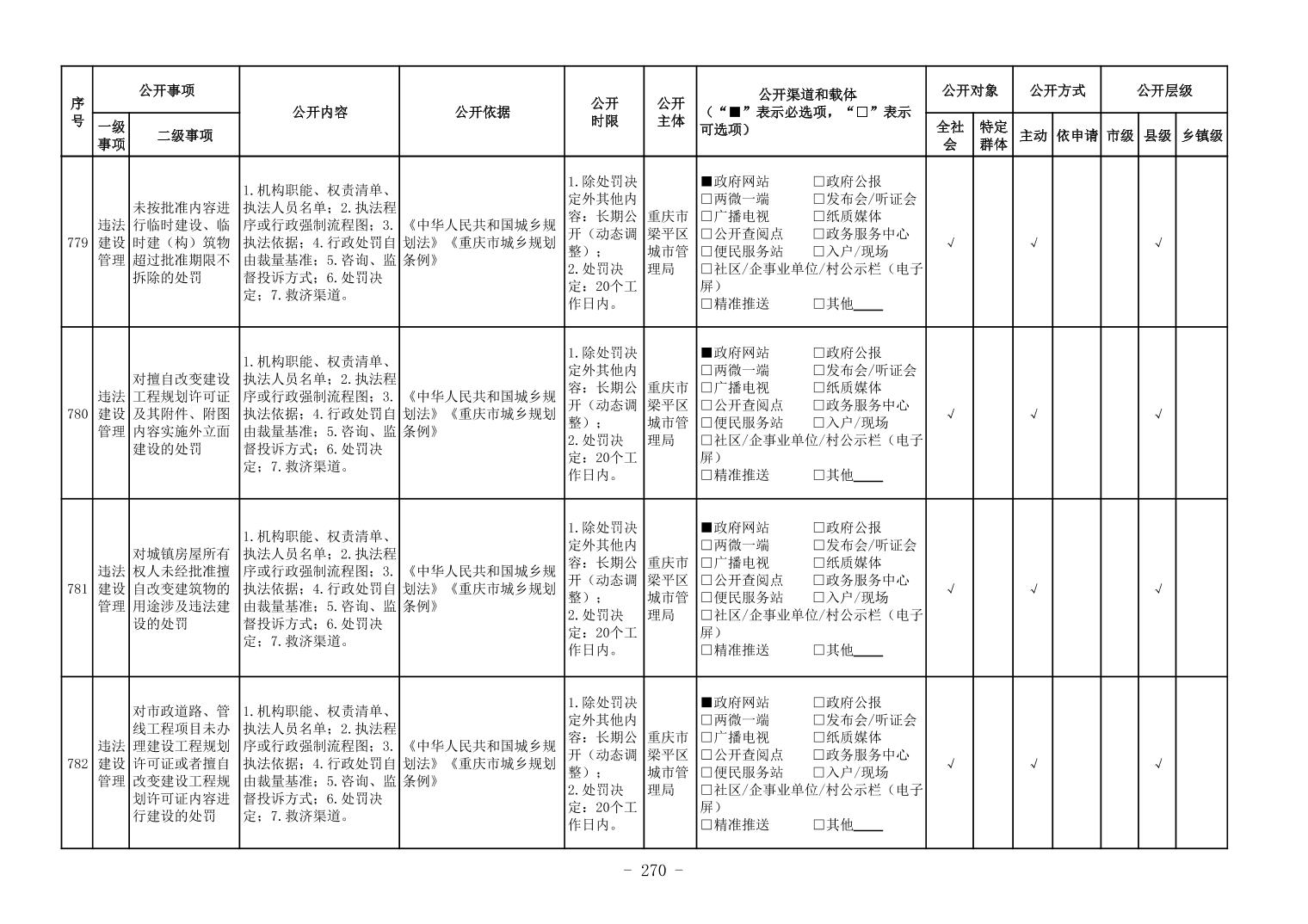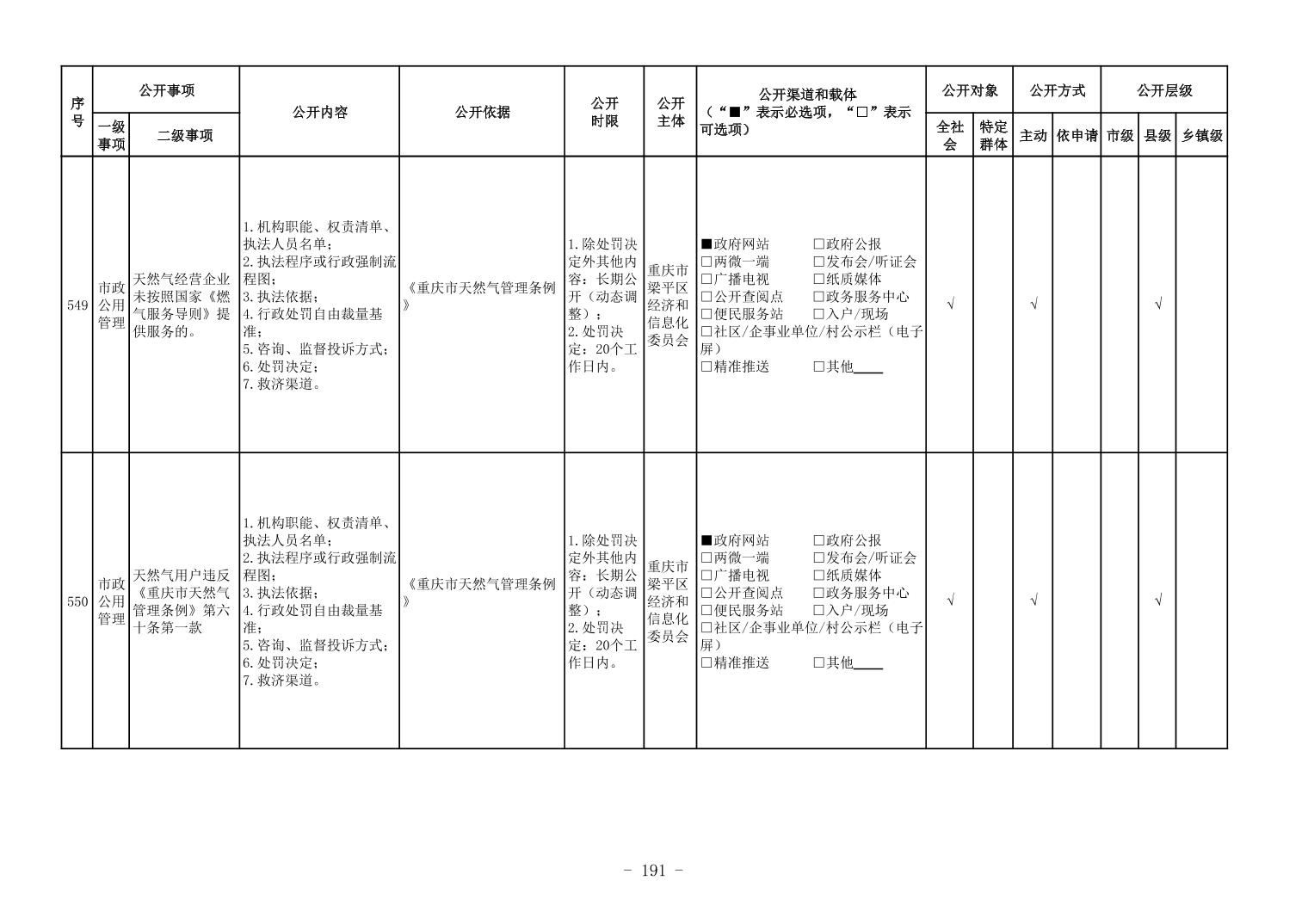 重慶市梁平區城市綜合執法領域基層政務公開標準目錄