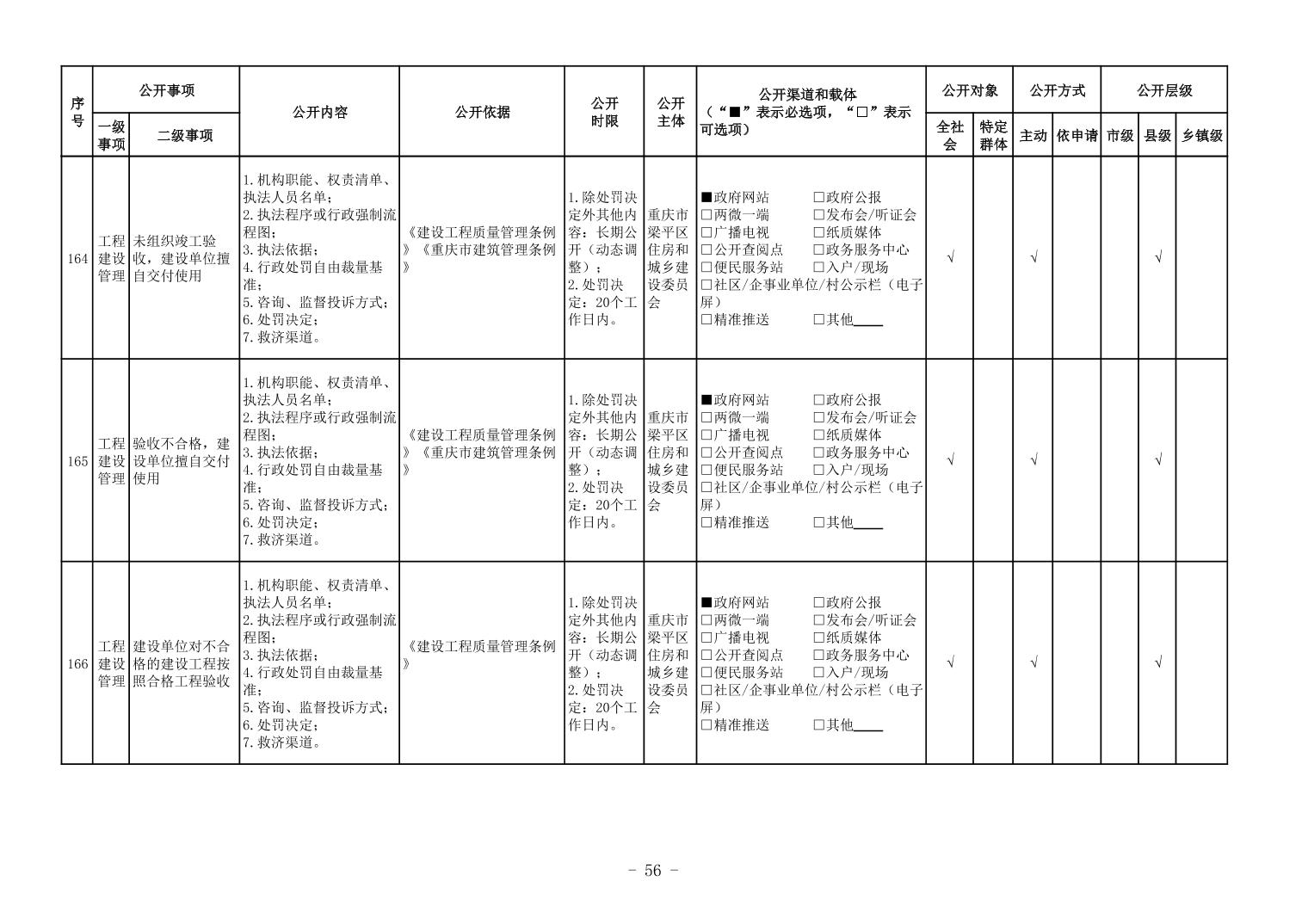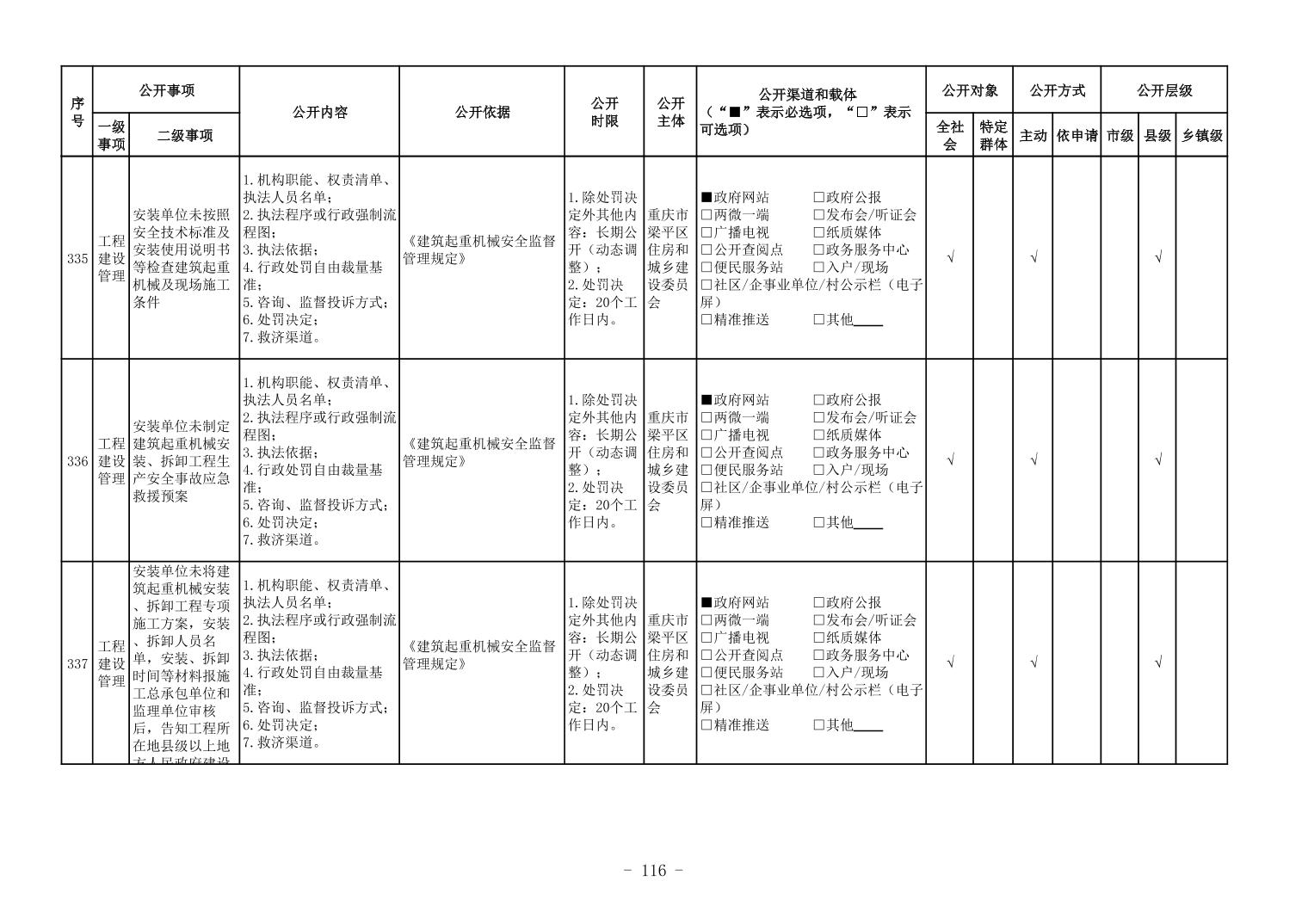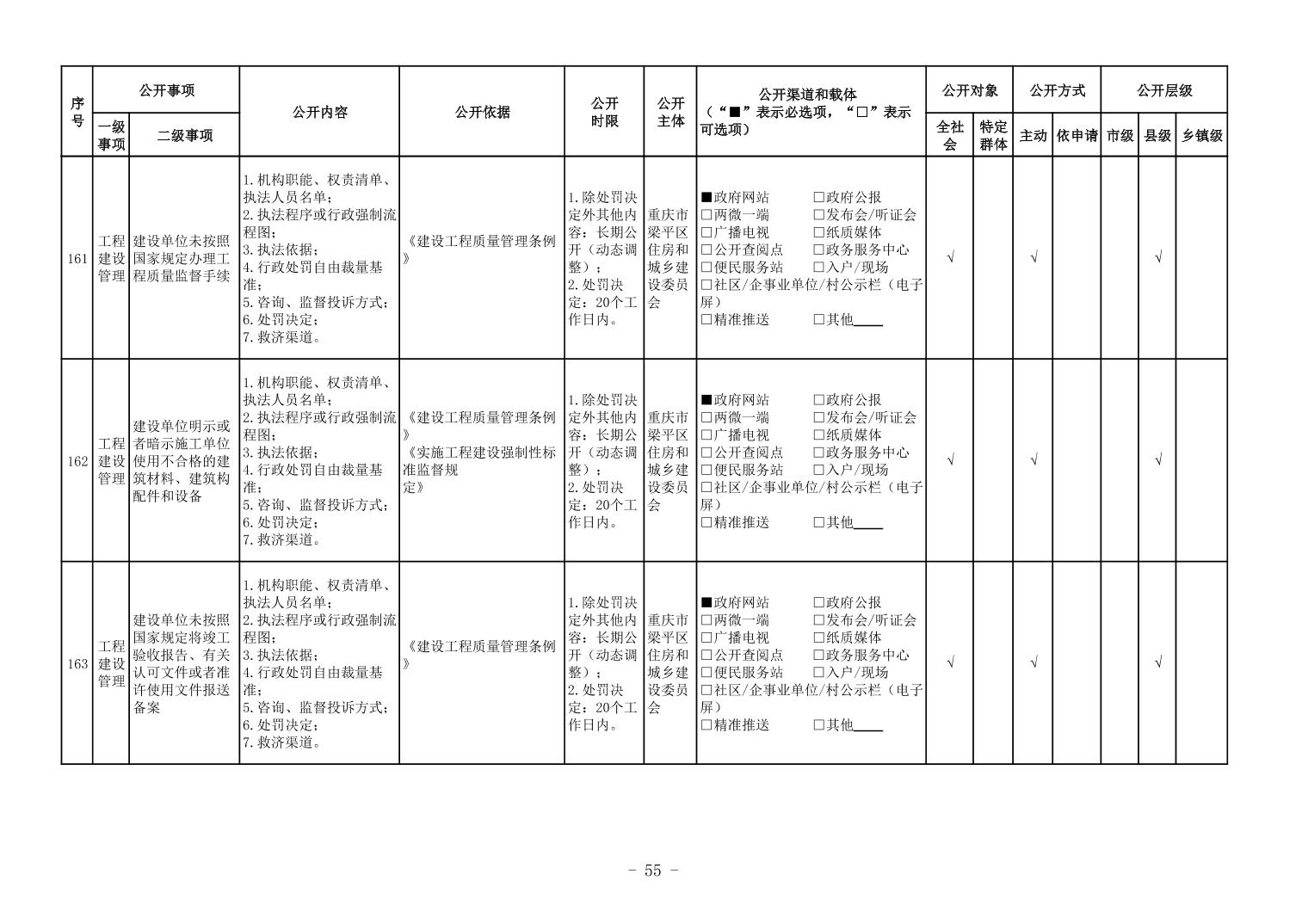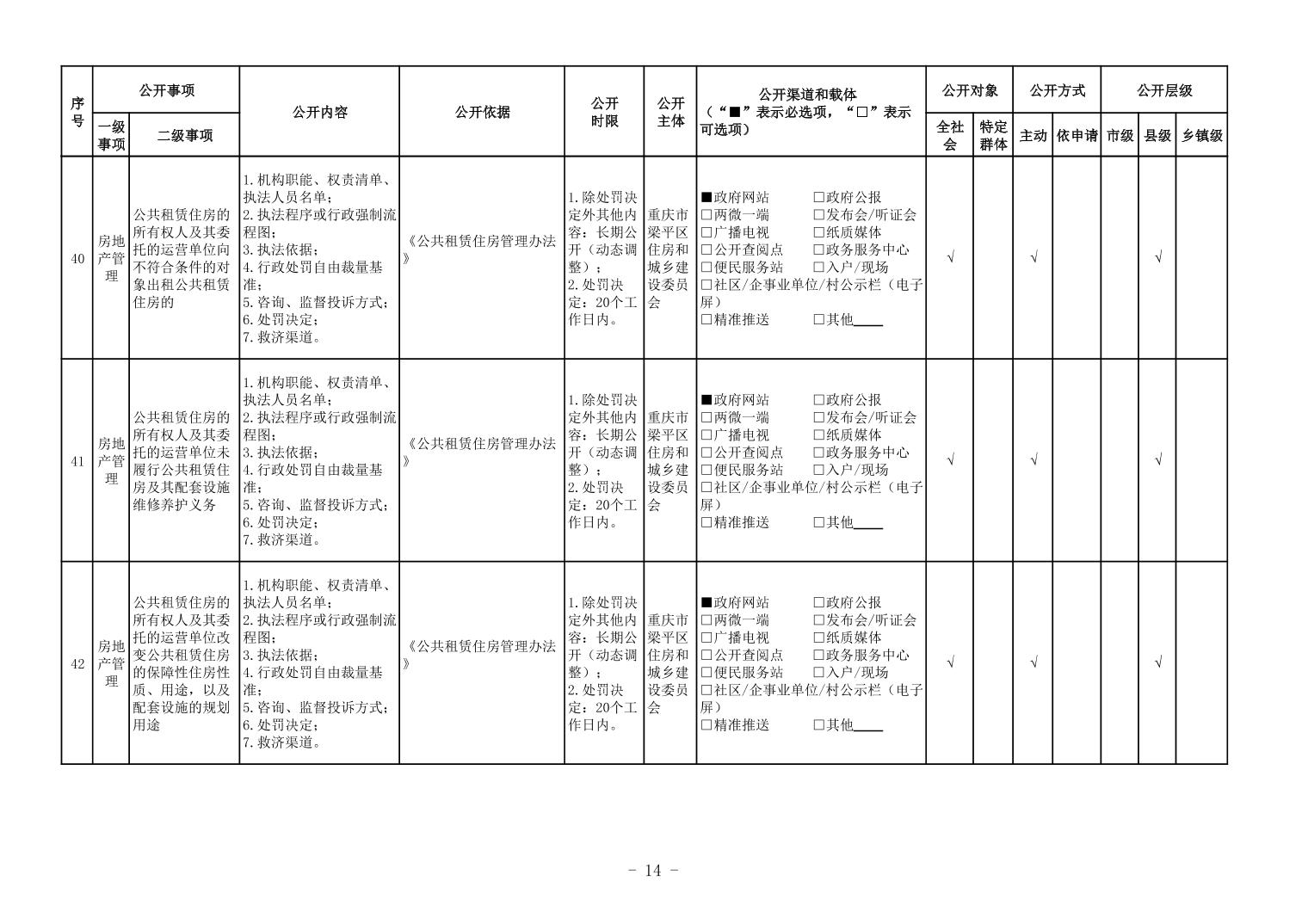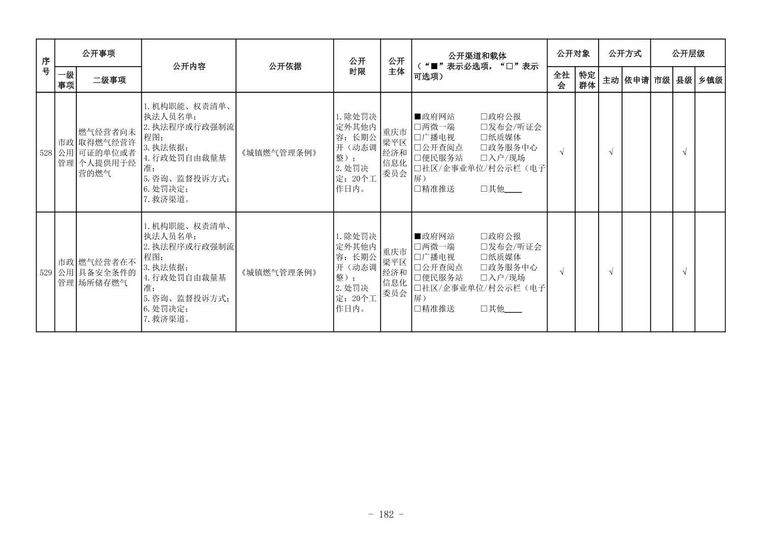 重慶市梁平區城市綜合執法領域基層政務公開標準目錄