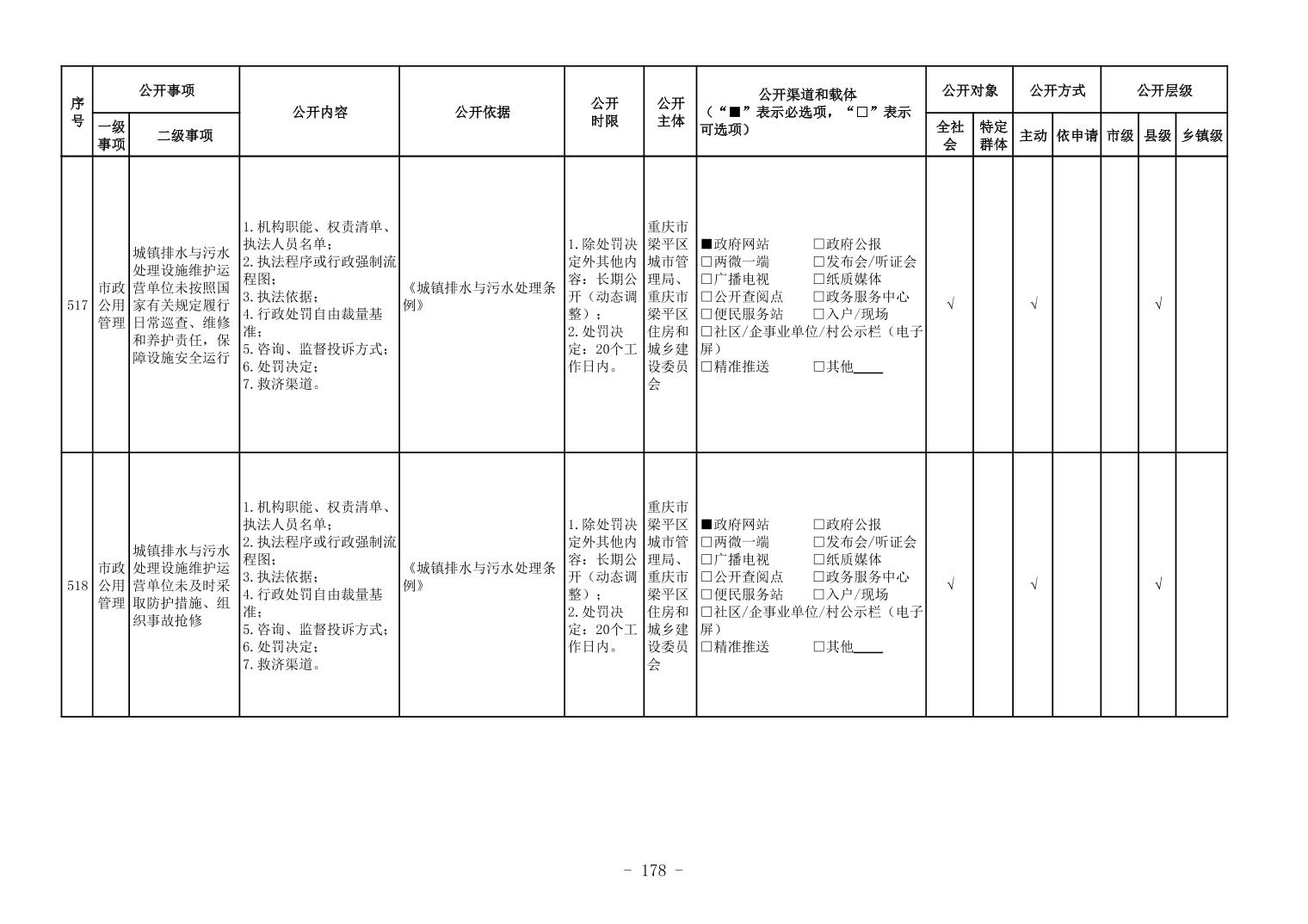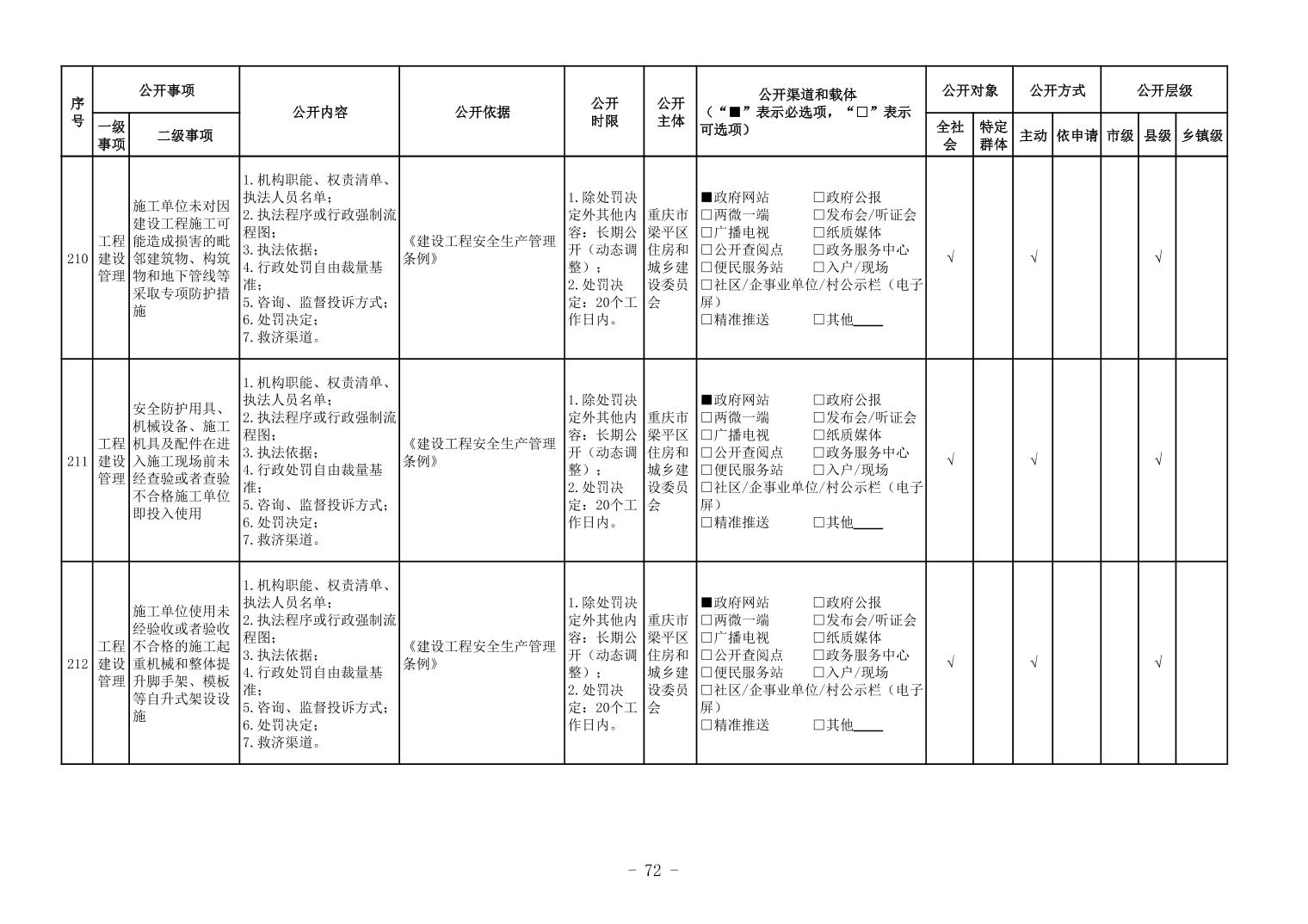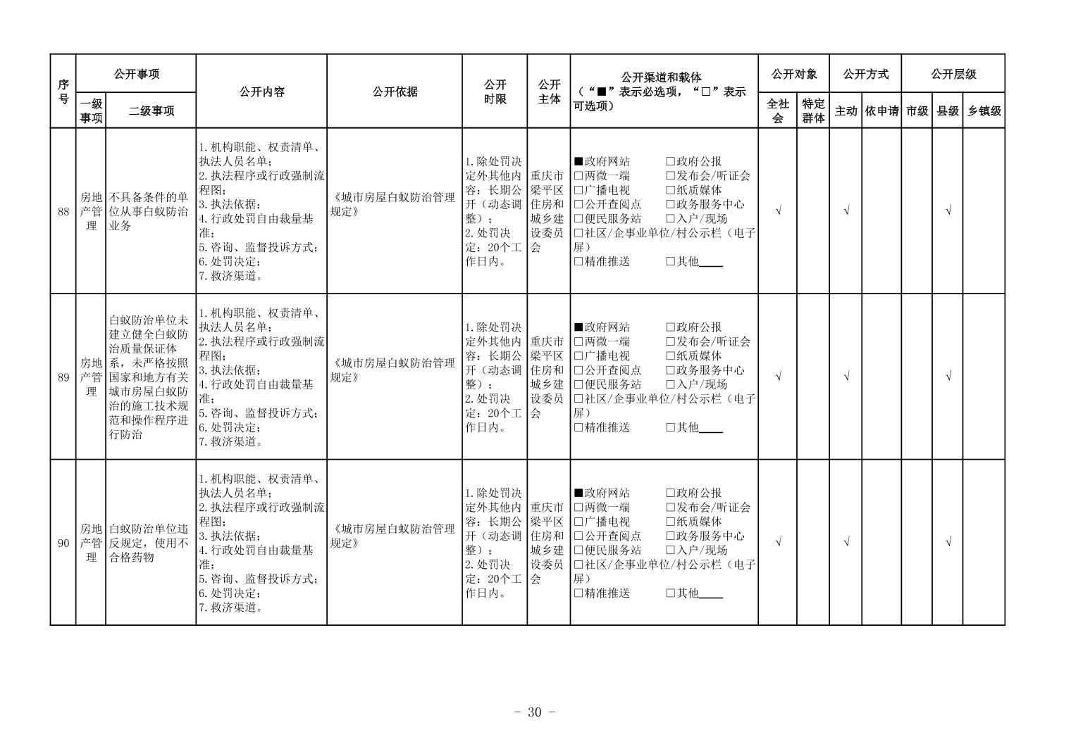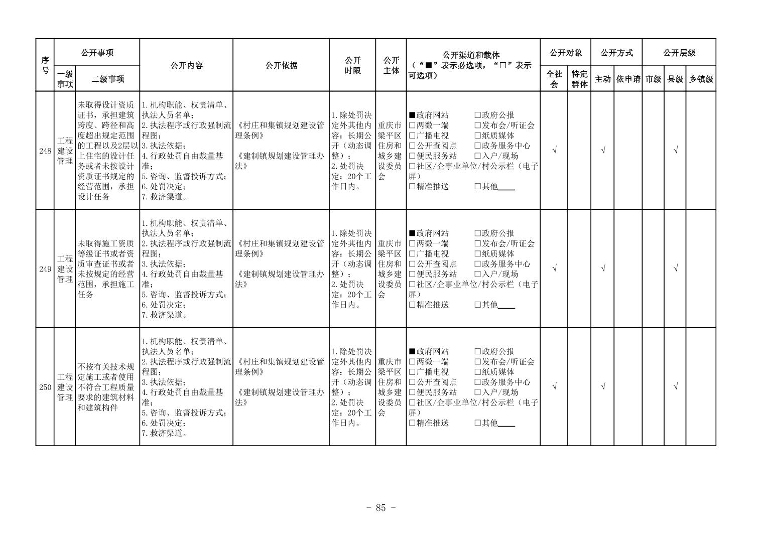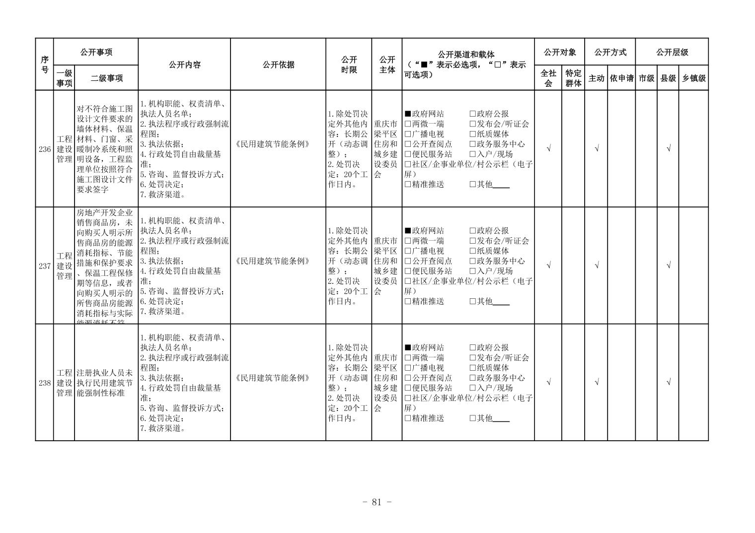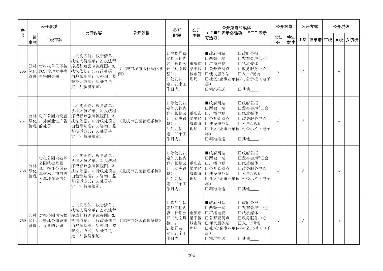 重慶市梁平區城市綜合執法領域基層政務公開標準目錄