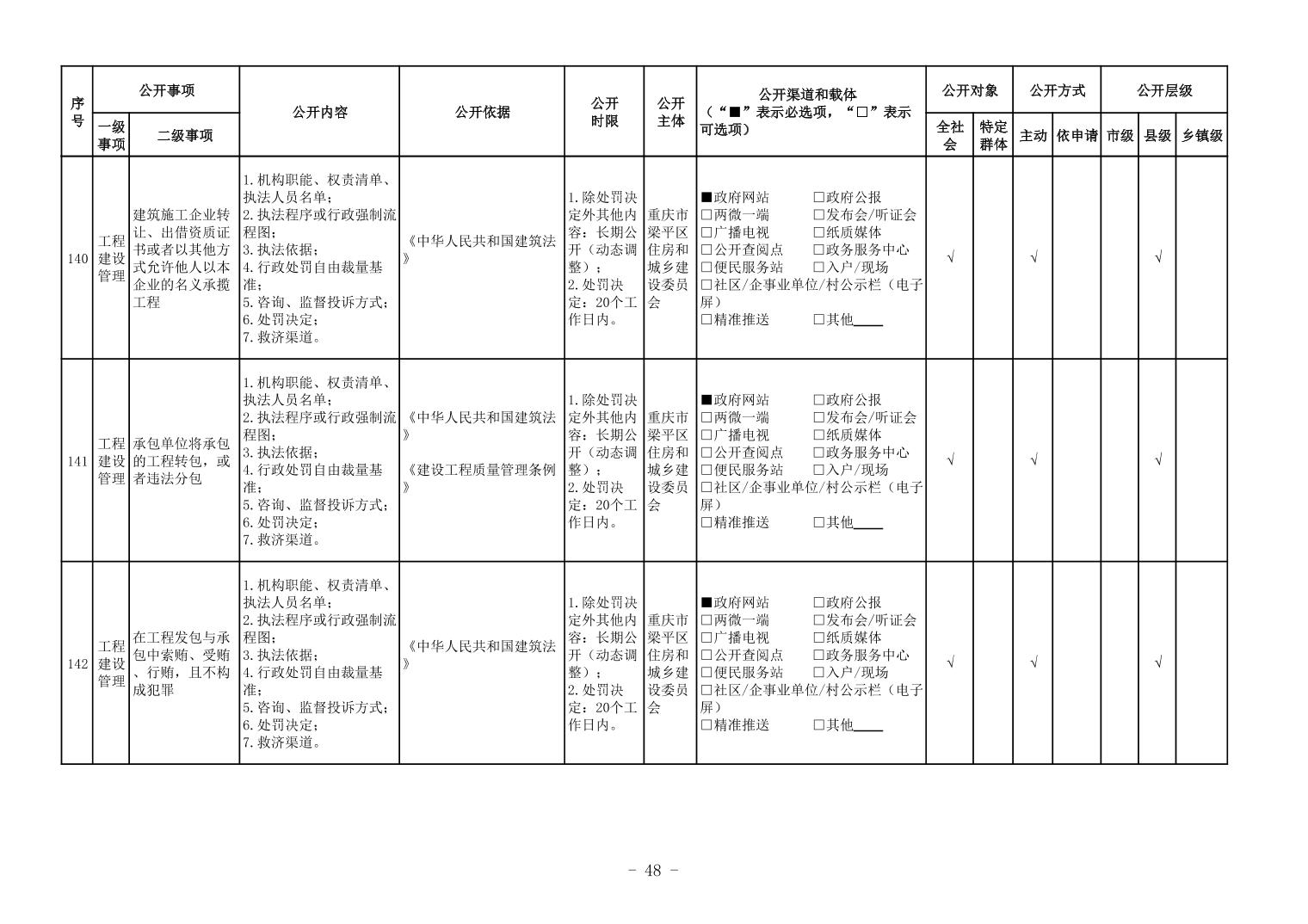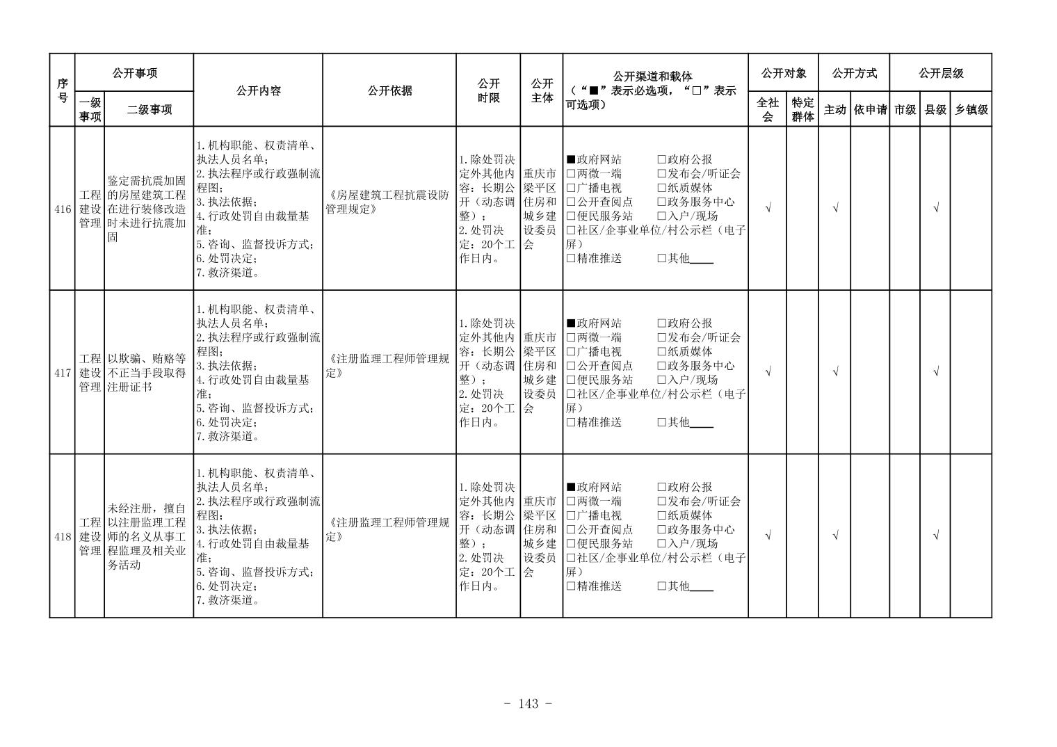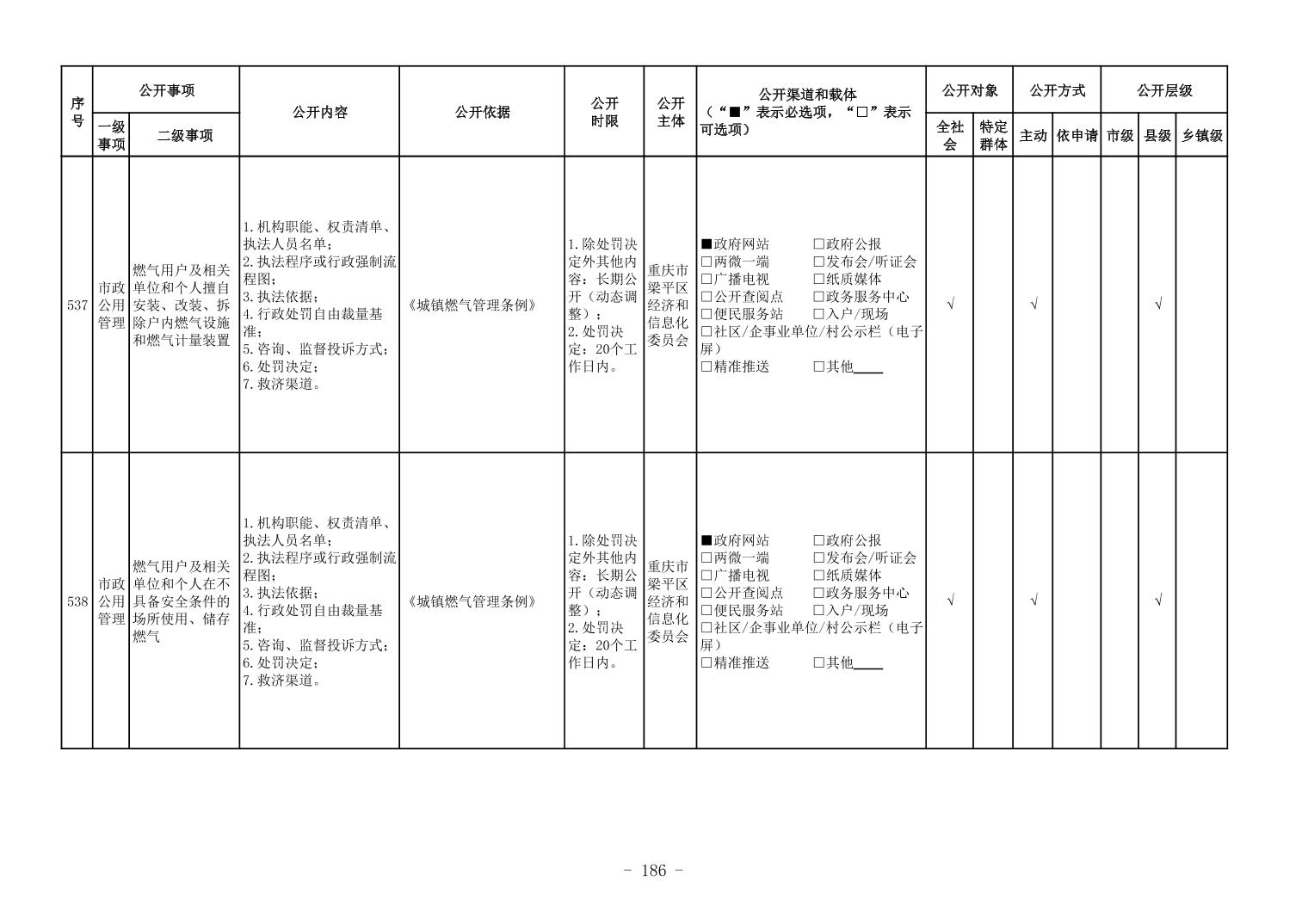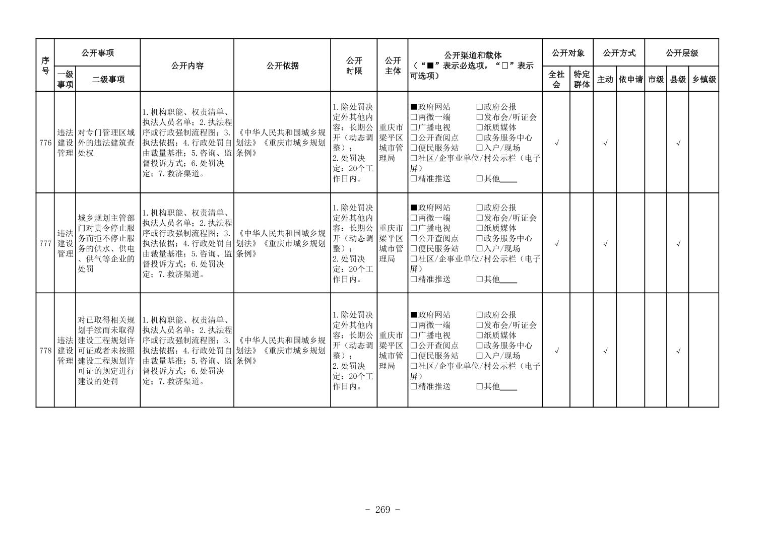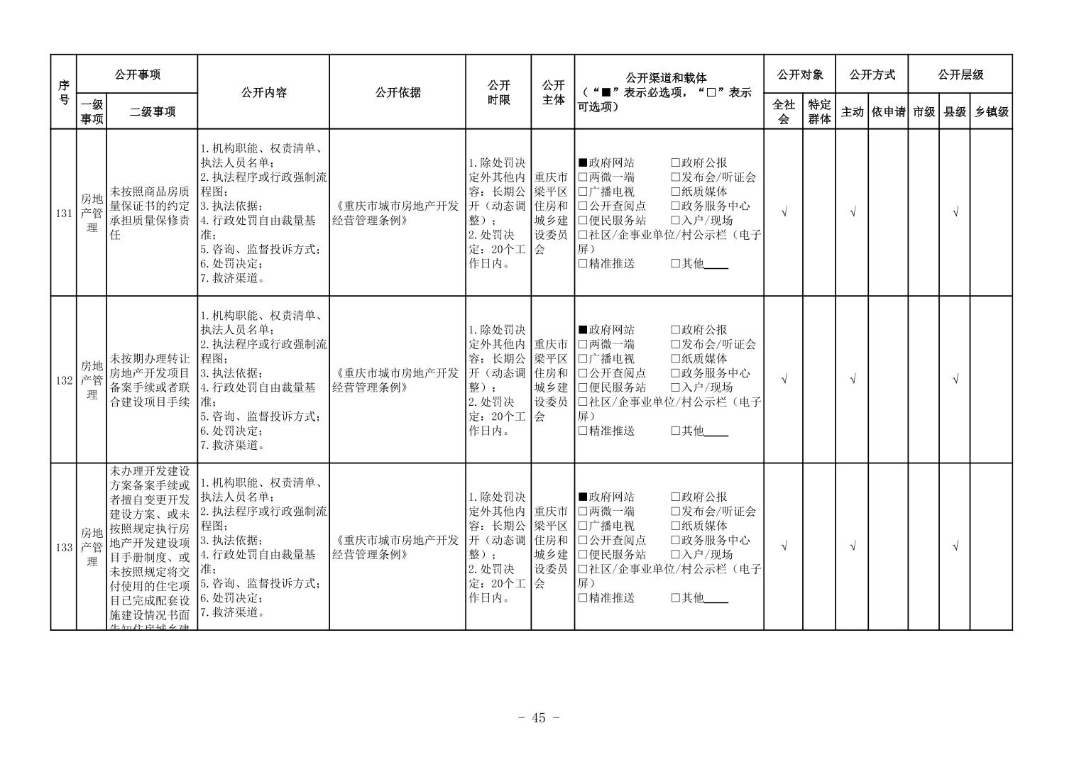 重慶市梁平區城市綜合執法領域基層政務公開標準目錄