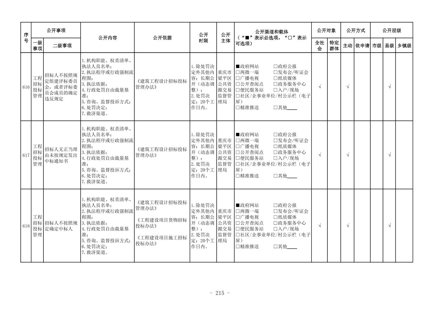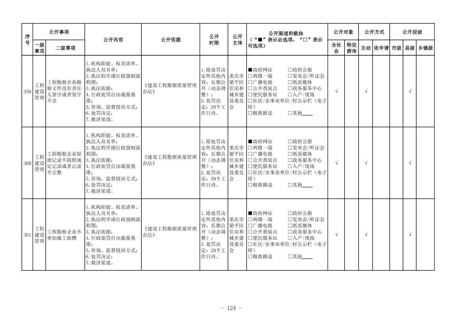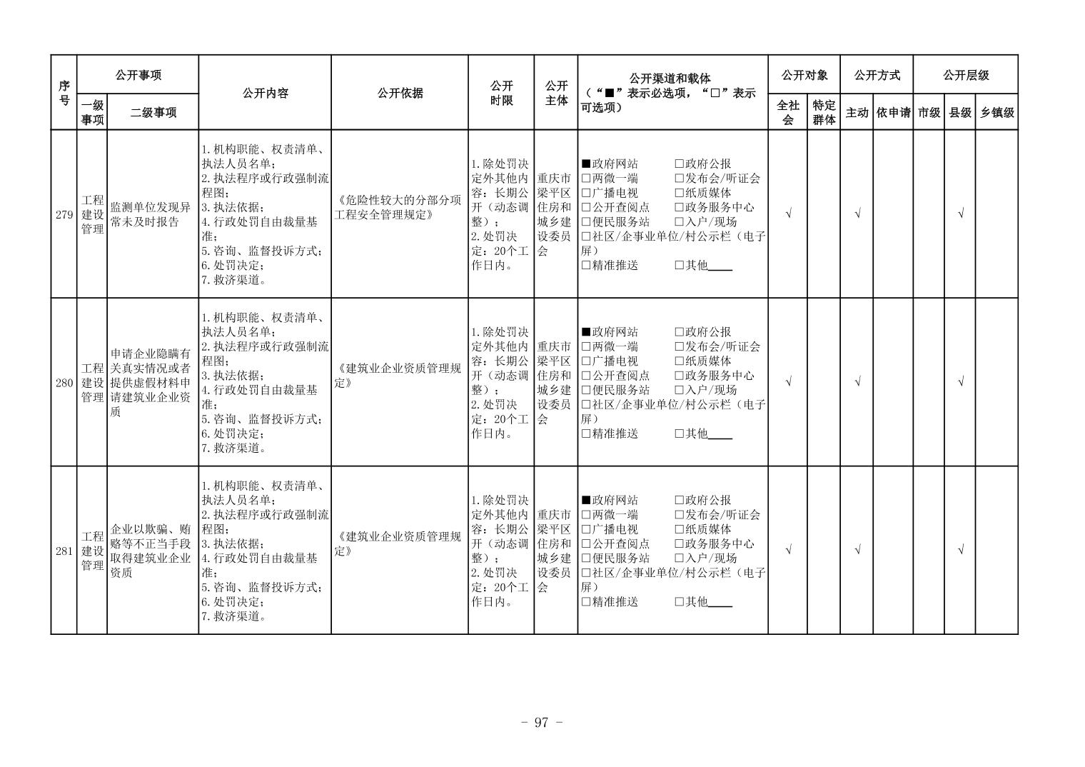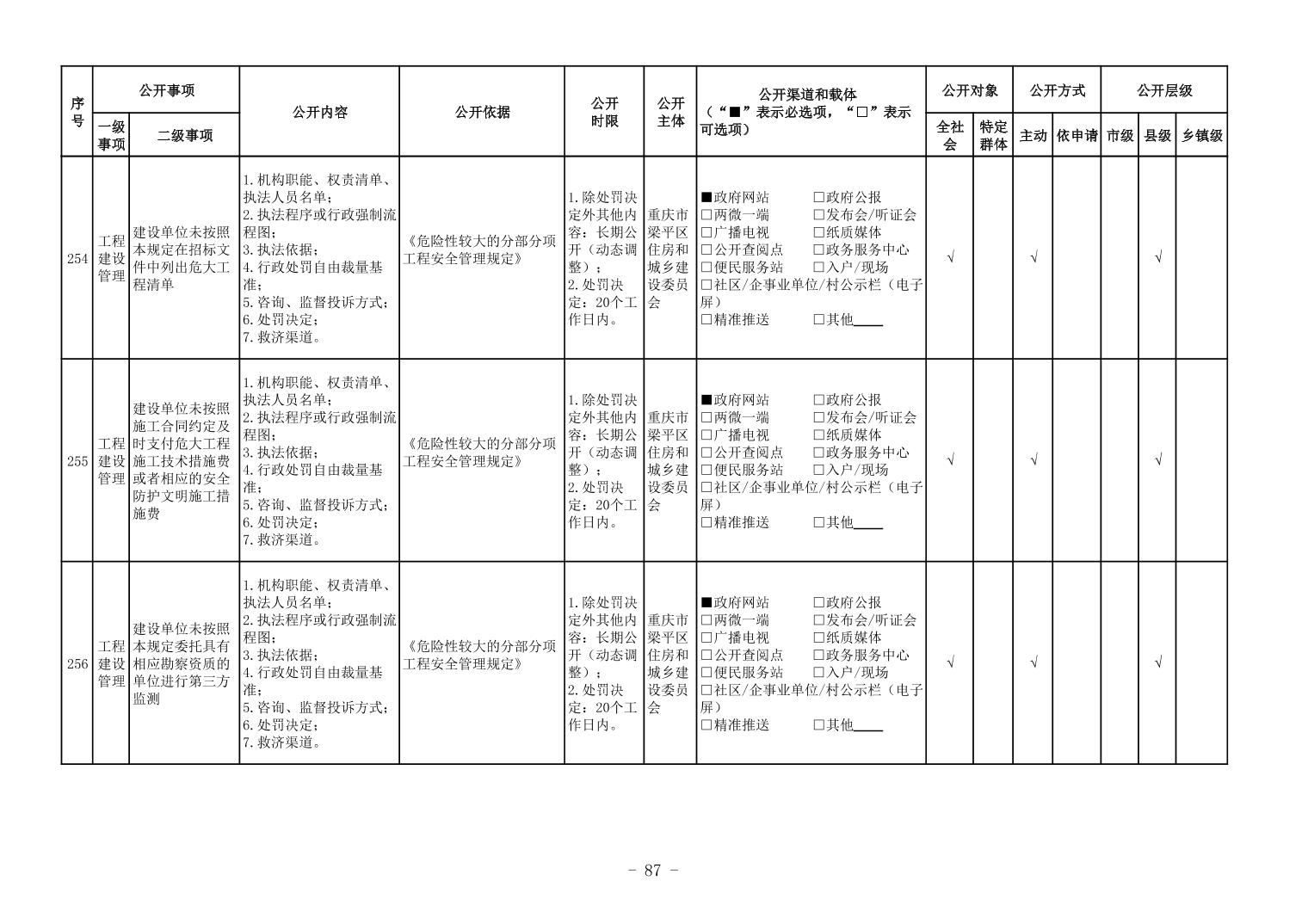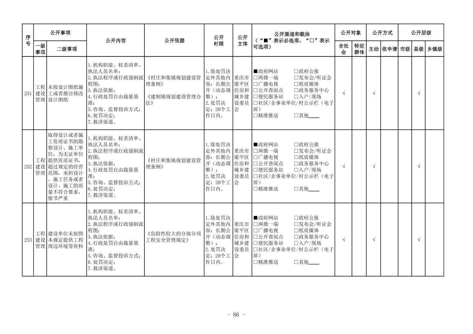 重慶市梁平區城市綜合執法領域基層政務公開標準目錄