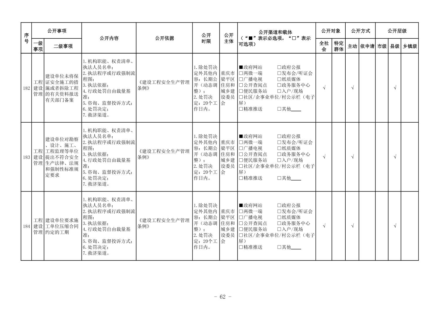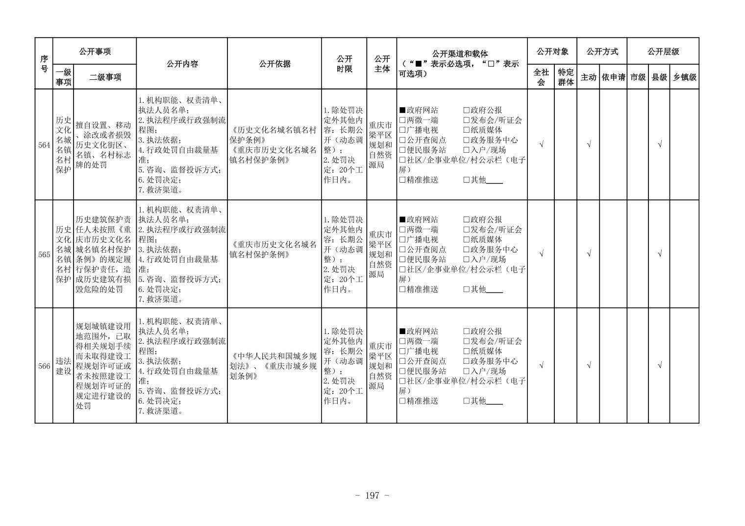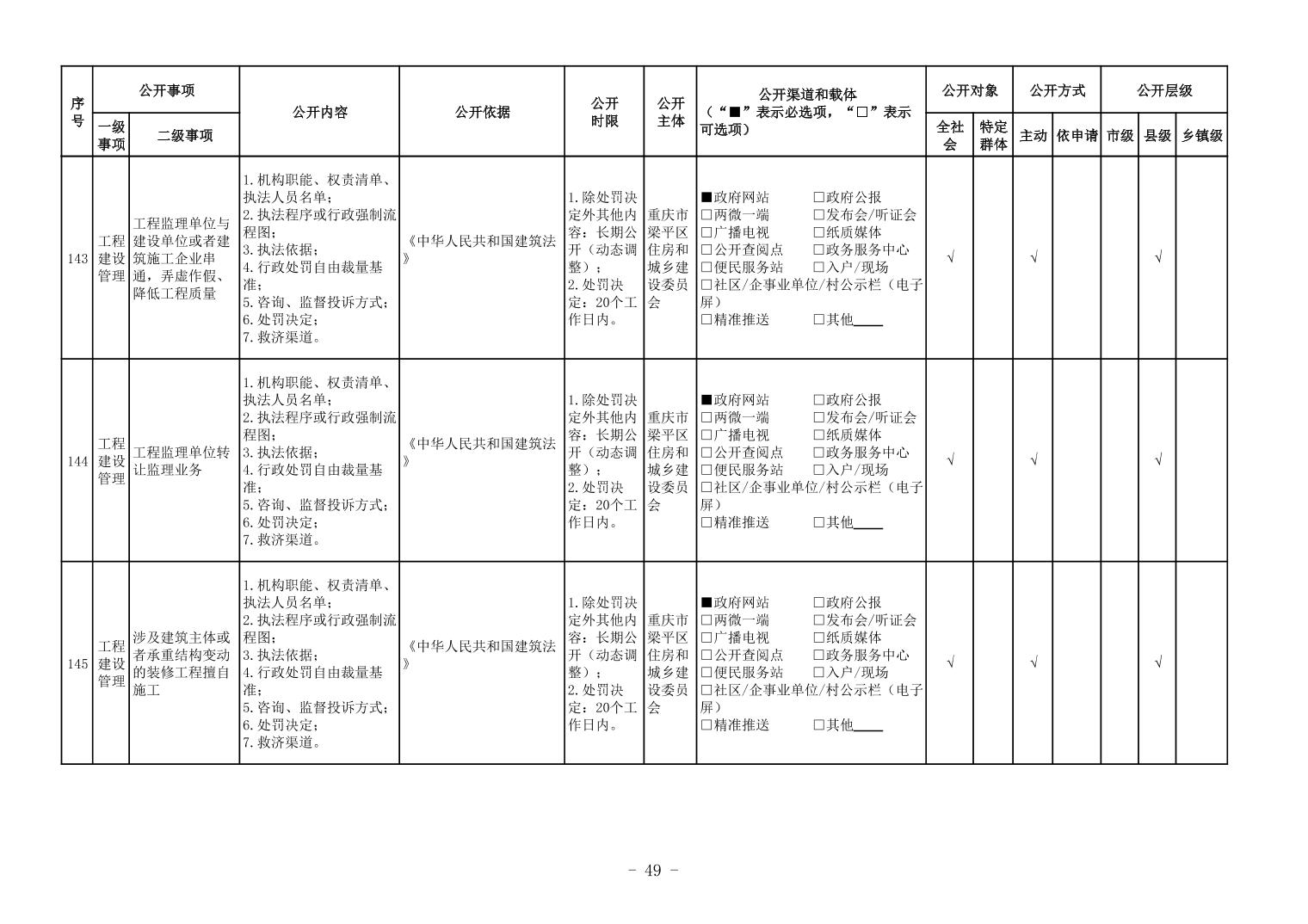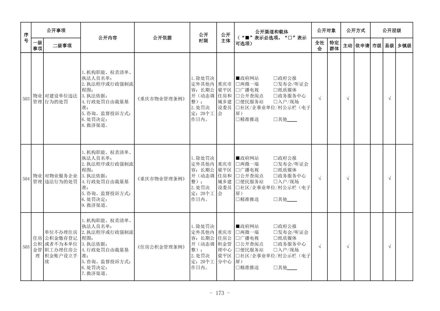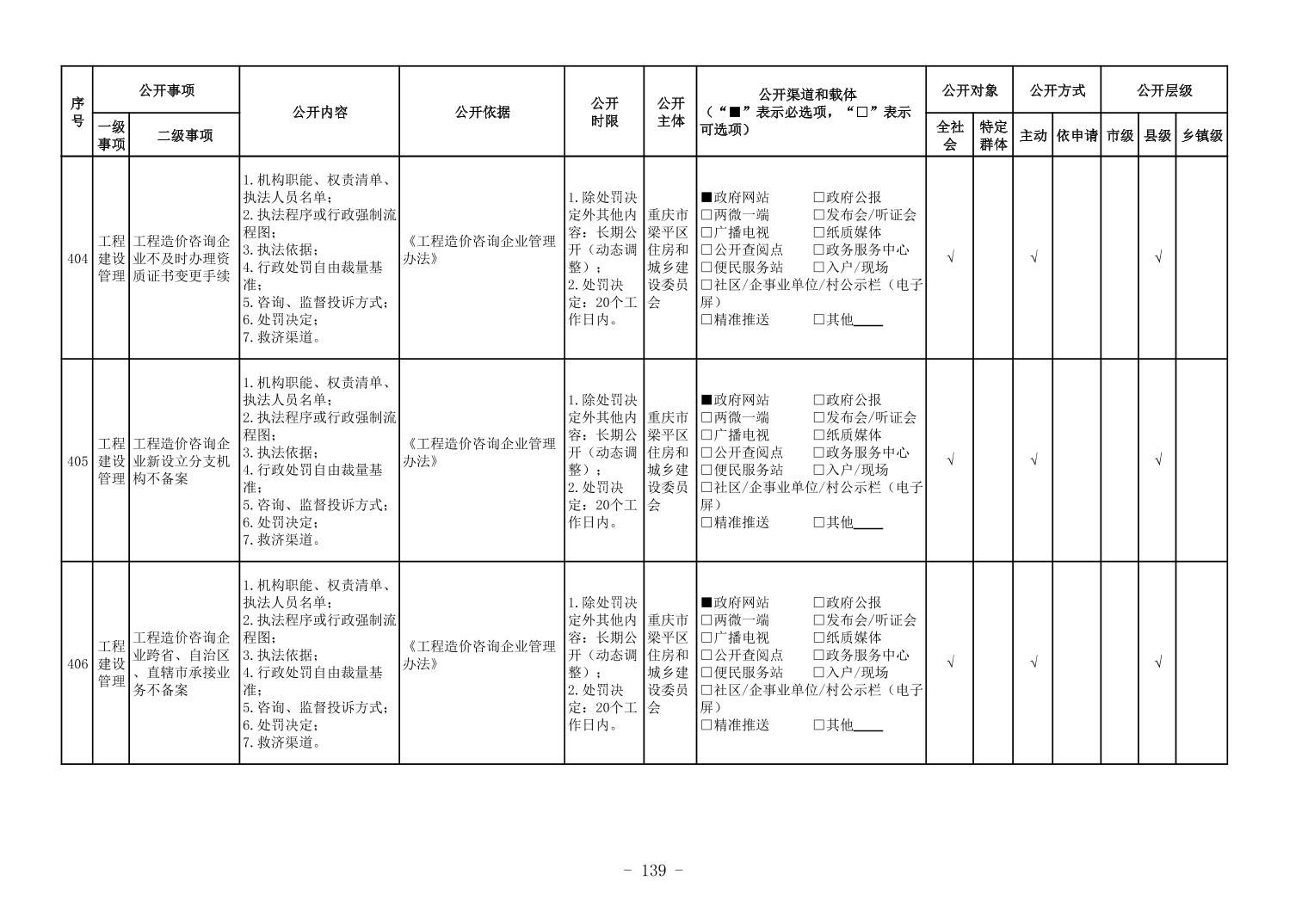 重慶市梁平區城市綜合執法領域基層政務公開標準目錄