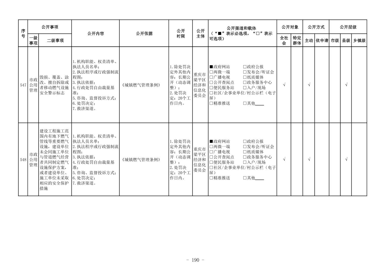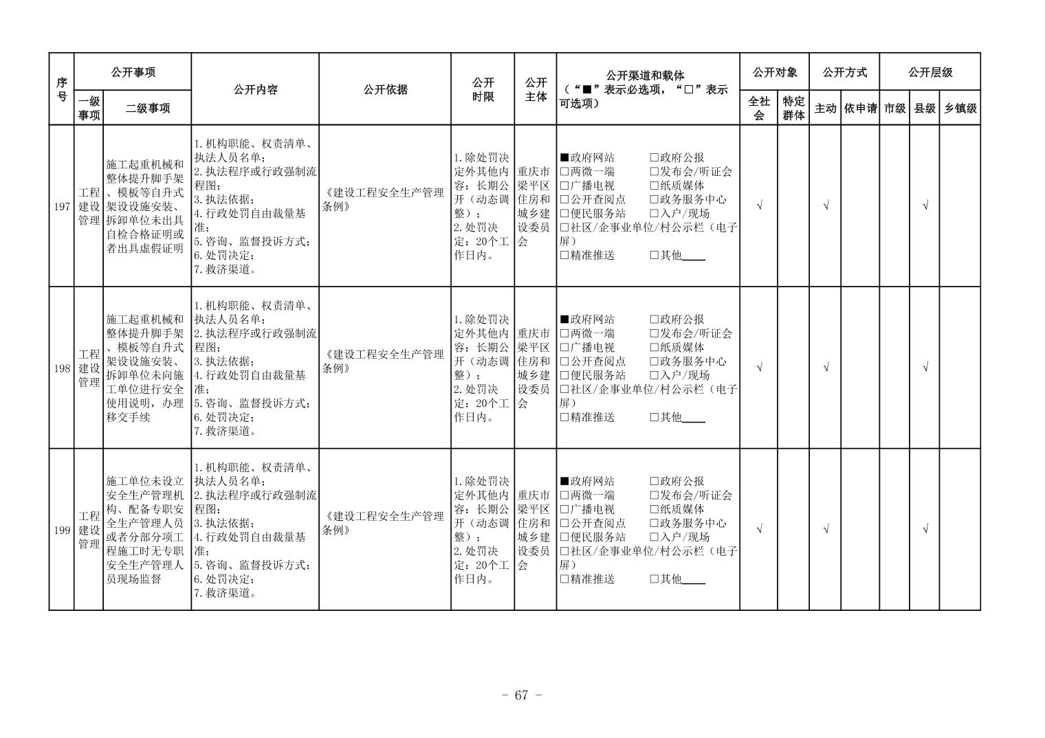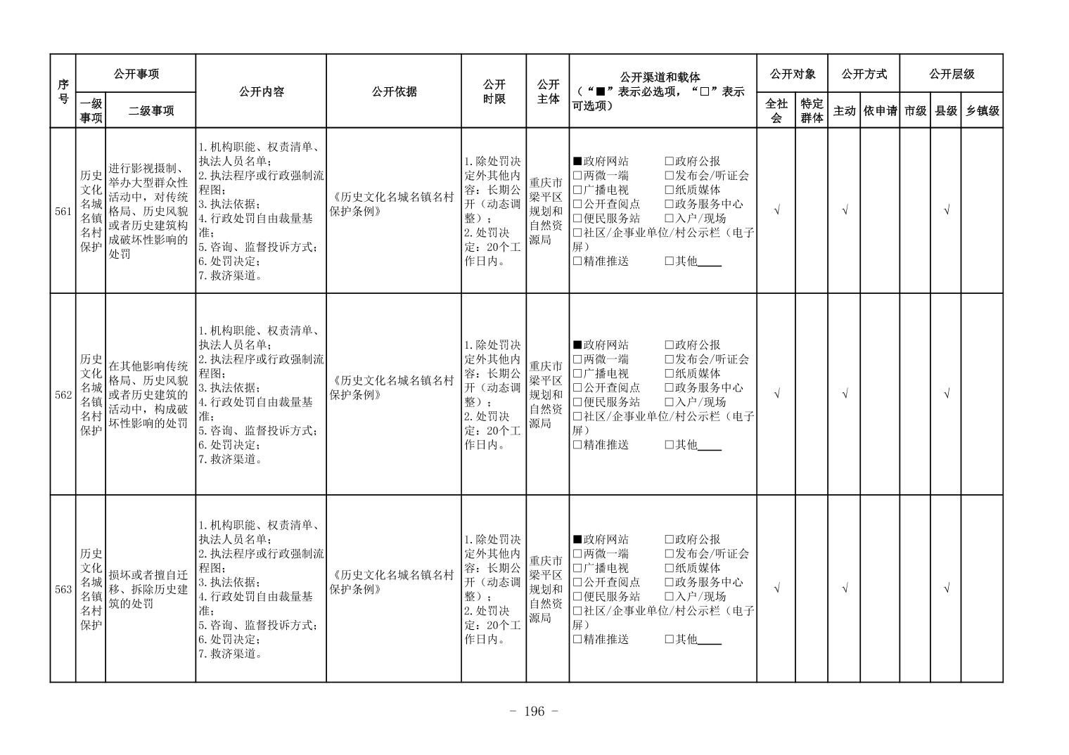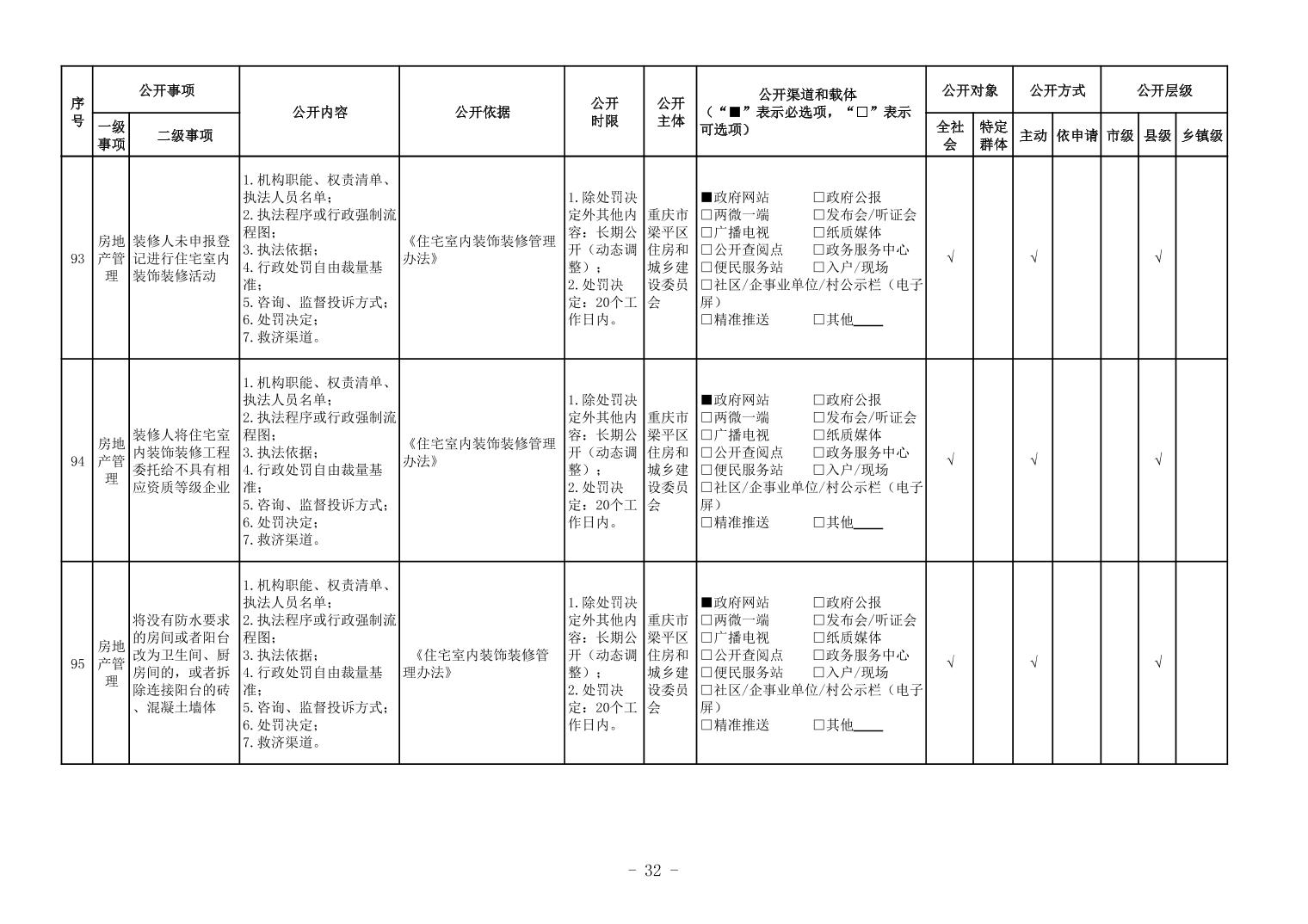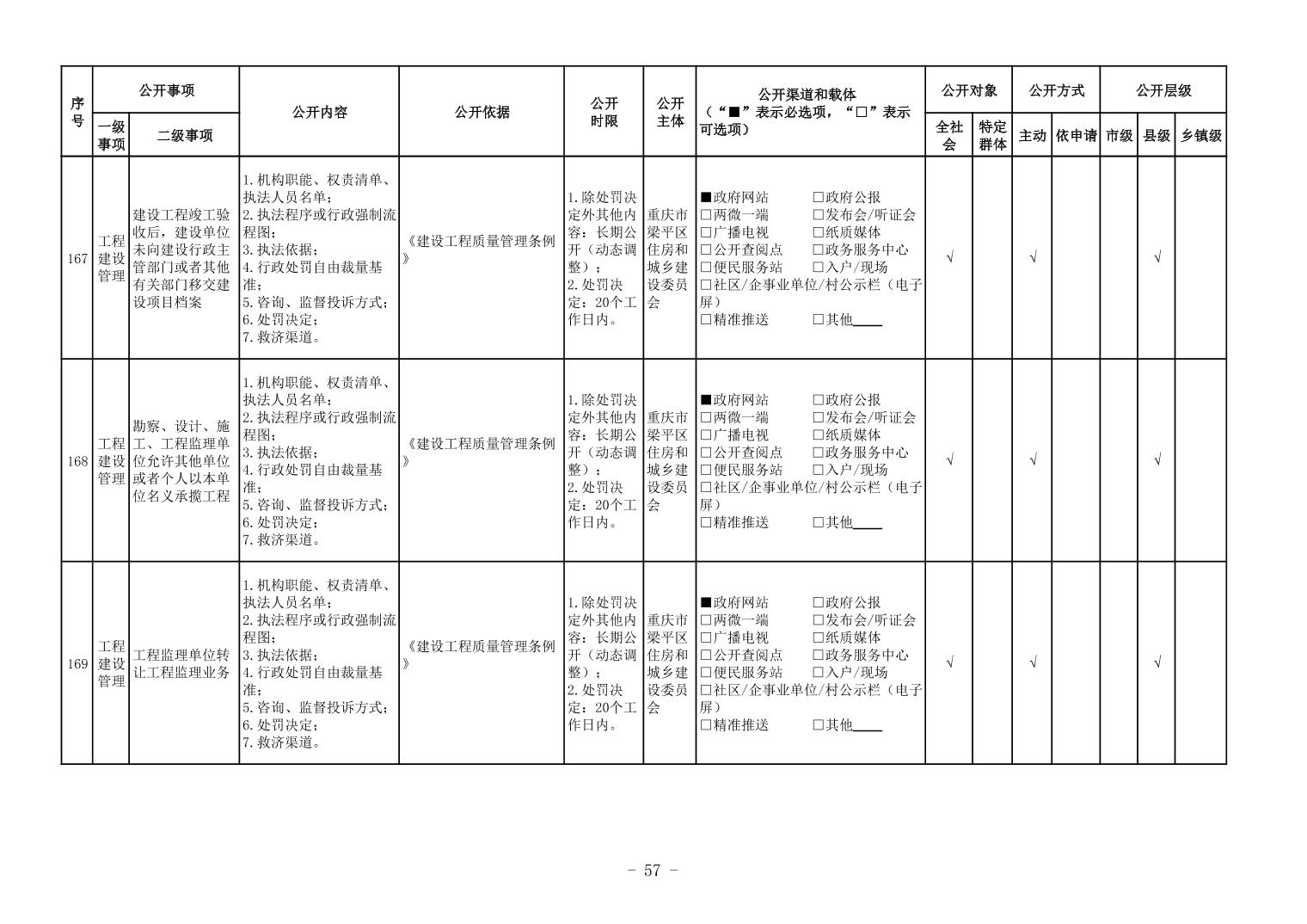 重慶市梁平區城市綜合執法領域基層政務公開標準目錄