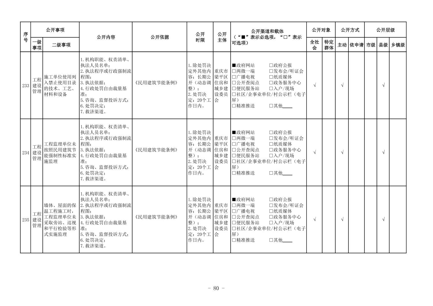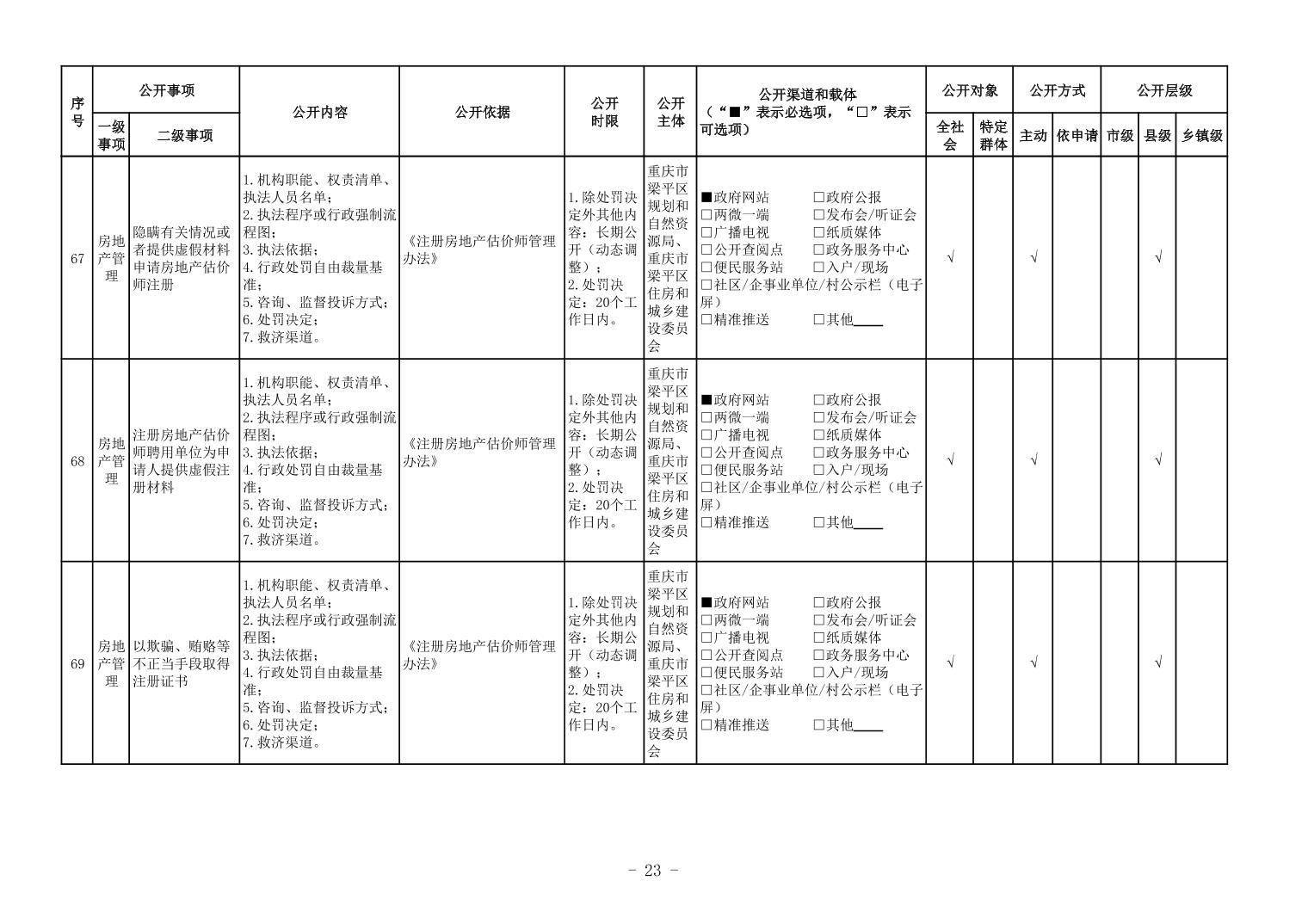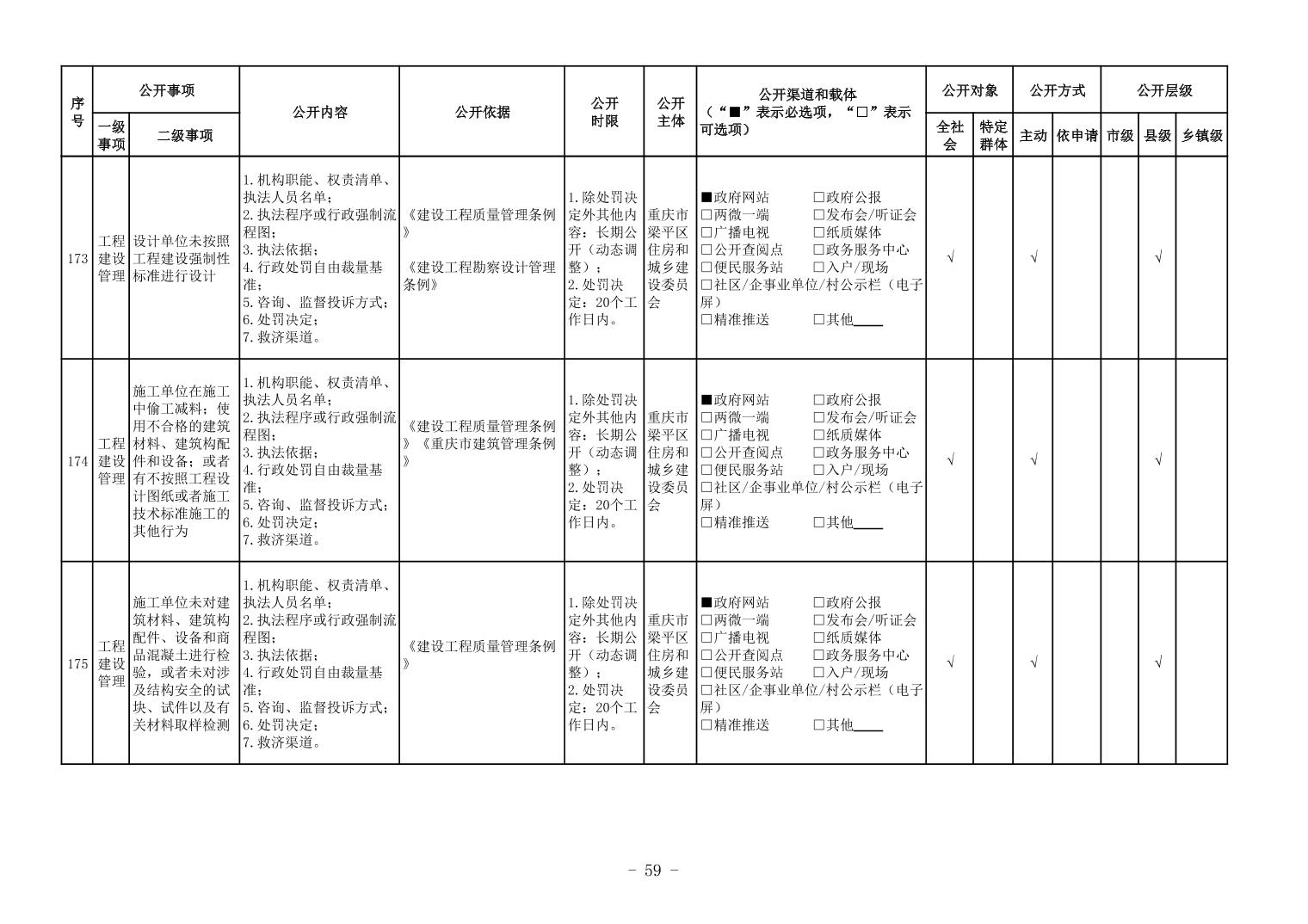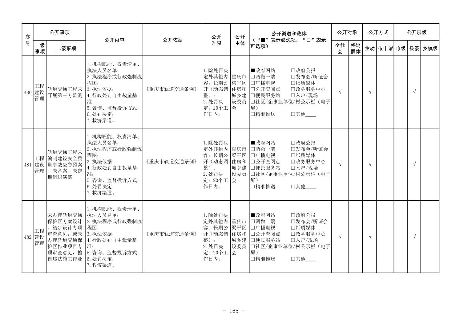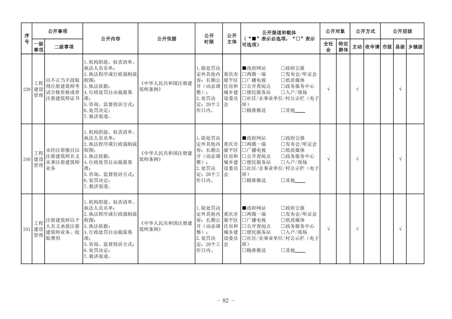 重慶市梁平區城市綜合執法領域基層政務公開標準目錄