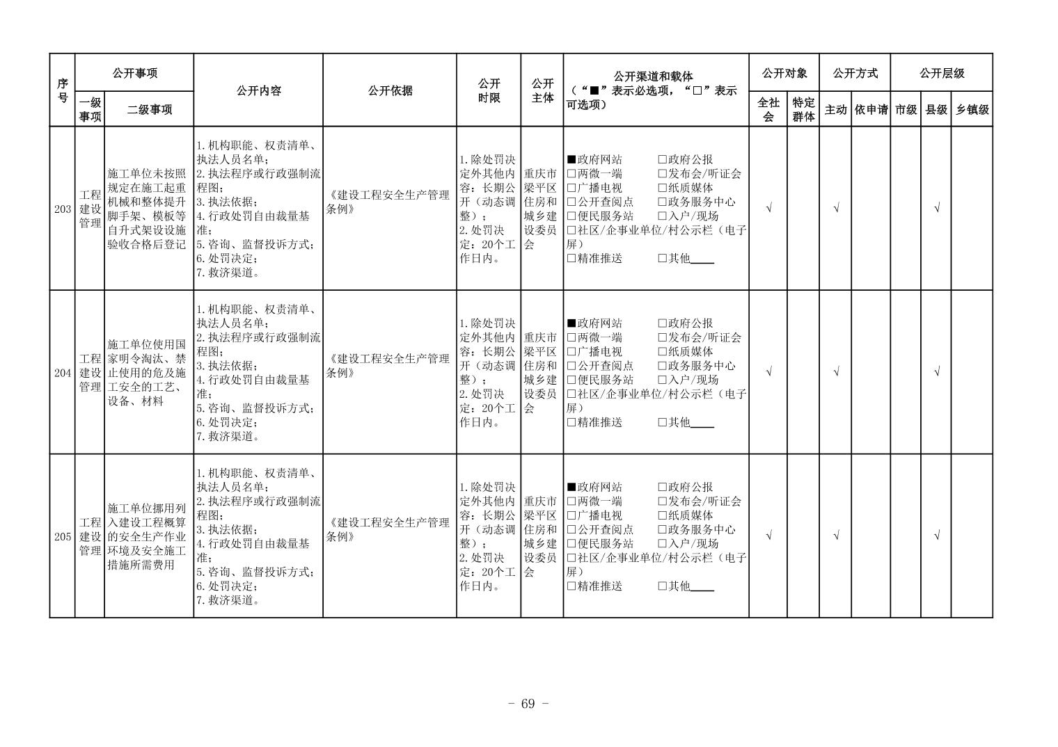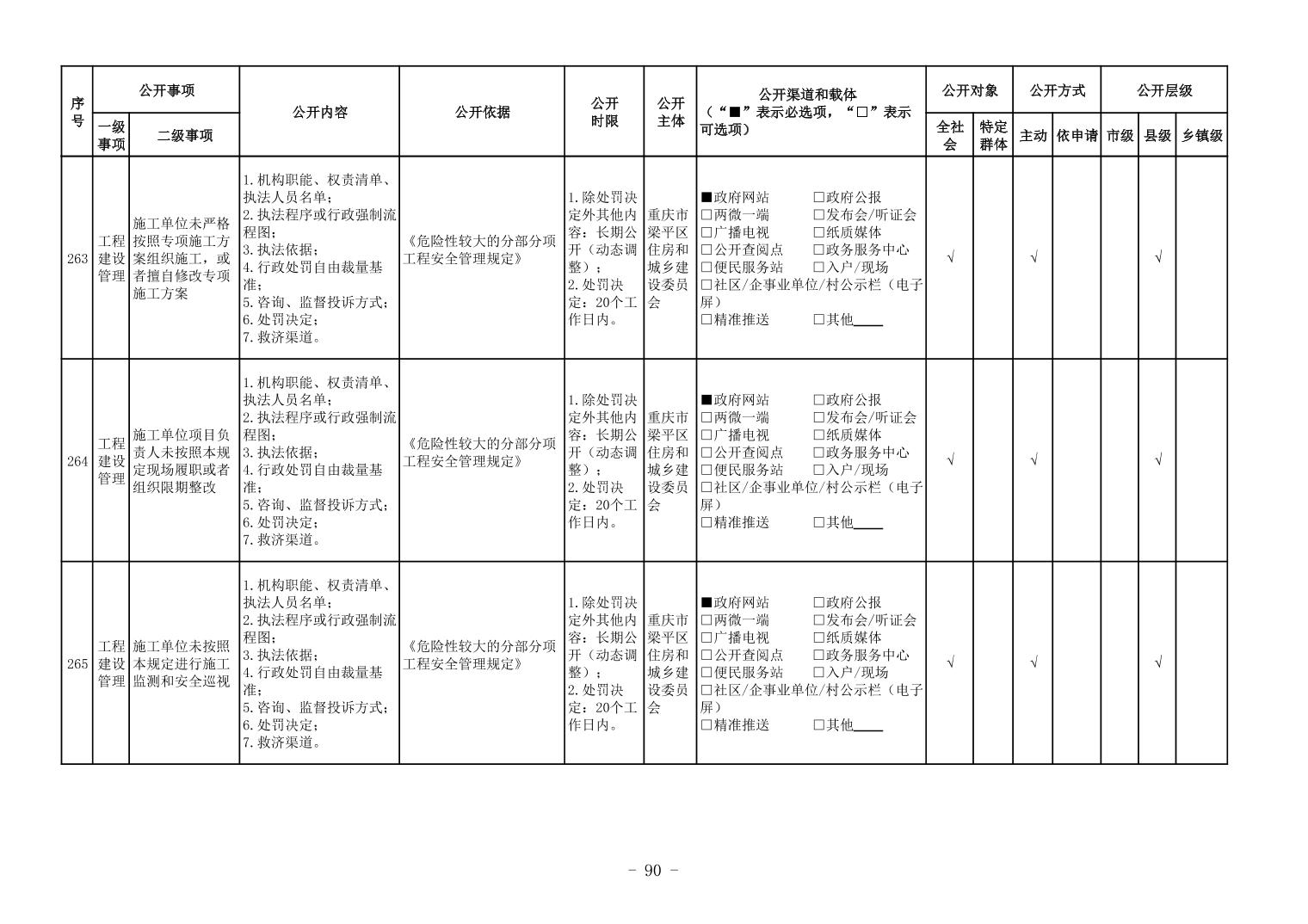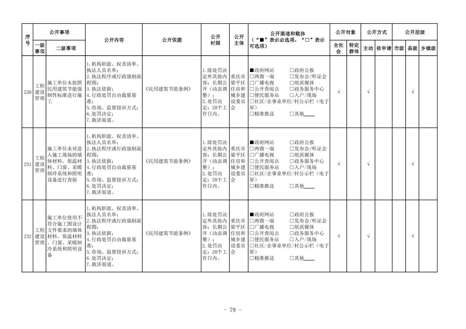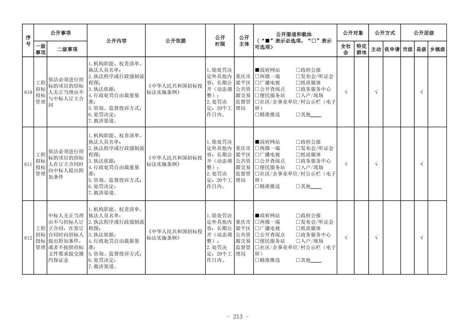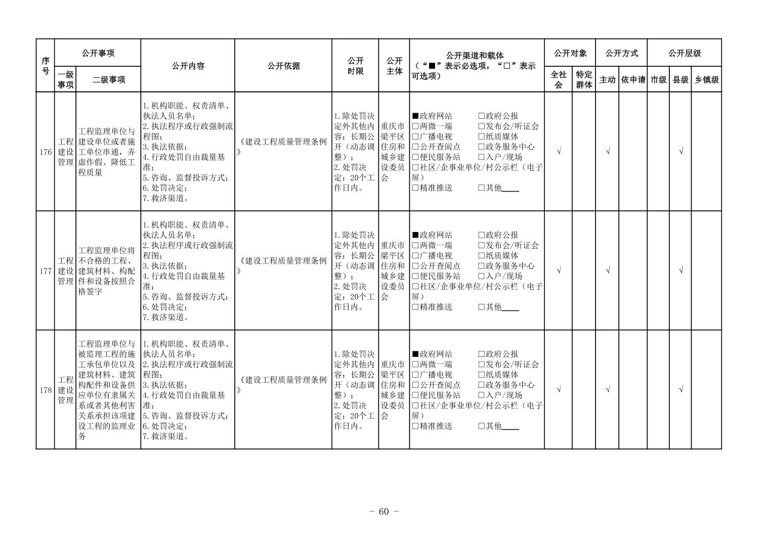 重慶市梁平區城市綜合執法領域基層政務公開標準目錄