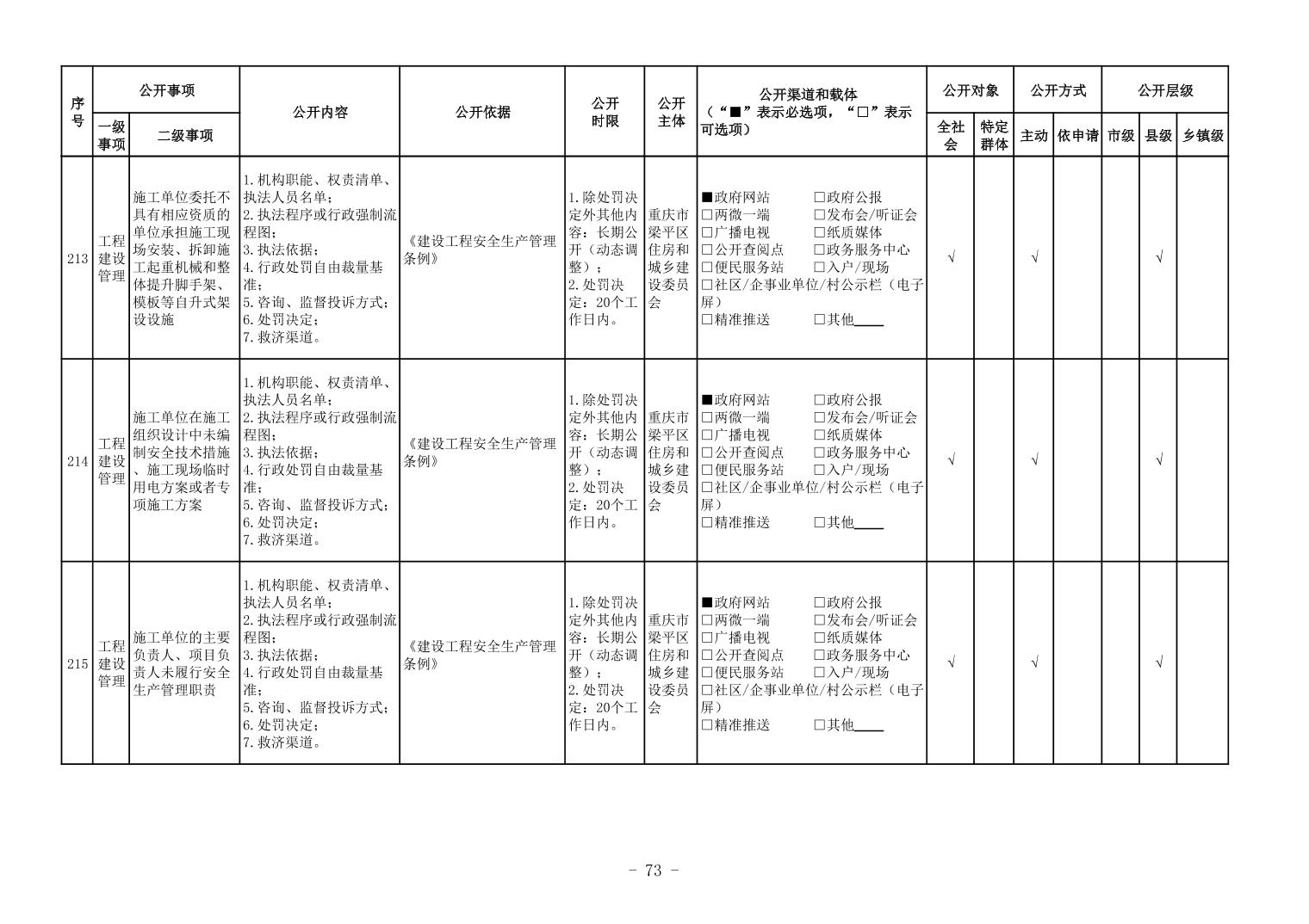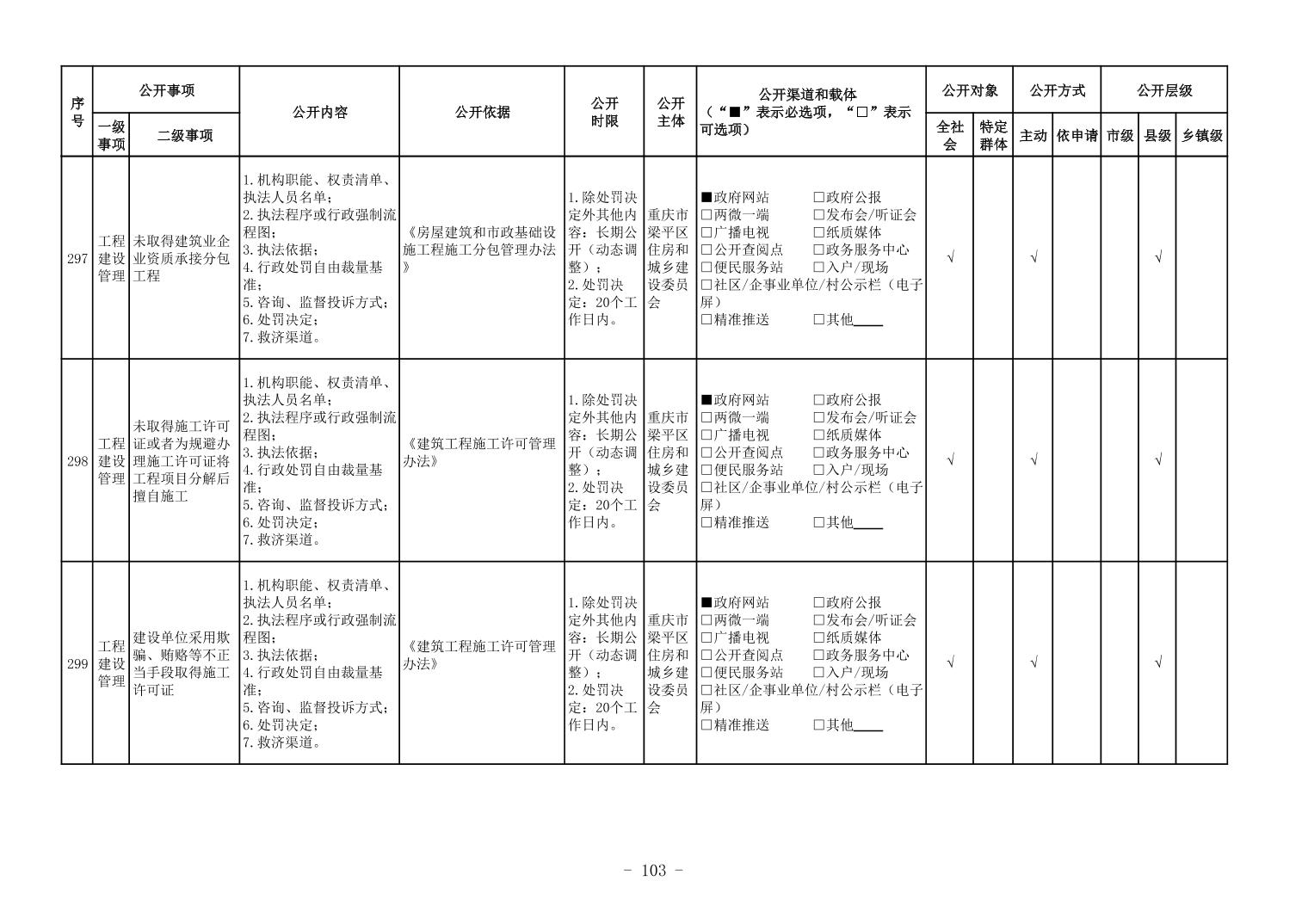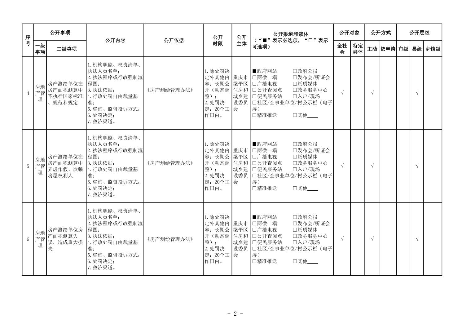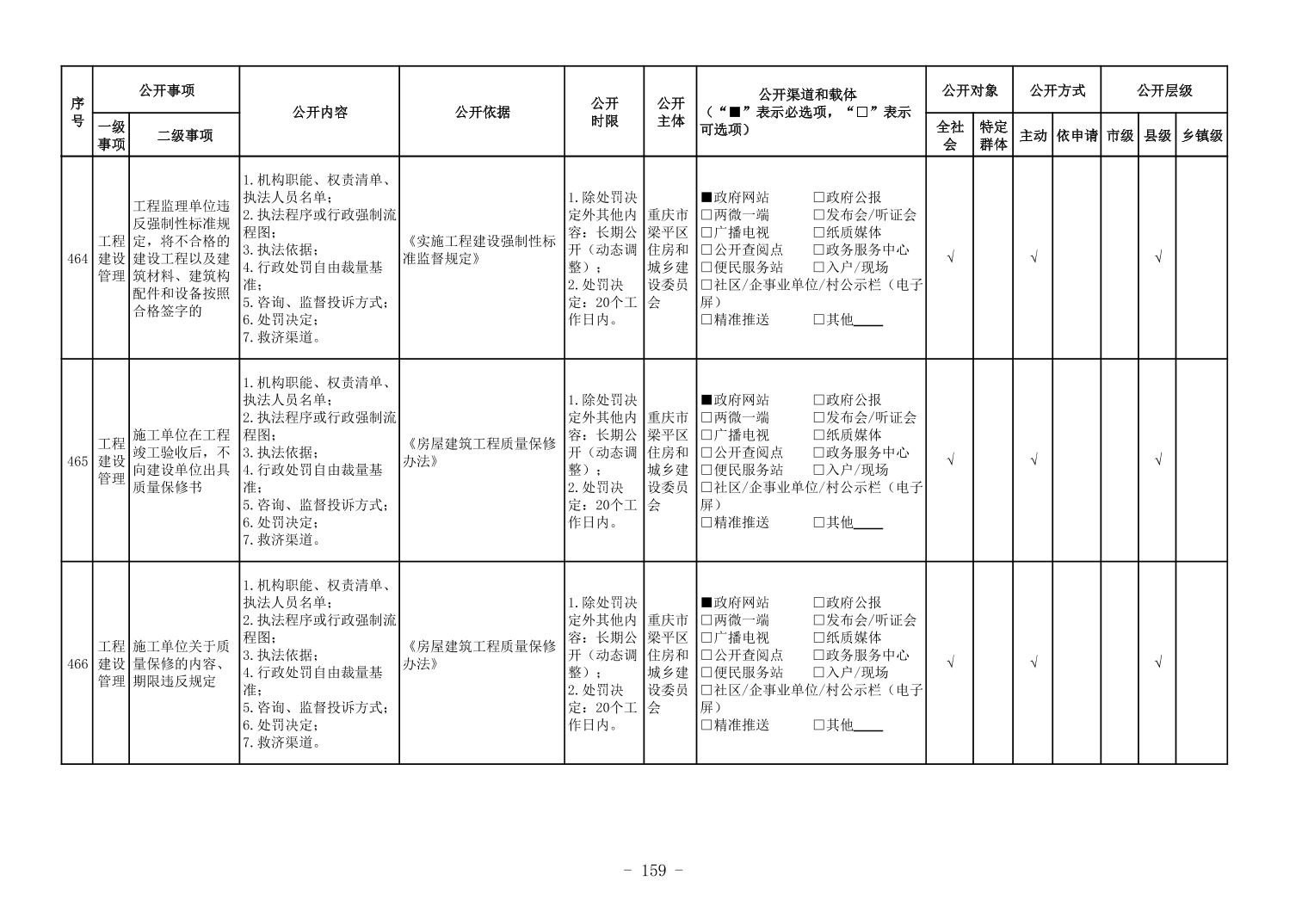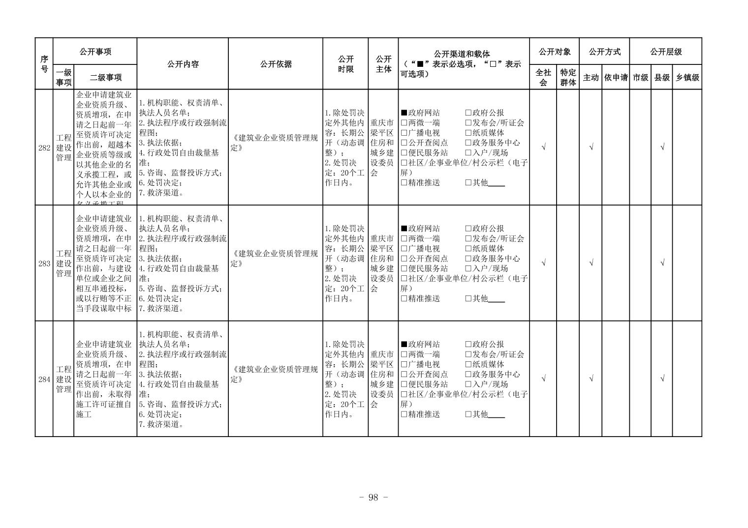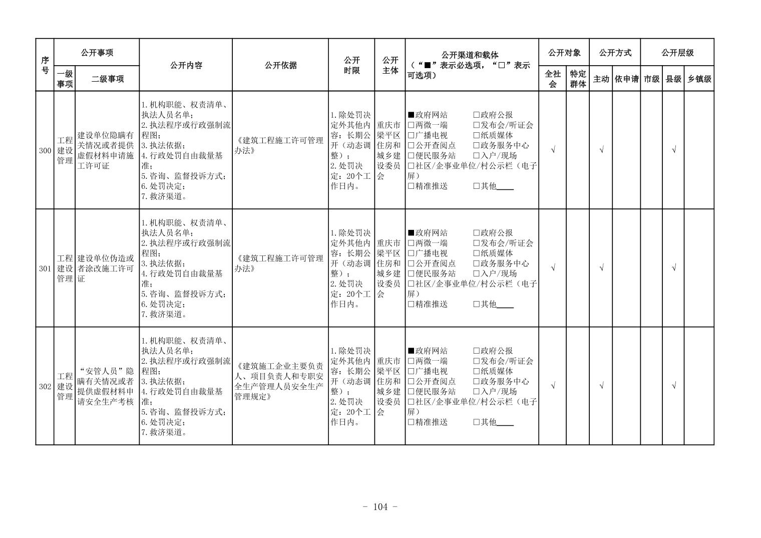 重慶市梁平區城市綜合執法領域基層政務公開標準目錄